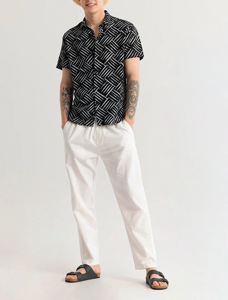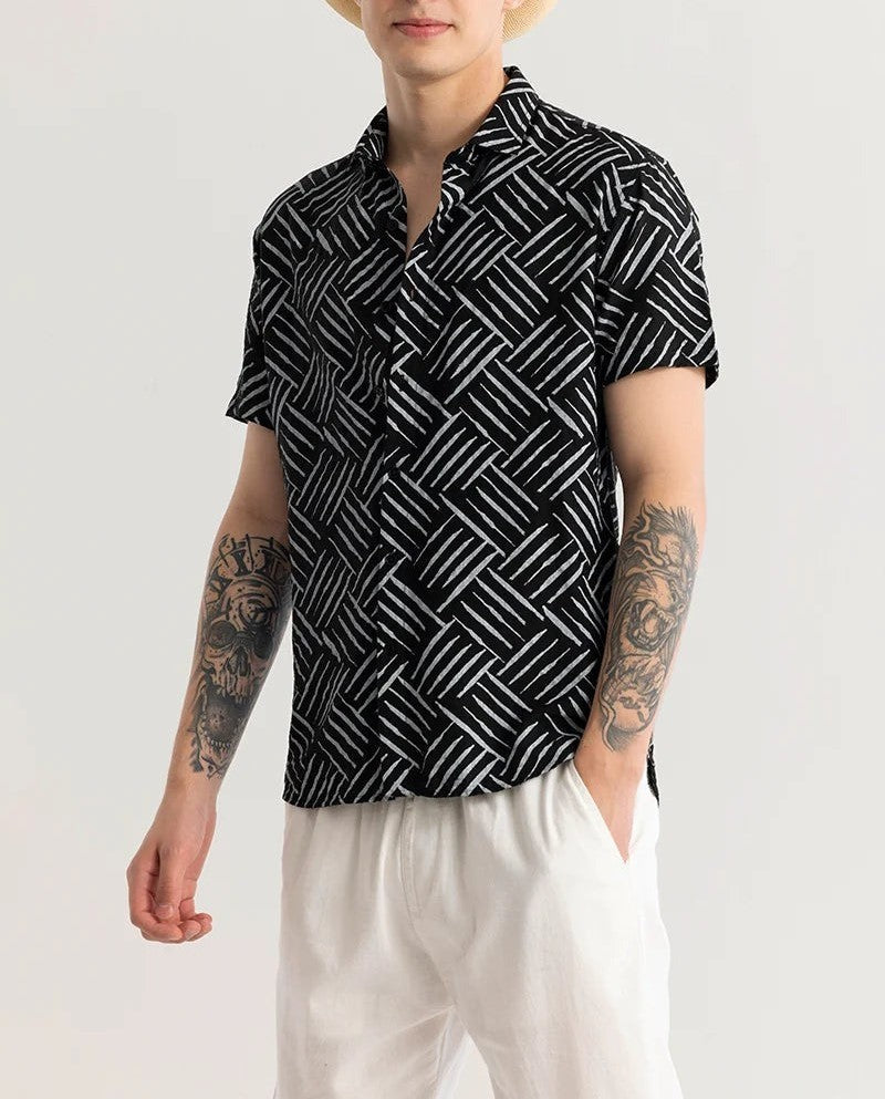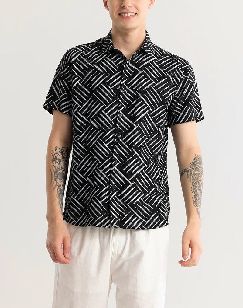 Give a majestic lift to your look with this white abstract pattern shirt. The shirt is crafted from fine viscose rayon. It is a versatile staple and great for teaming with jeans for a more casual look or smartening up with a classic pair of chinos.