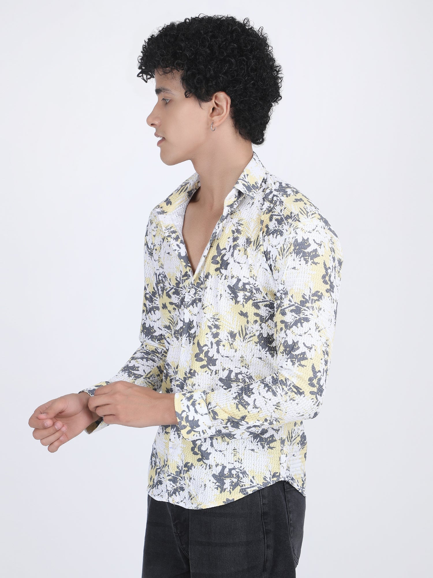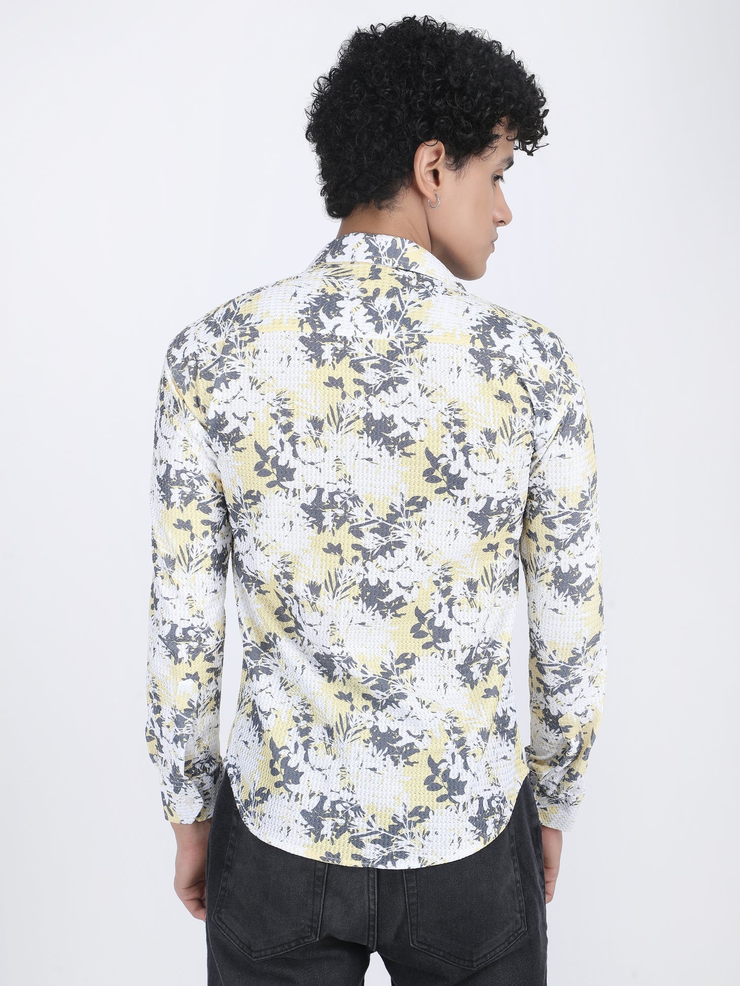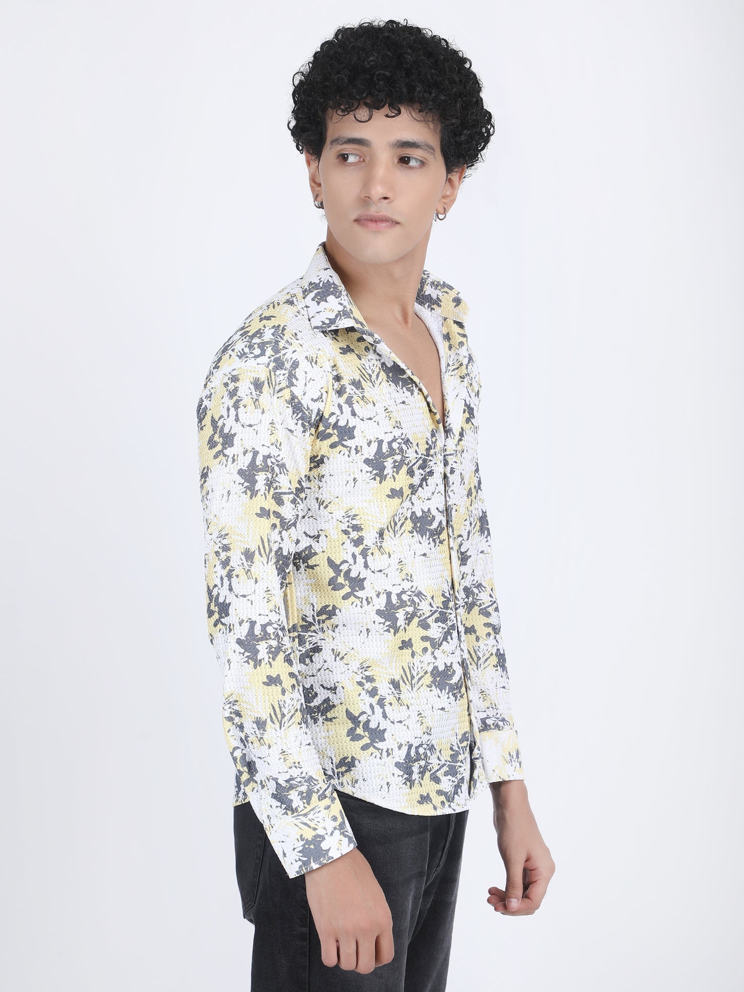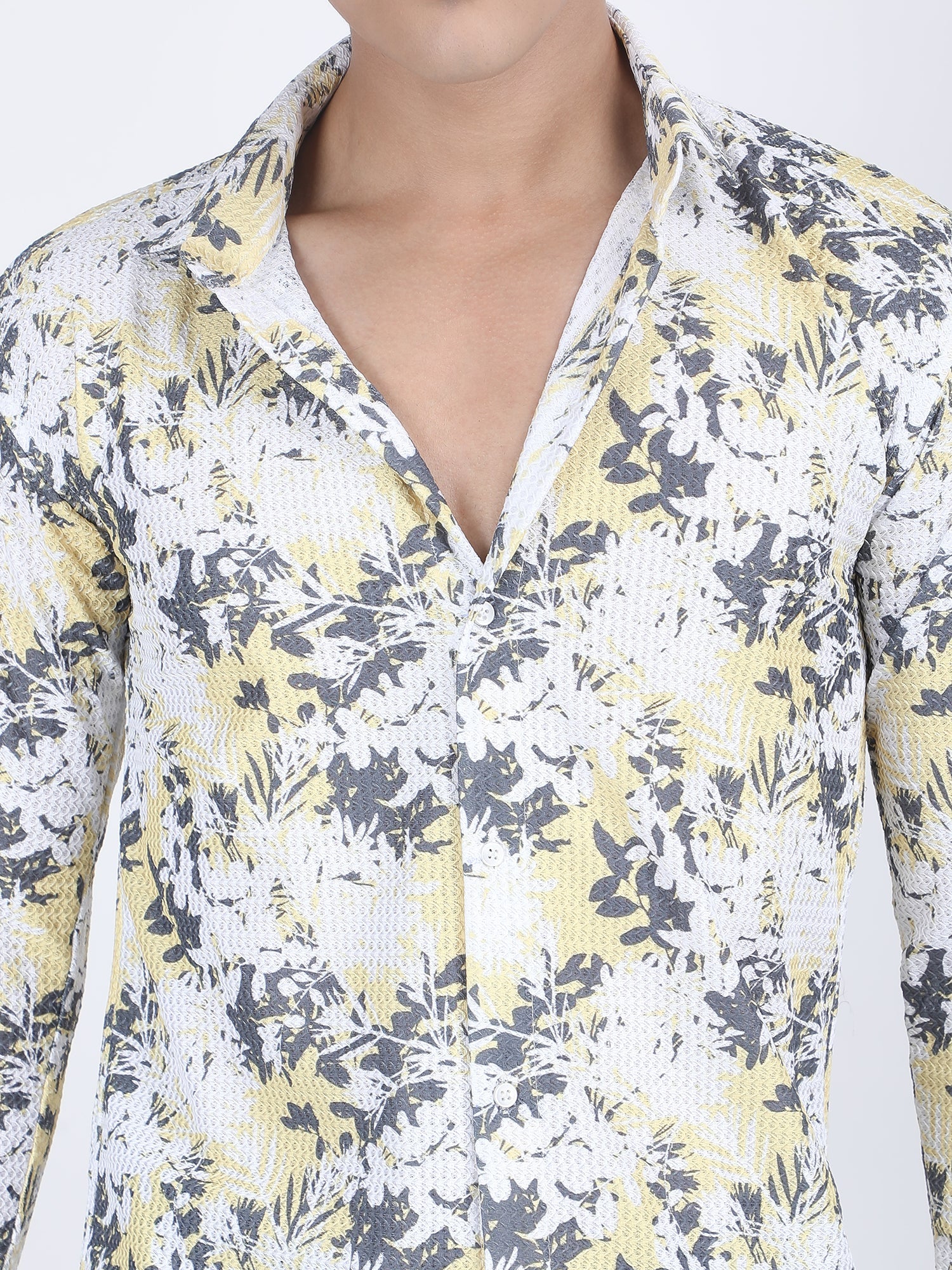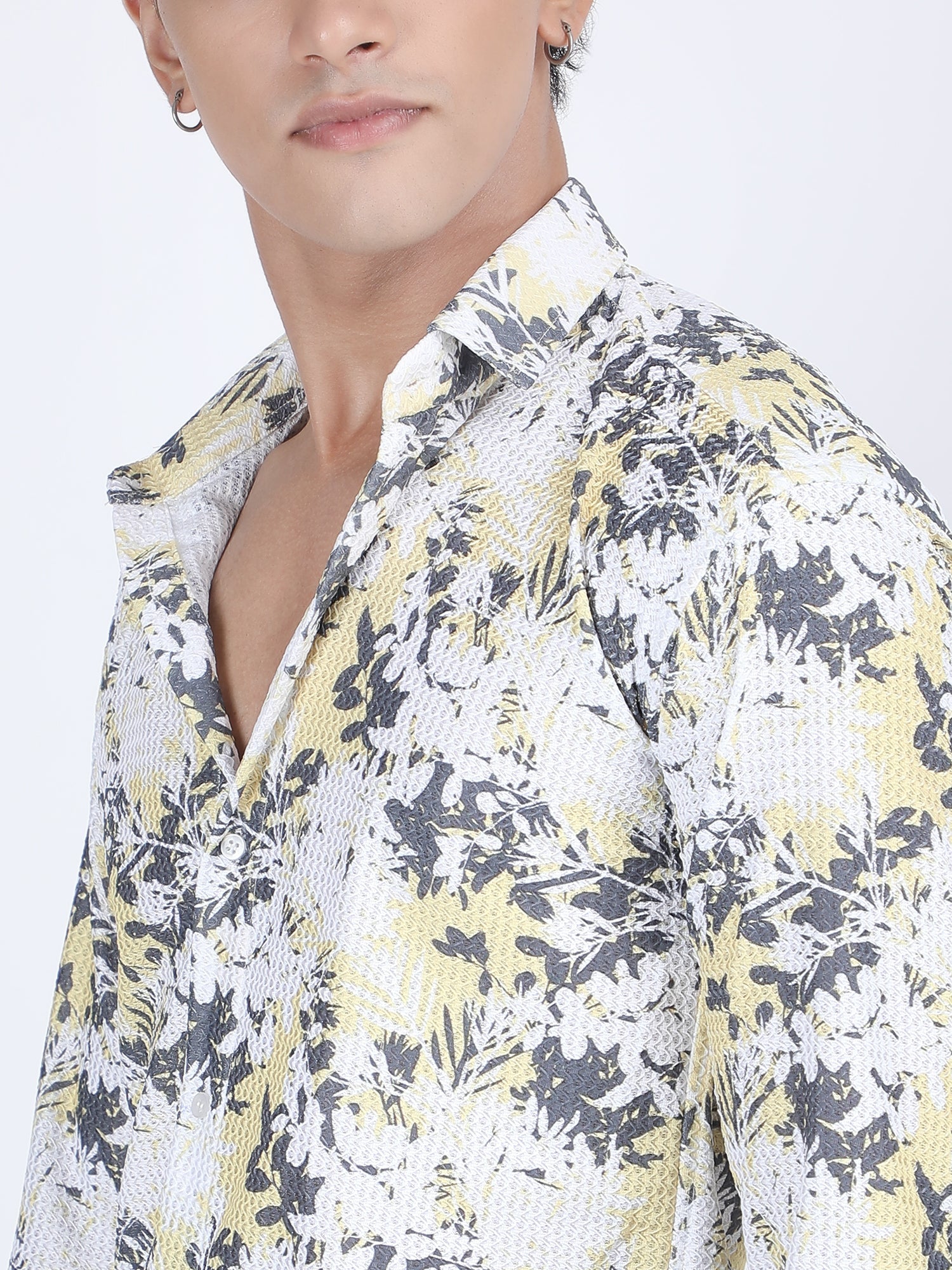 About Product -Channel serene elegance in this White Floral Turkish Weave shirt, offering a unique aesthetic twist. Fresh and vibrant, this printed Turkish weave shirt brightens any wardrobe. Featuring intricate prints on crisp white fabric, it exudes sophistication and versatility, perfect for various occasions and styling options.