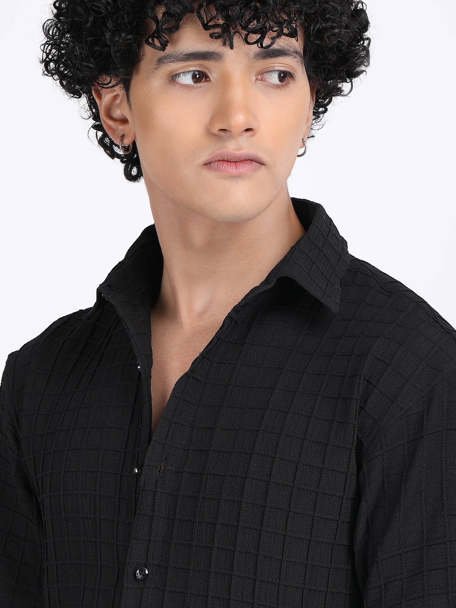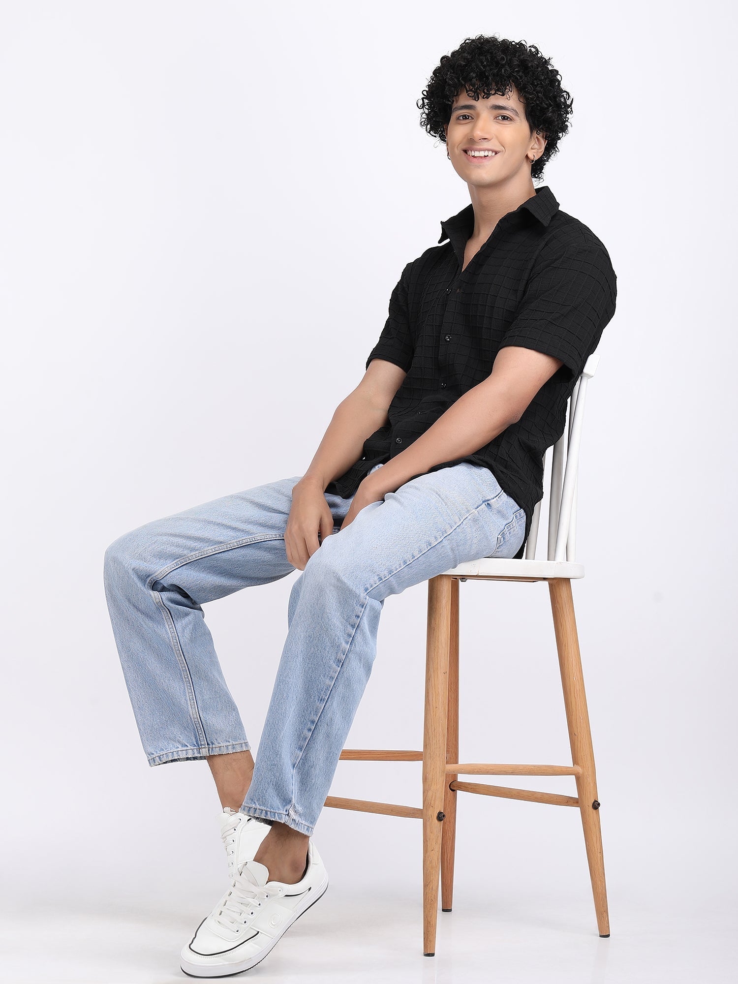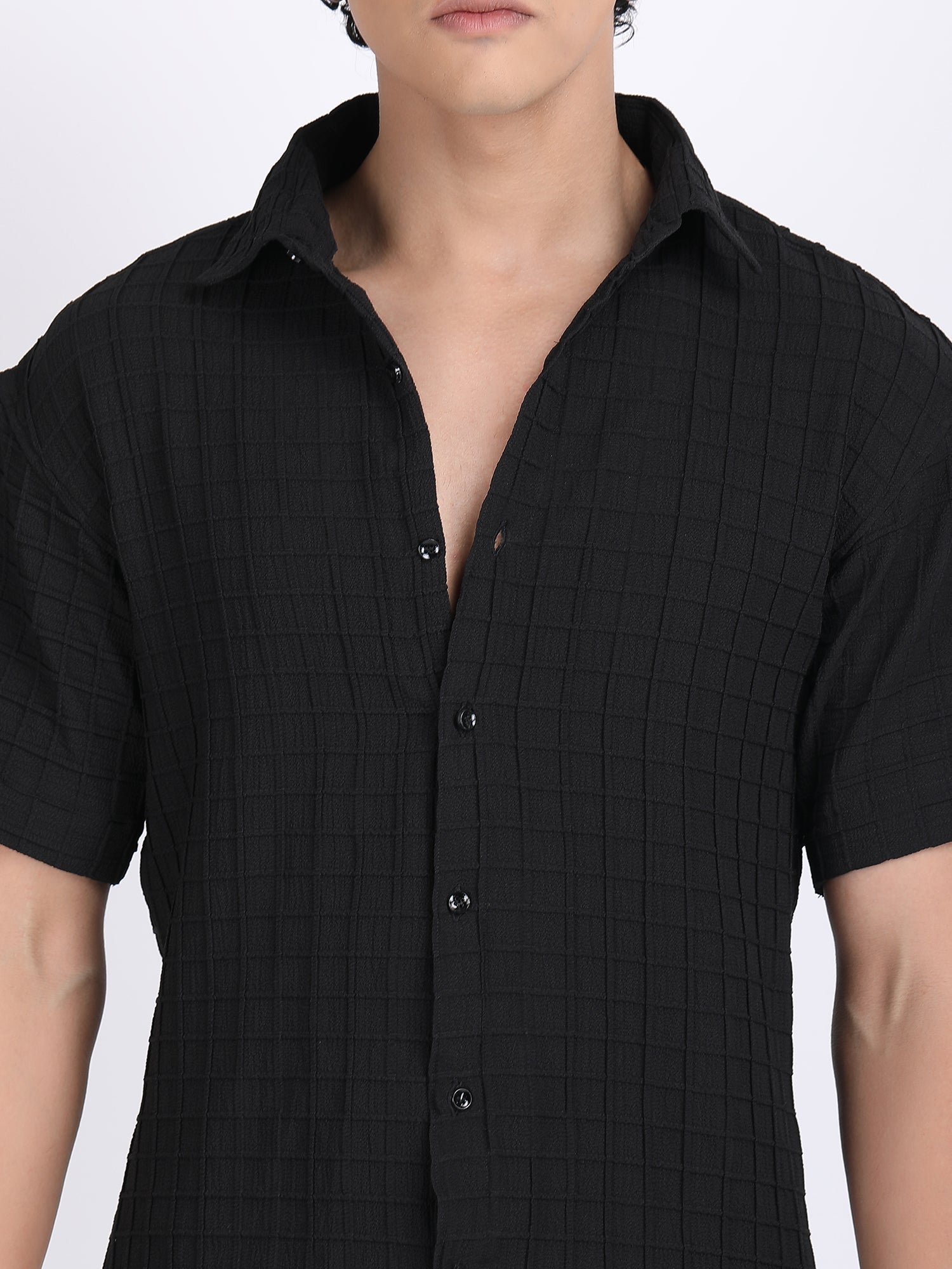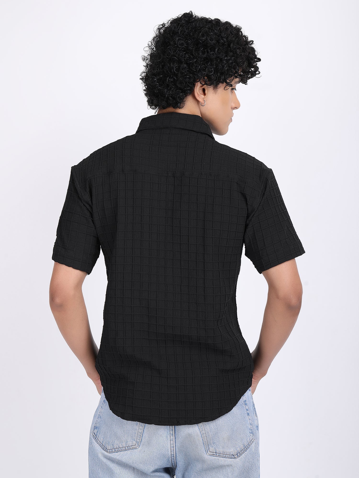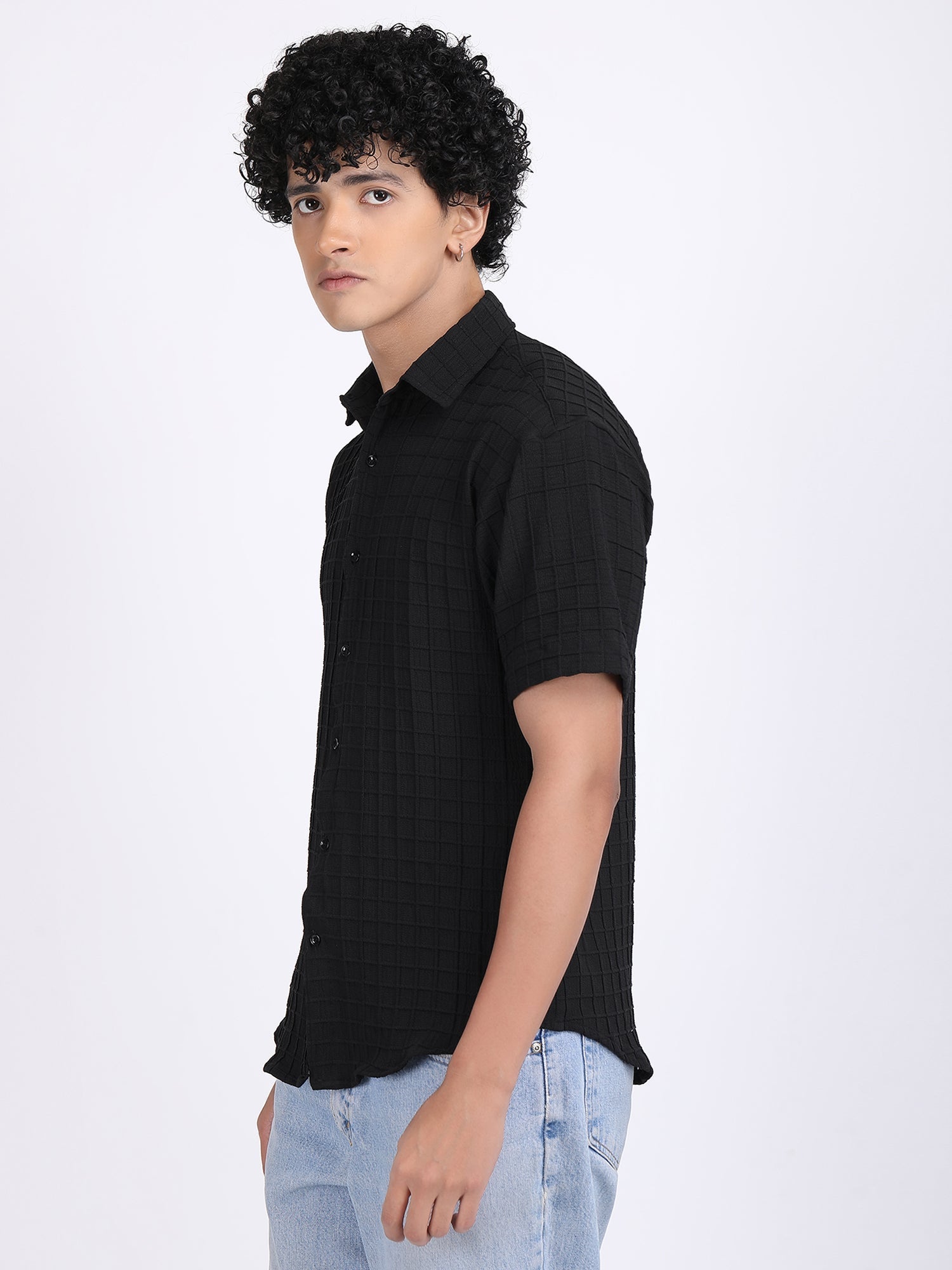 Introducing The Aeromesh Black Shirt, A Must-have For Your Summer Wardrobe. With Half Sleeves And A Textured Fabric, This Shirt Offers Both Comfort And Style. The Curve Hem Adds A Touch Of Sophistication. Perfect For Any Summer Occasion.