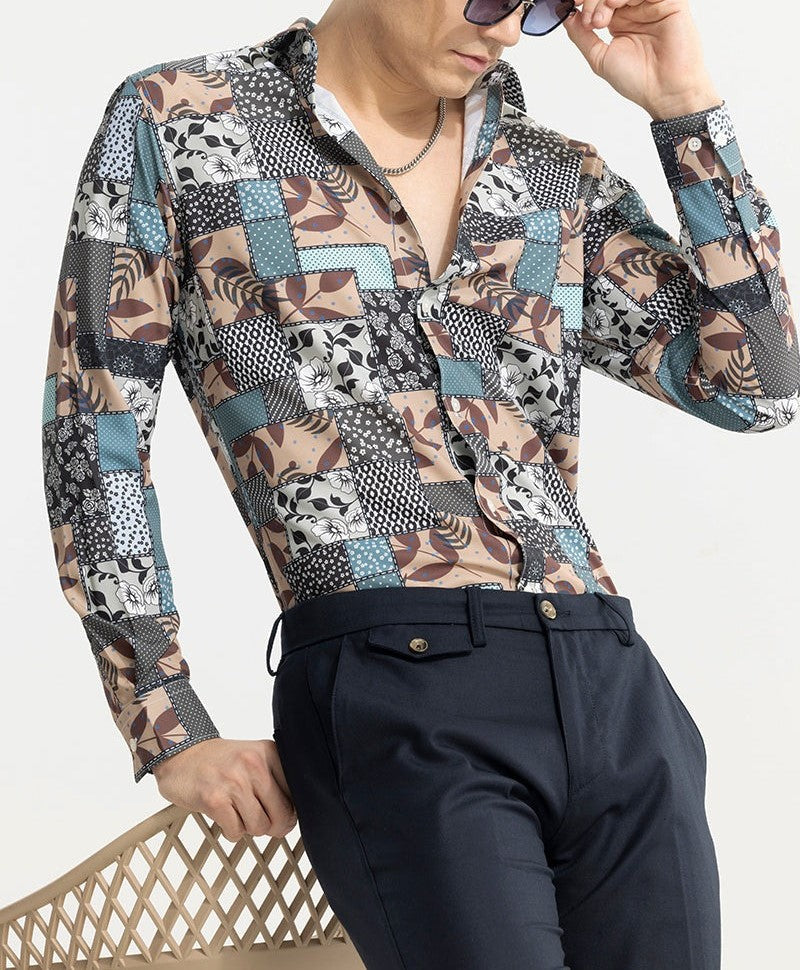 Give a majestic lift to your look with this multi geometric pattern shirt. The shirt is crafted from fine 100% polyester. It is a versatile staple and great for teaming with jeans for a more casual look or smartening up with a classic pair of chinos..
