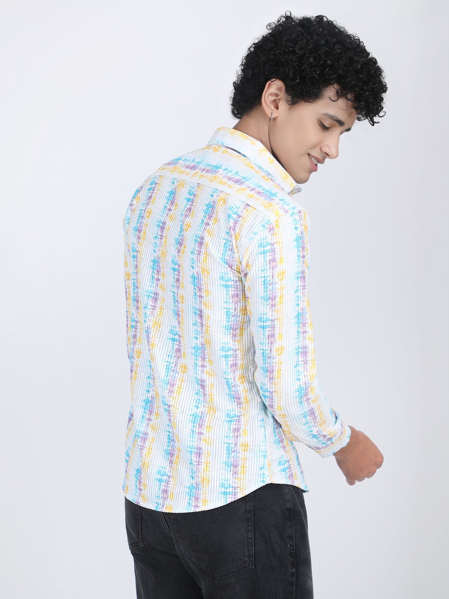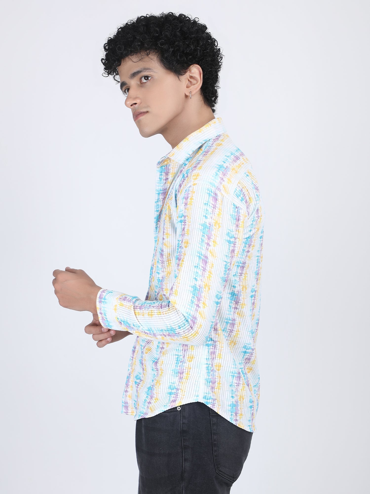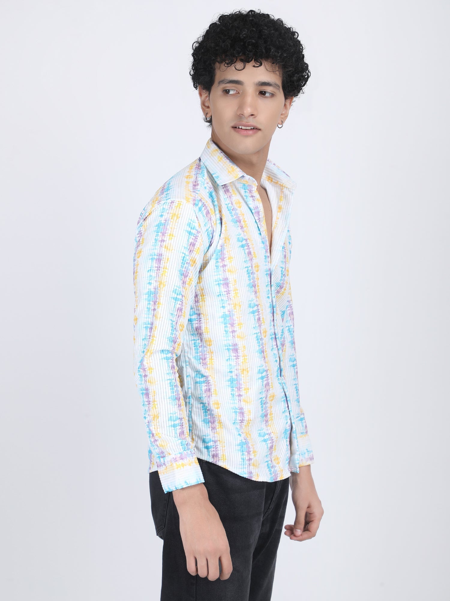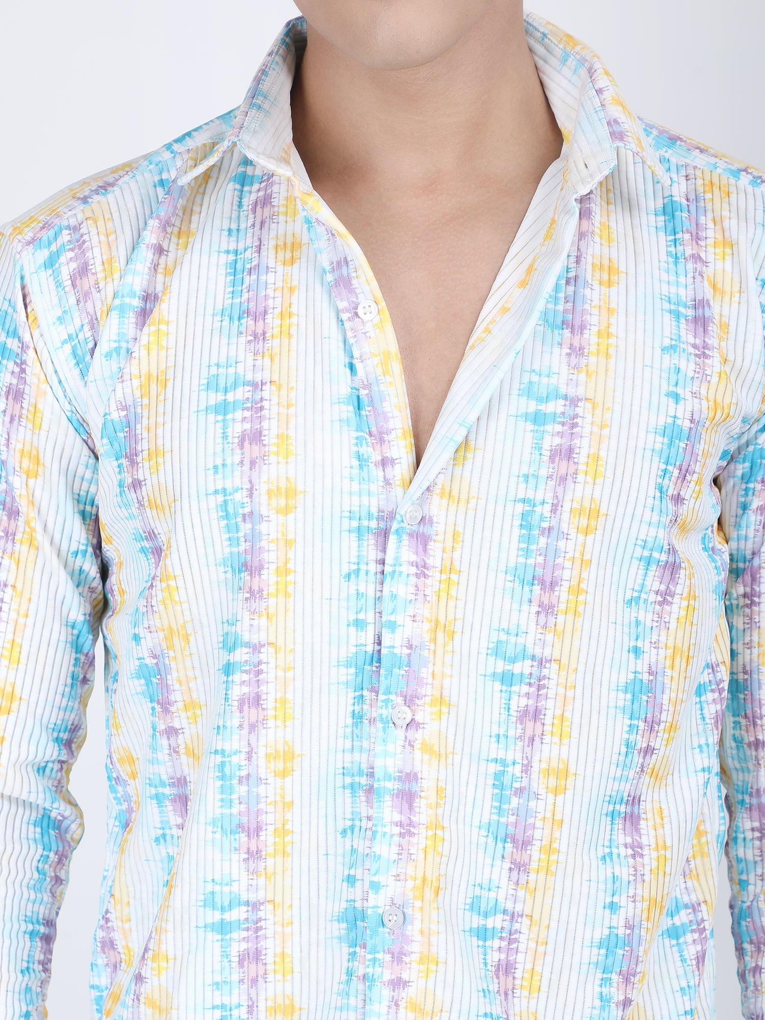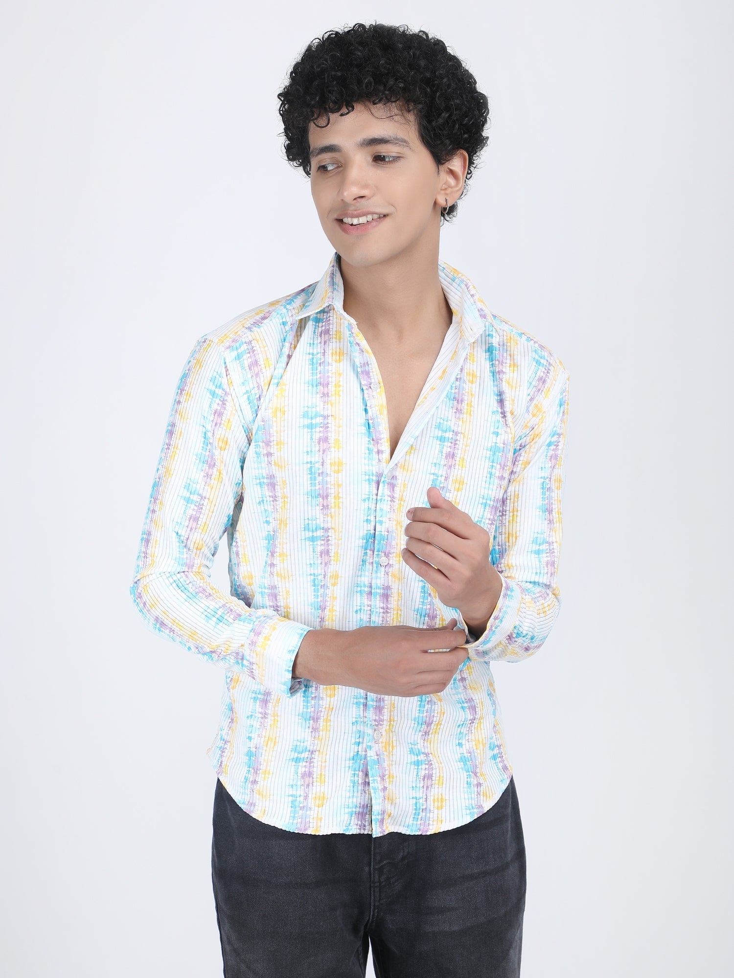 About Product -Channel serene elegance in this Multi Color Turkish Weave shirt, offering a unique aesthetic twist. Fresh and vibrant, this printed Turkish weave shirt brightens any wardrobe. Featuring intricate prints on crisp white fabric, it exudes sophistication and versatility, perfect for various occasions and styling options.