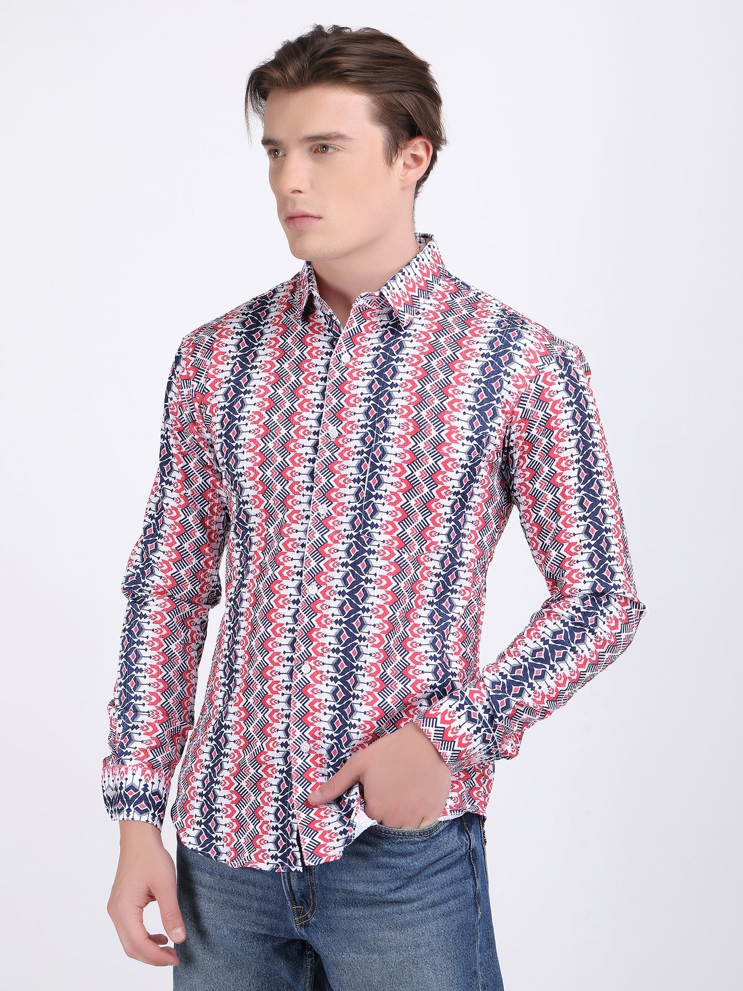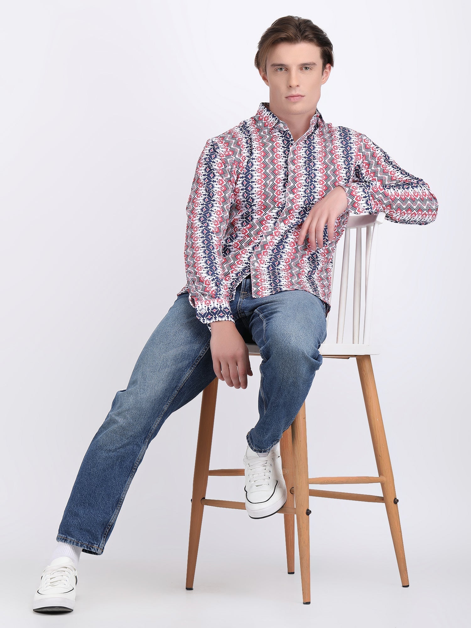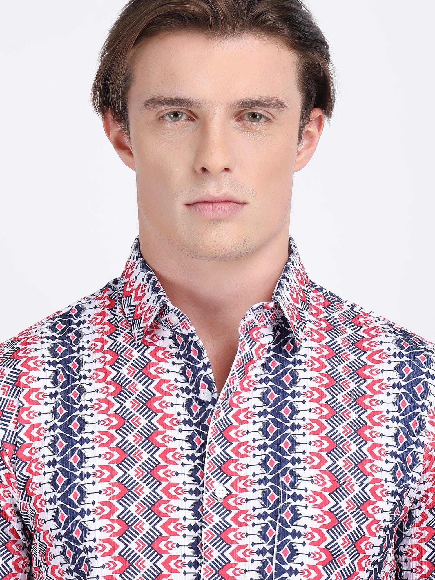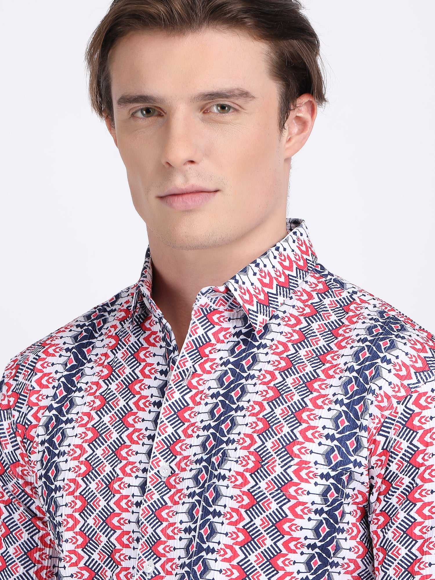Introducing The Aeromesh Red with Blue Shirt, A Must-have For Your Summer Wardrobe. With Full Sleeves And A Textured Fabric, This Shirt Offers Both Comfort And Style. The Curve Hem Adds A Touch Of Sophistication. Perfect For Any Summer Occasion.