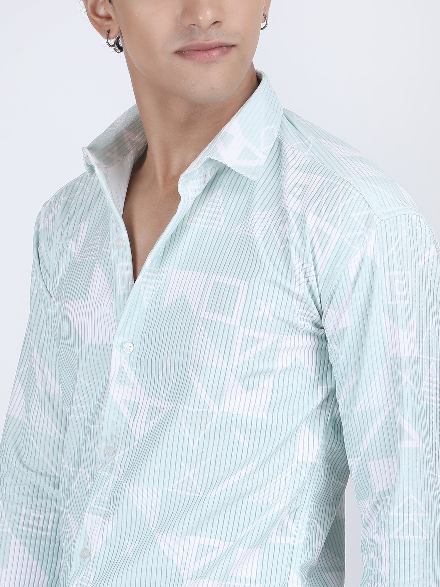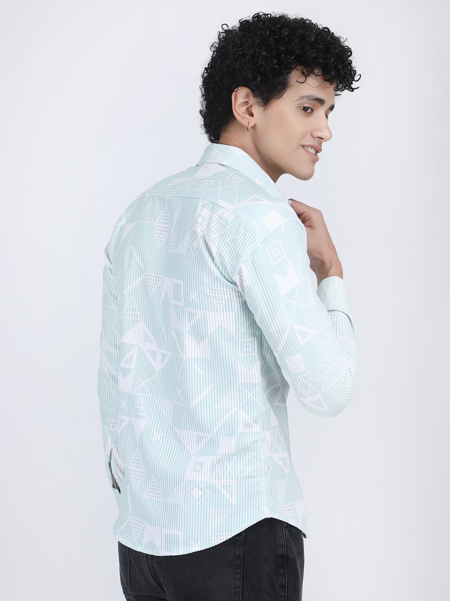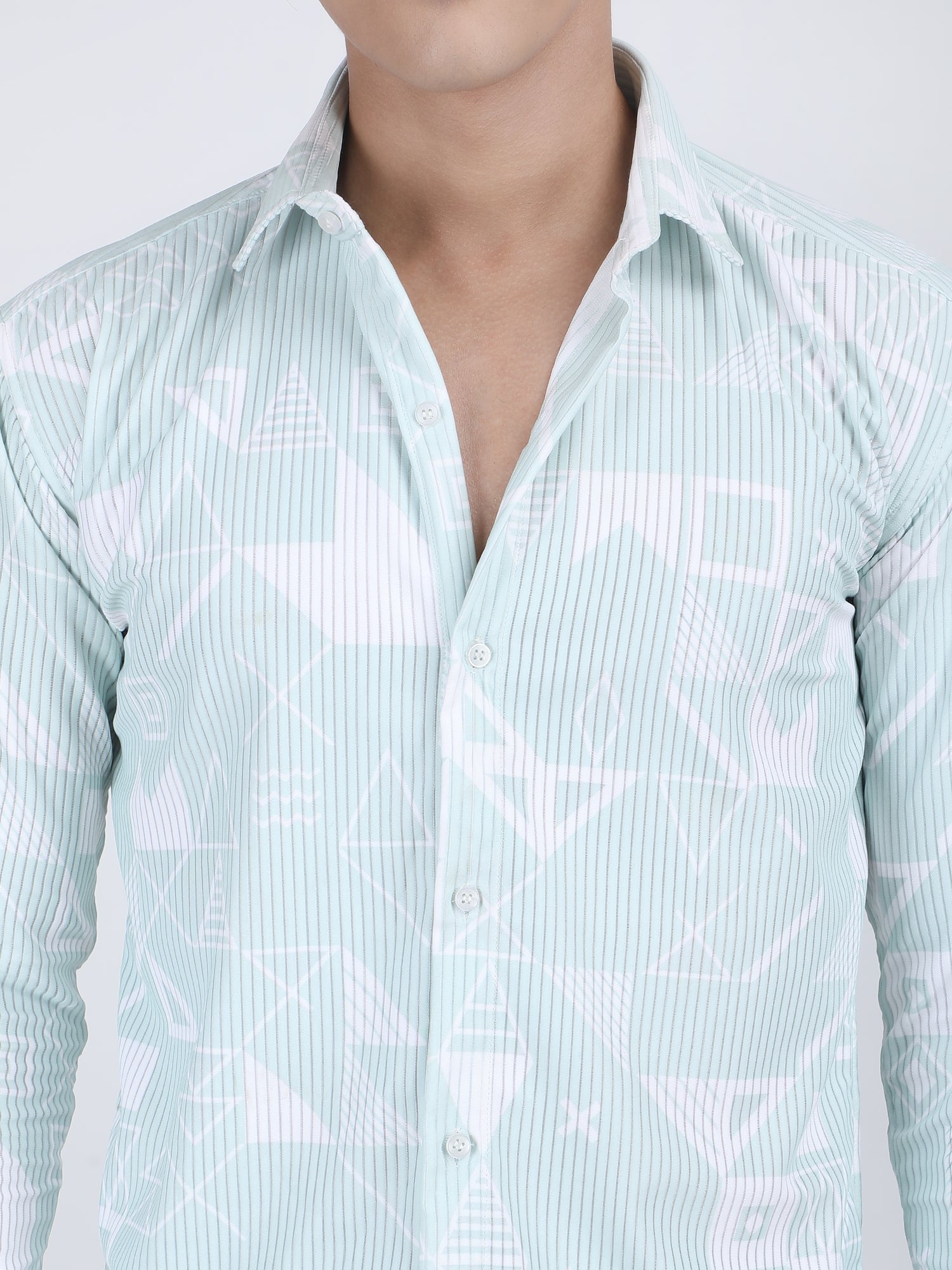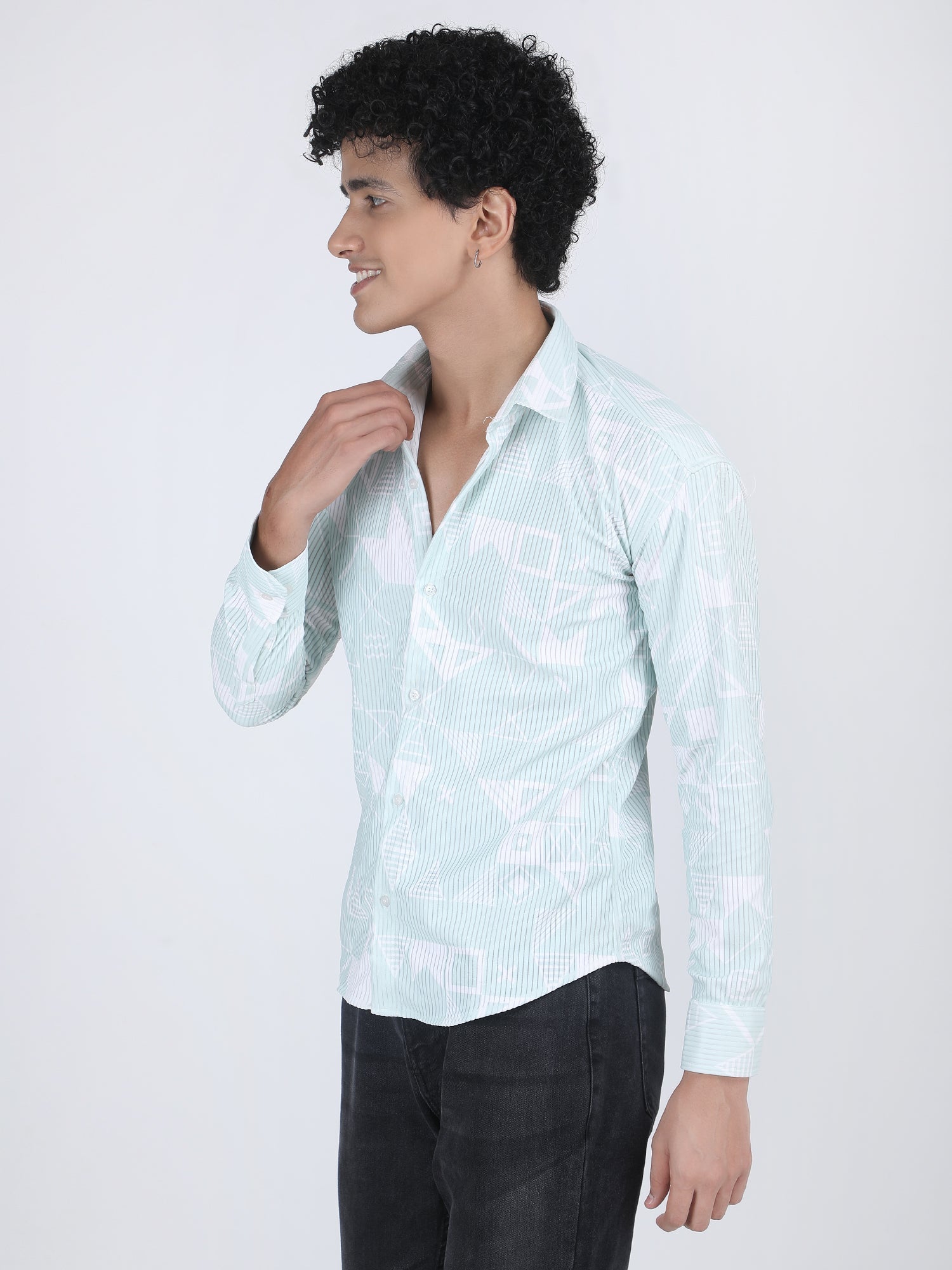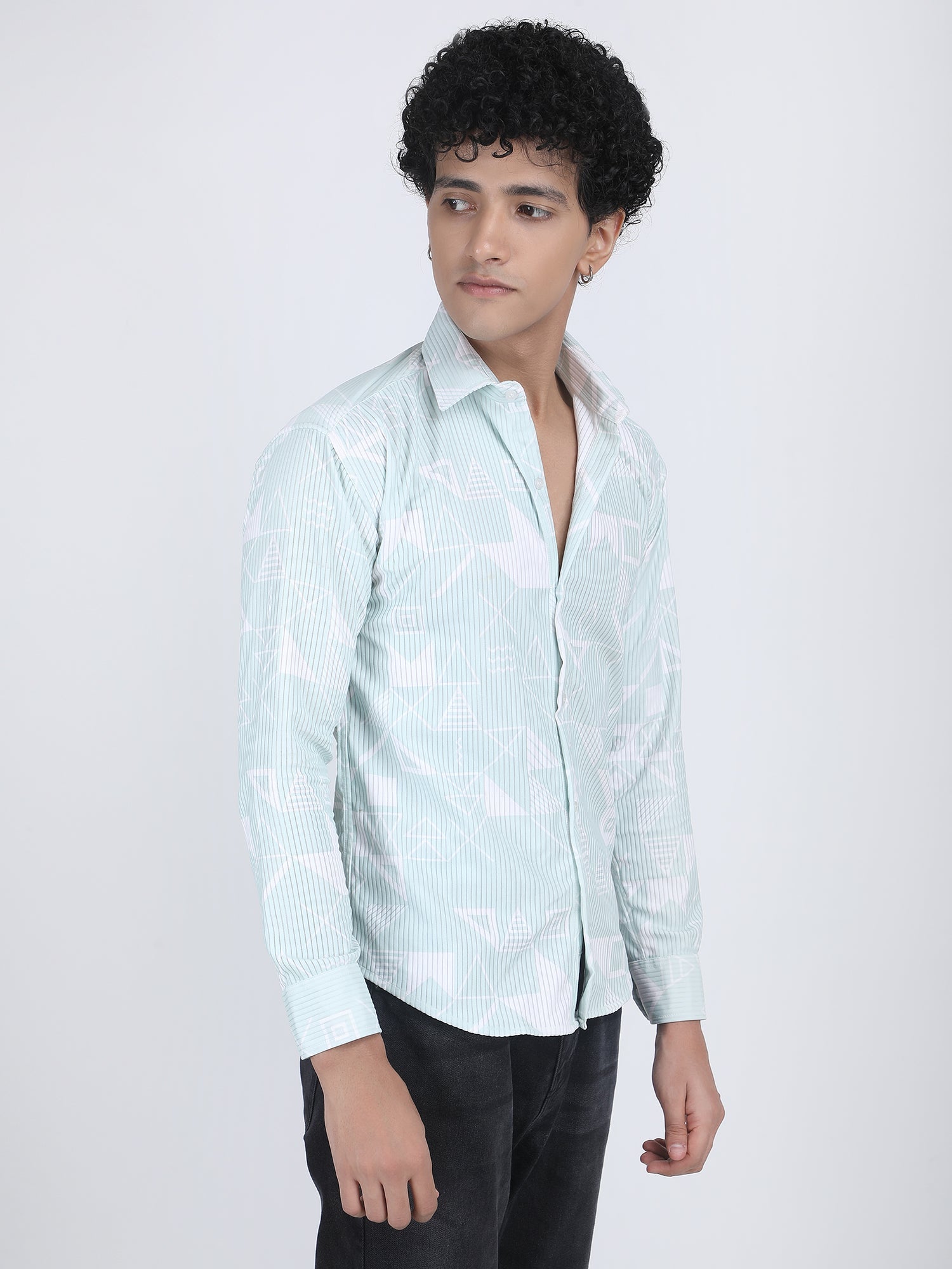 About Product -Channel serene elegance in this Pista Printed Turkish Weave shirt, offering a unique aesthetic twist. Fresh and vibrant, this printed Turkish weave shirt brightens any wardrobe. Featuring intricate prints on crisp white fabric, it exudes sophistication and versatility, perfect for various occasions and styling options.