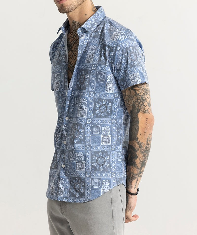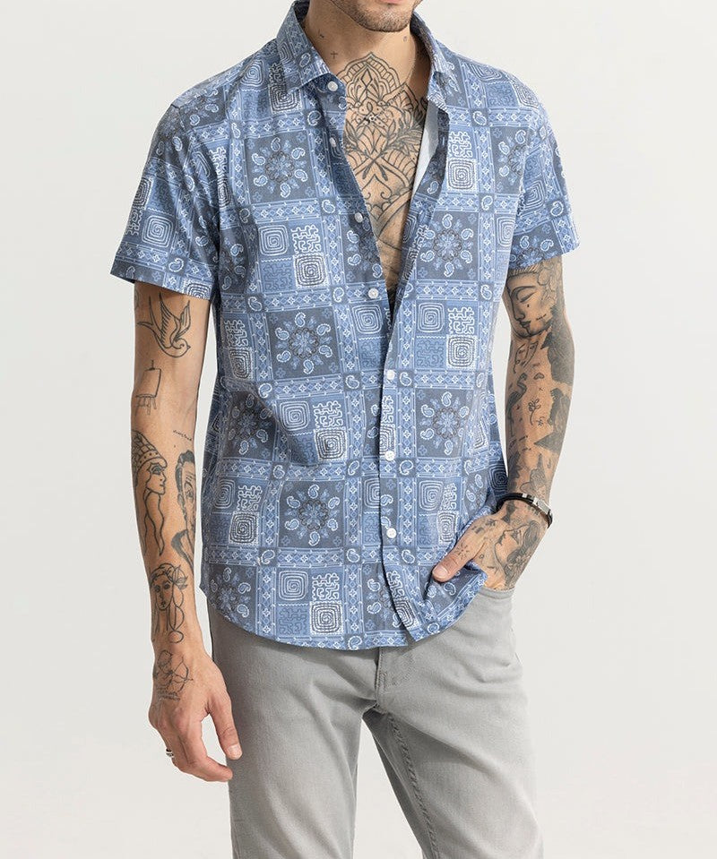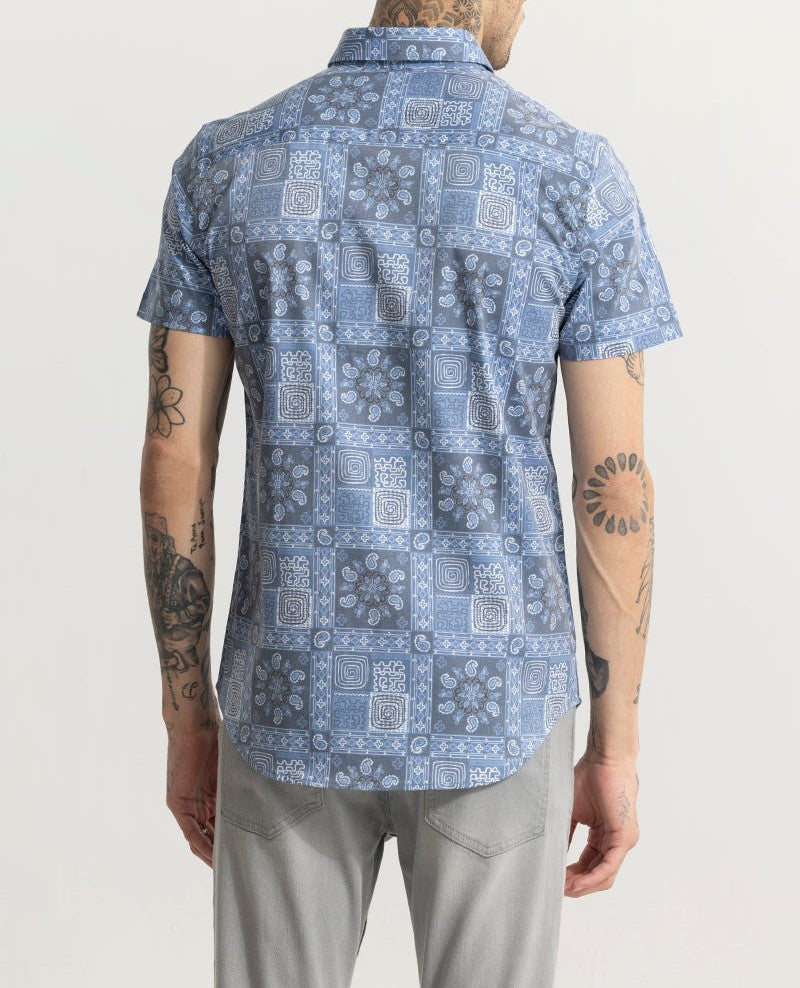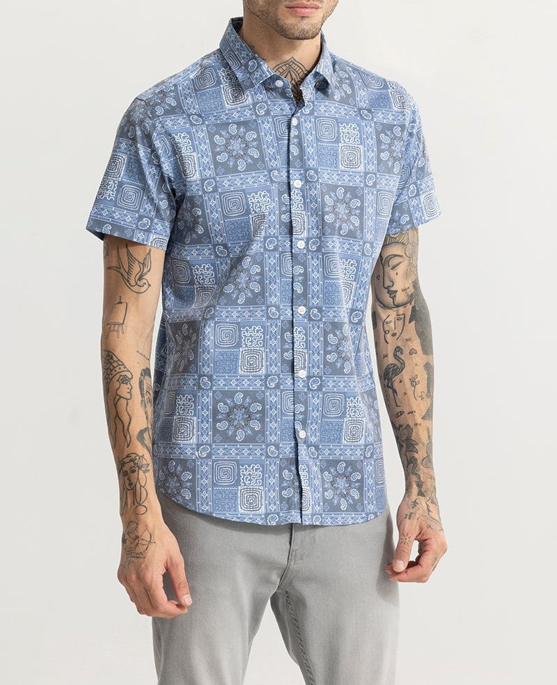 Maintain a timeless look as you transition between smart and casual in timeless style with snitch's new season collection of men's shirts. No matter what your style is, you need this half sleeve slim fit shirt in your wardrobe. It is made from 98%â cotton 2% elastane and features a roomy cut for a casual style.