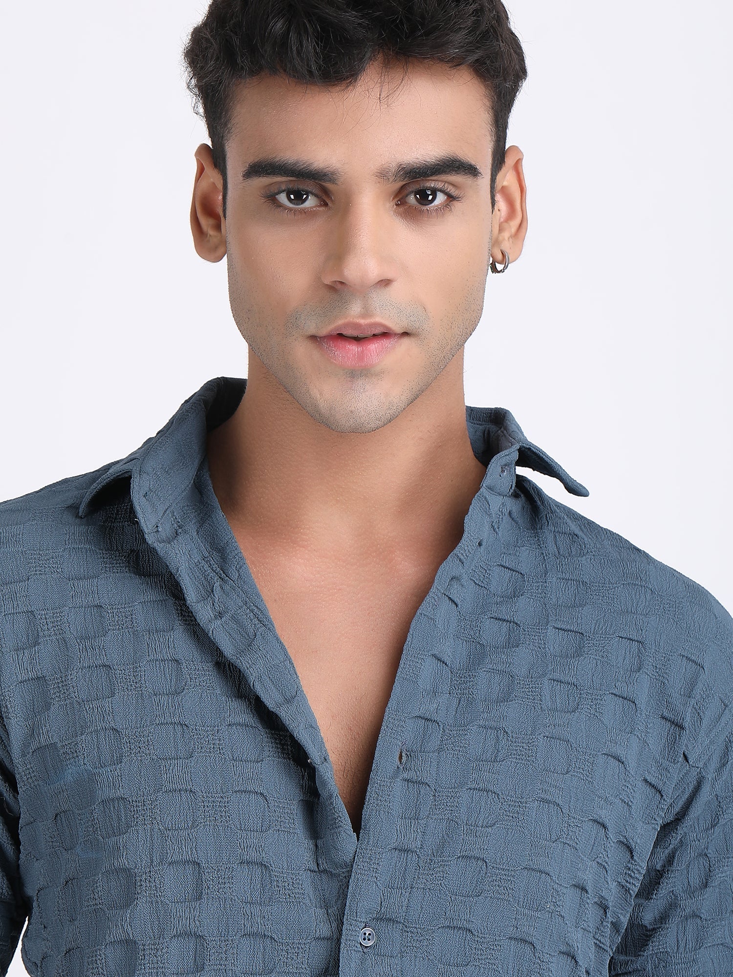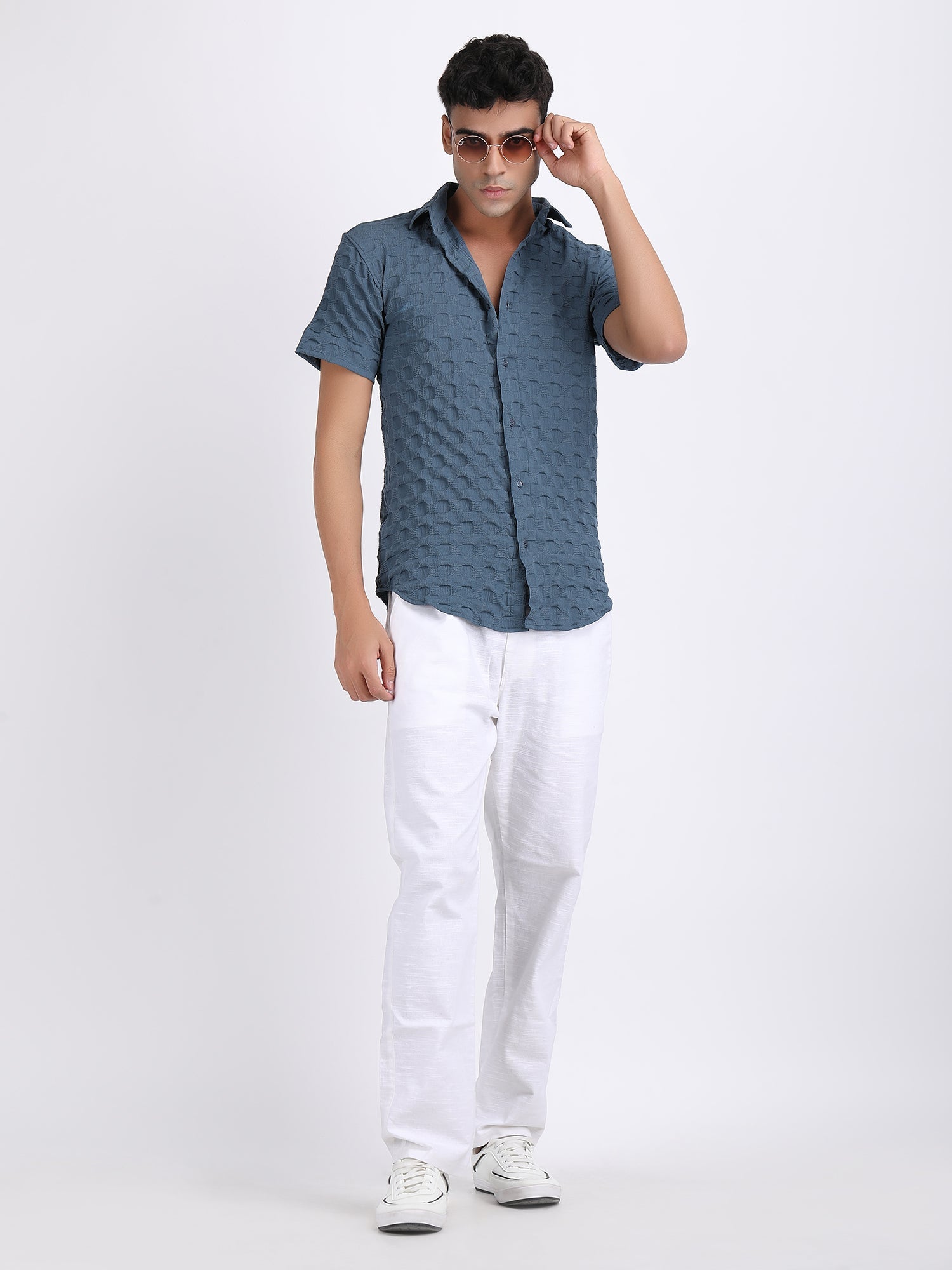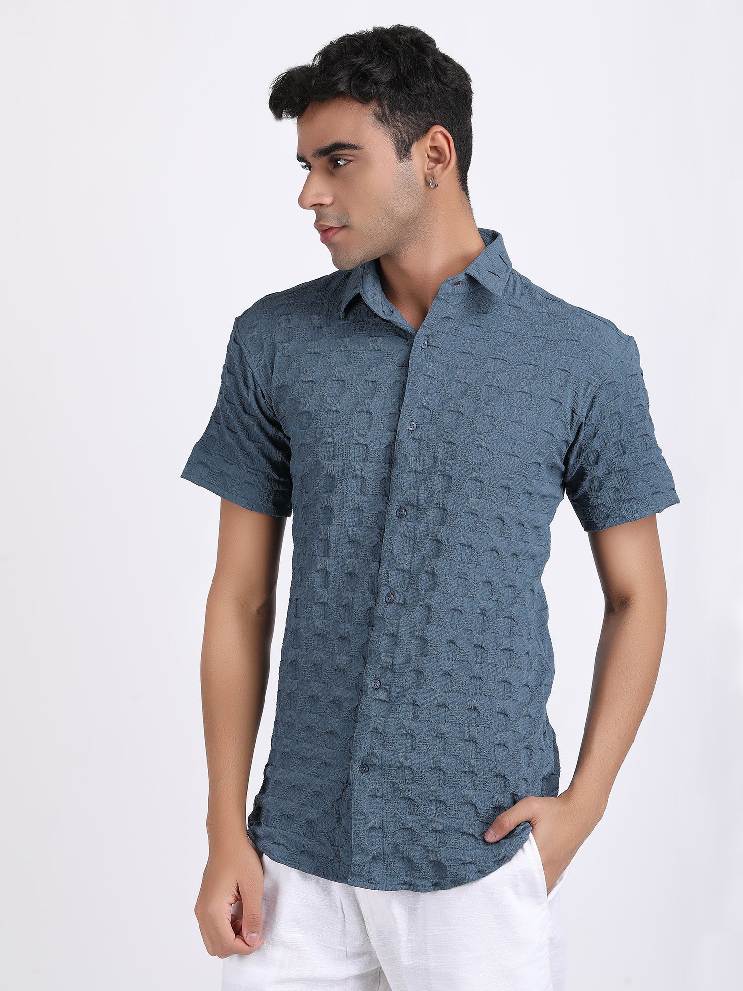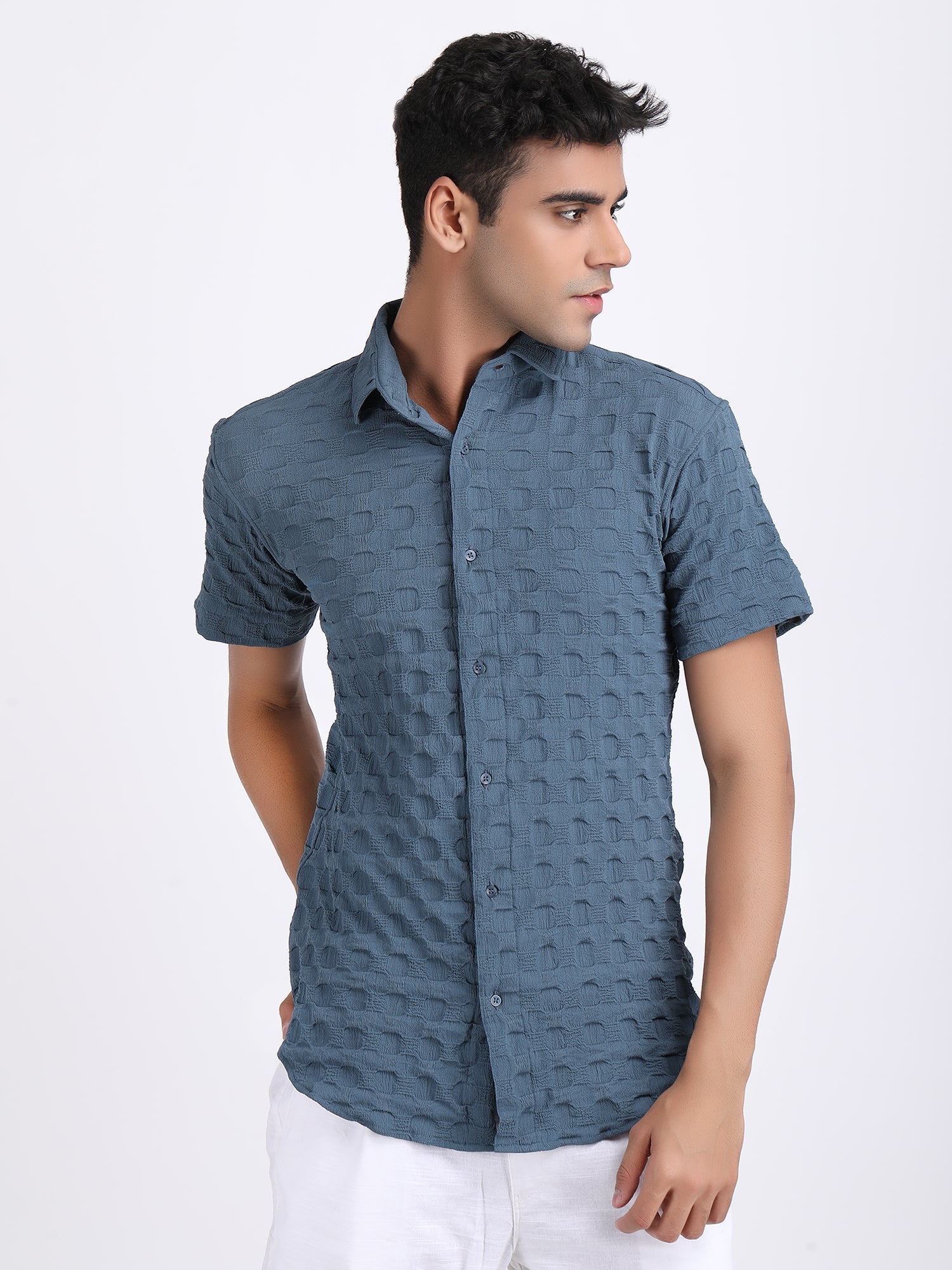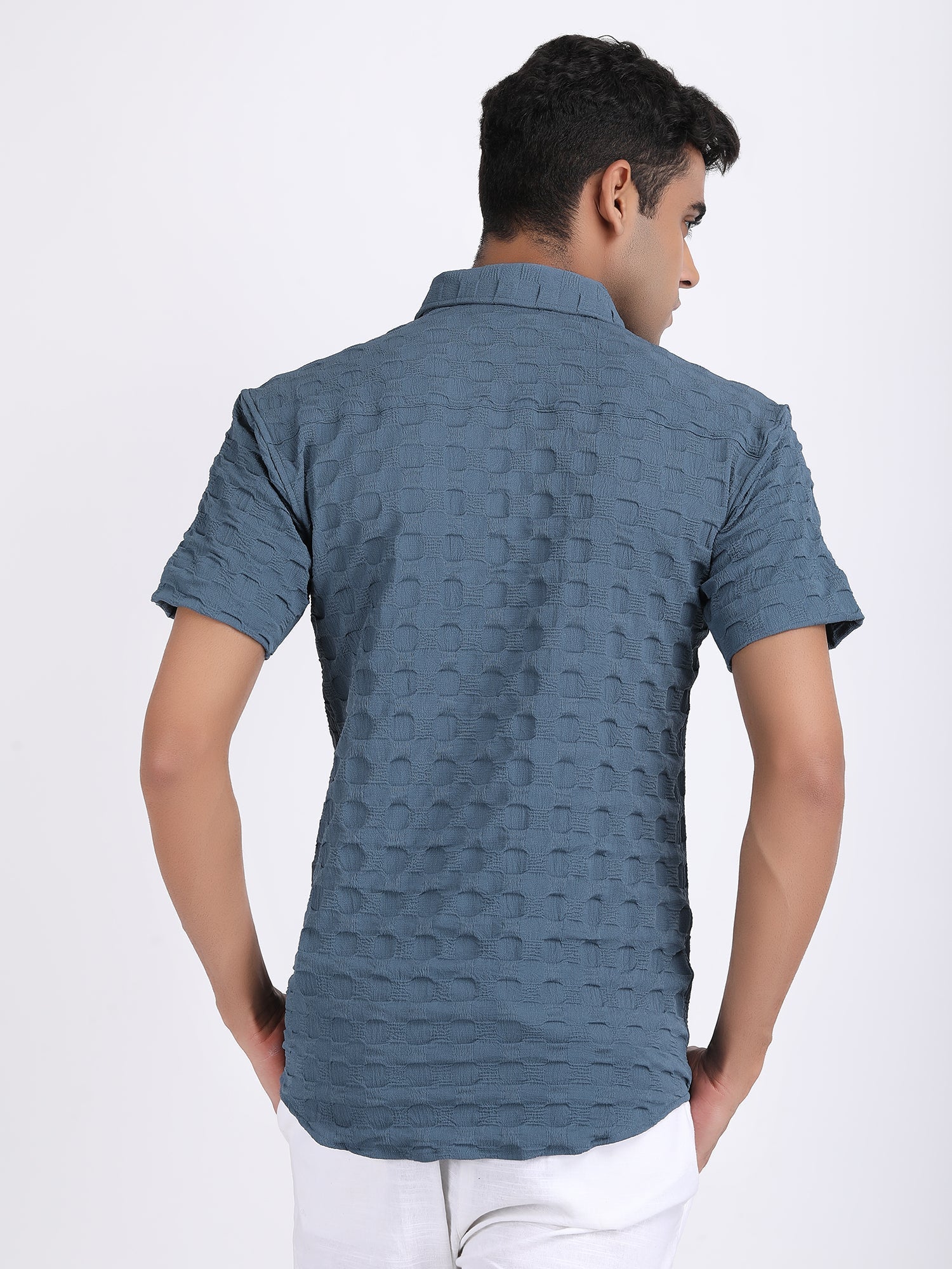 Dark Blue Popcorn Texture Half Sleeves Shirt