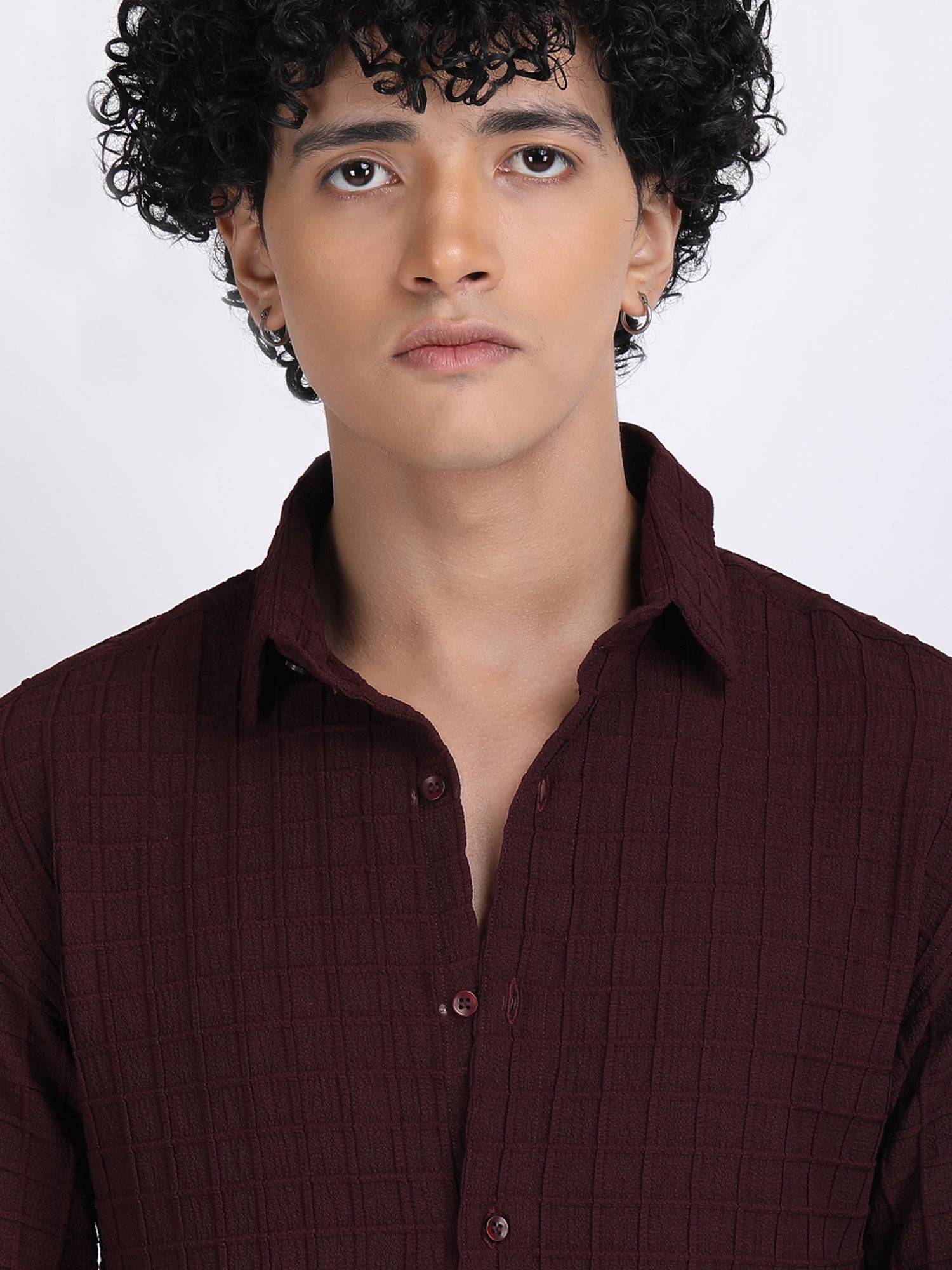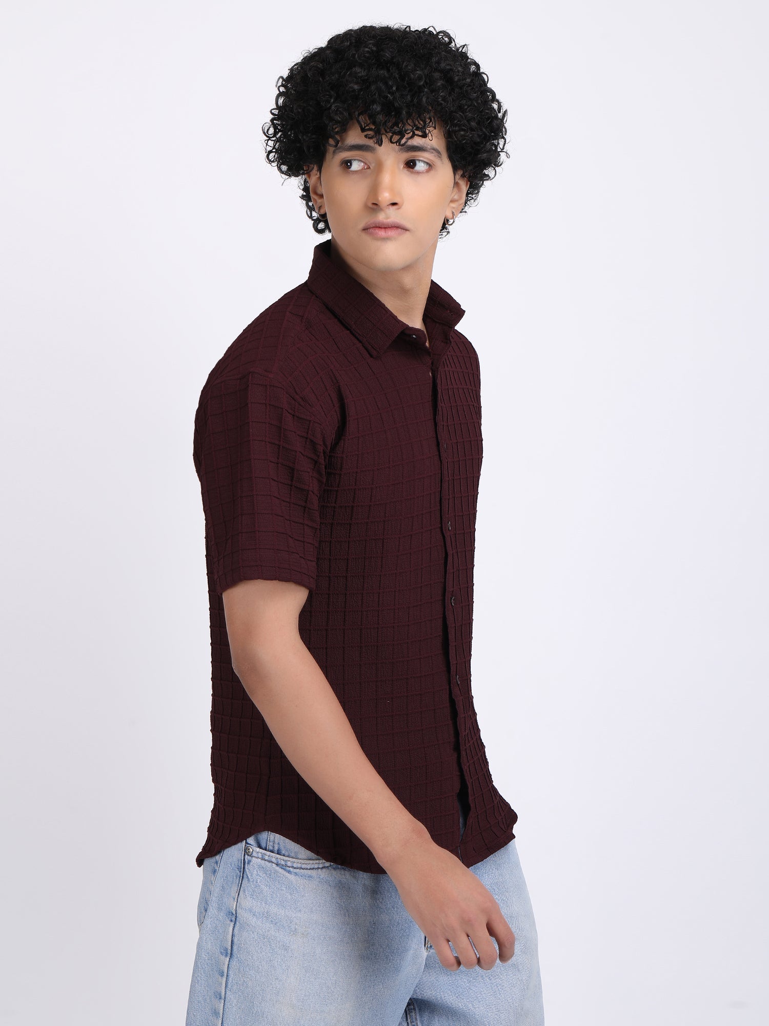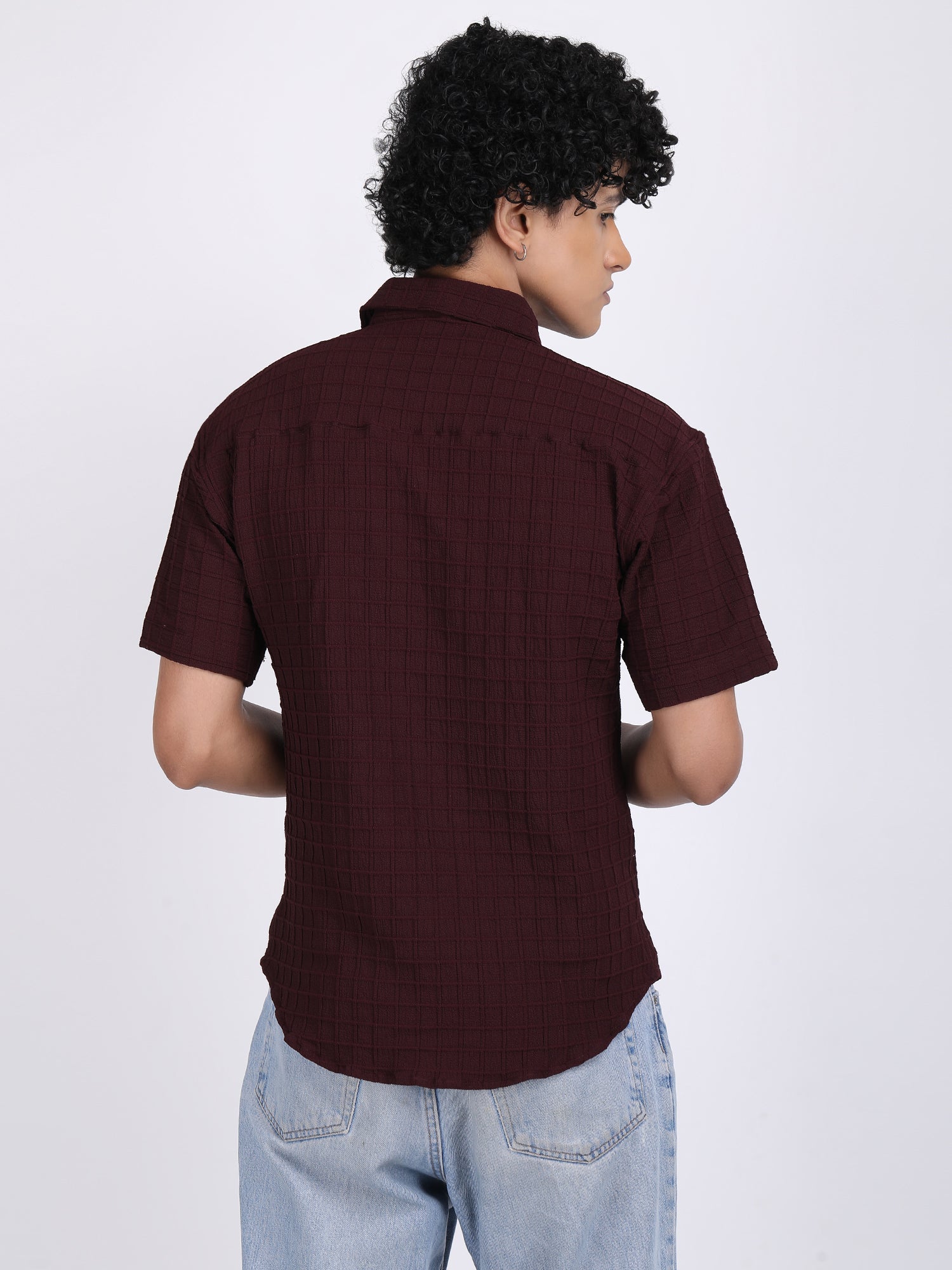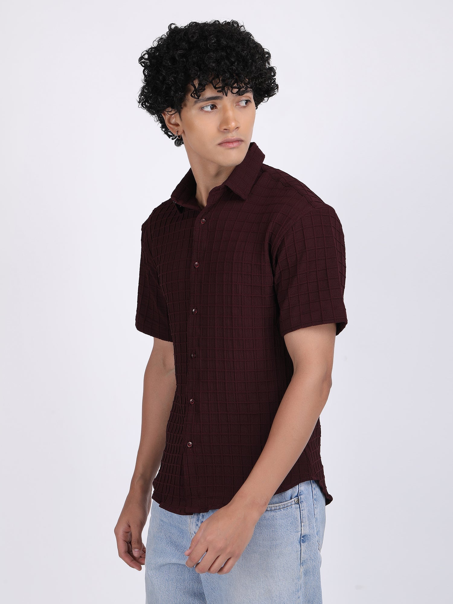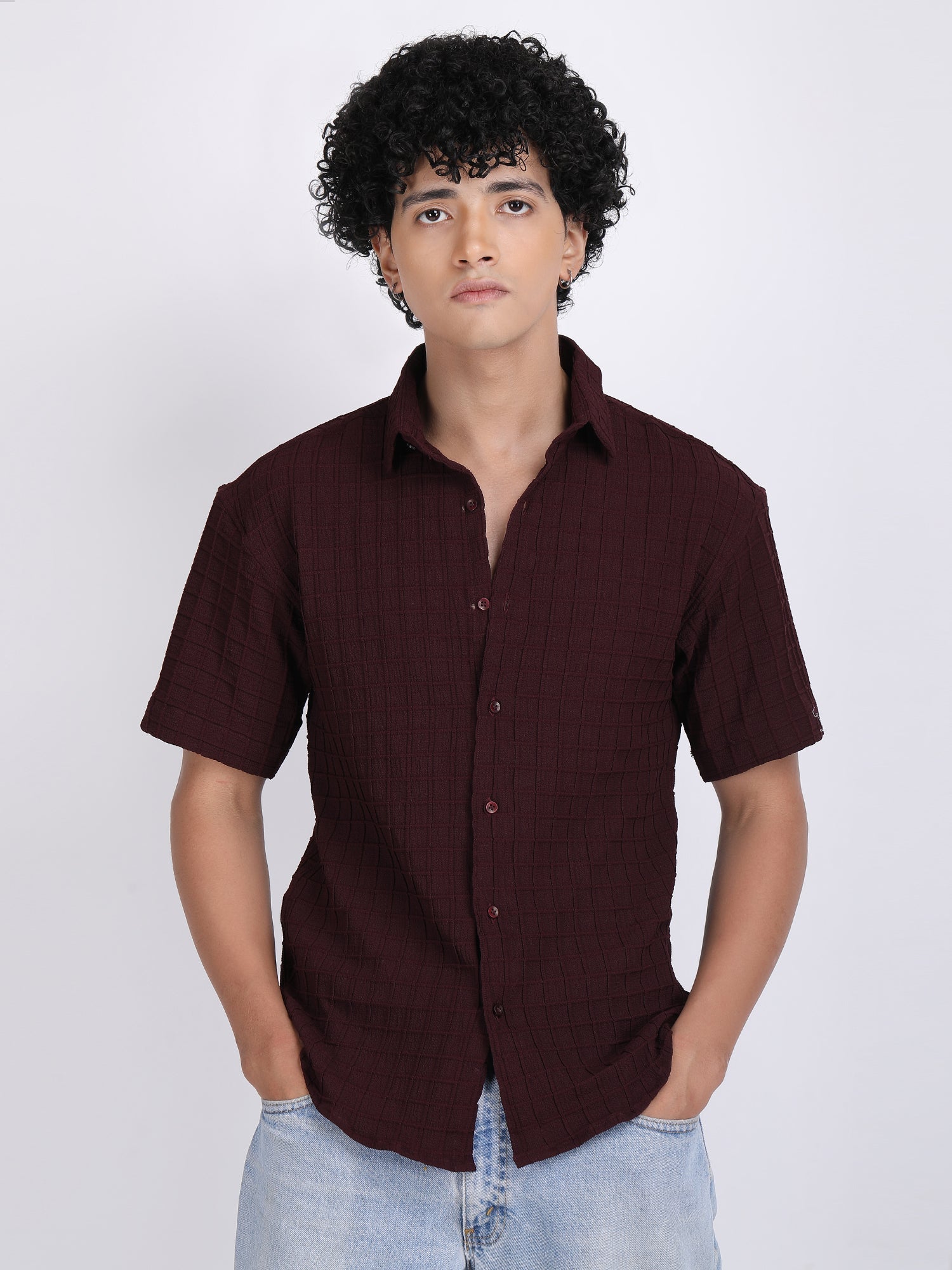 Dark Maroon Popcorn Texture Half Sleeves Shirt