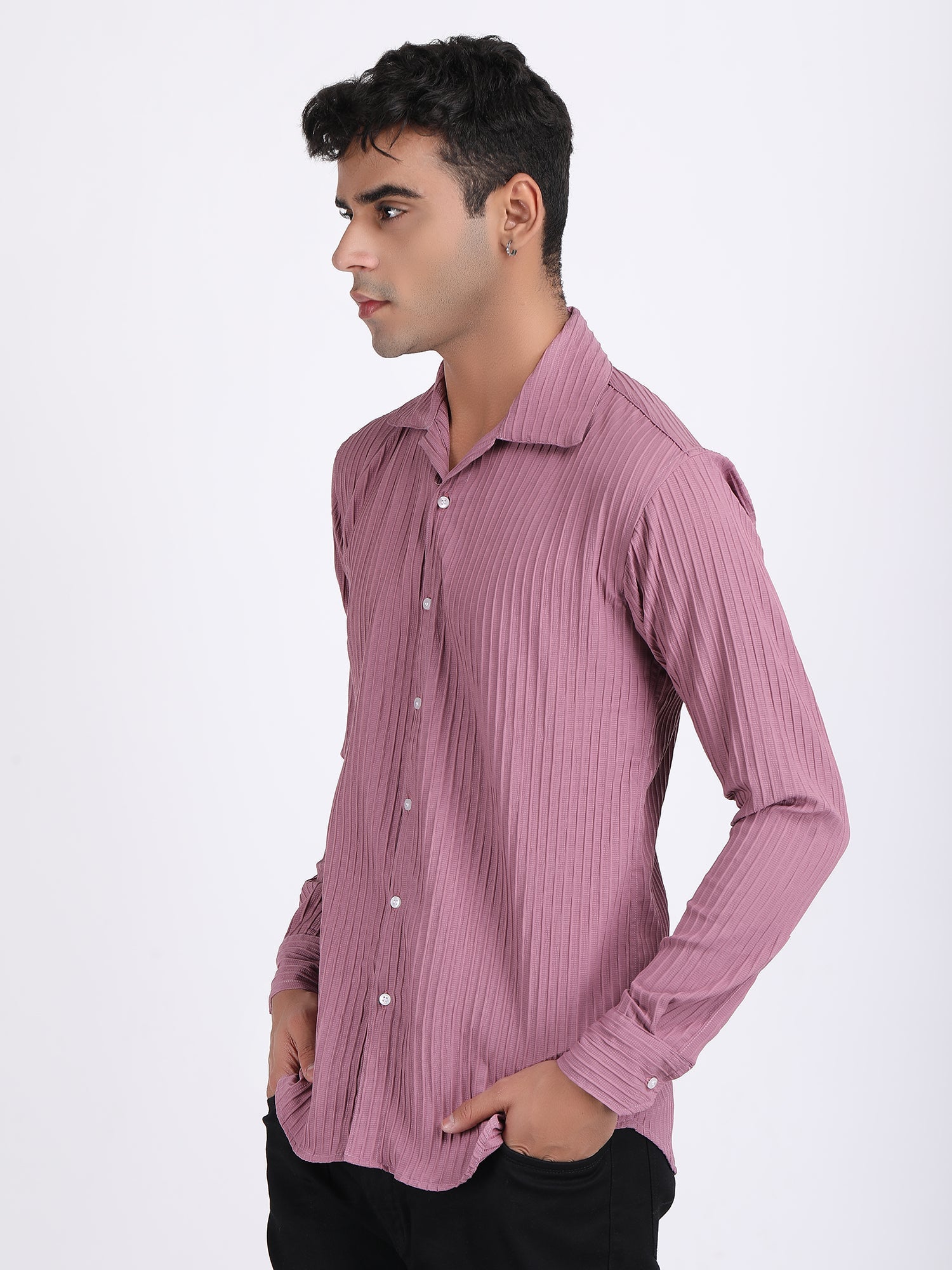 Dark Pink Popcorn Texture Full Sleeves Shirt