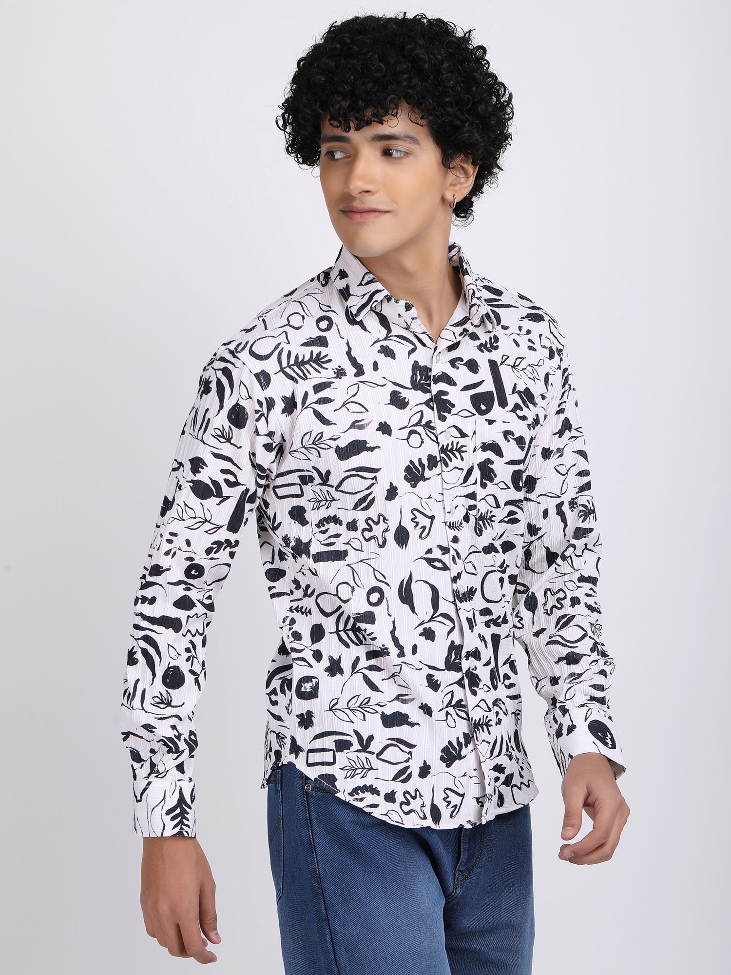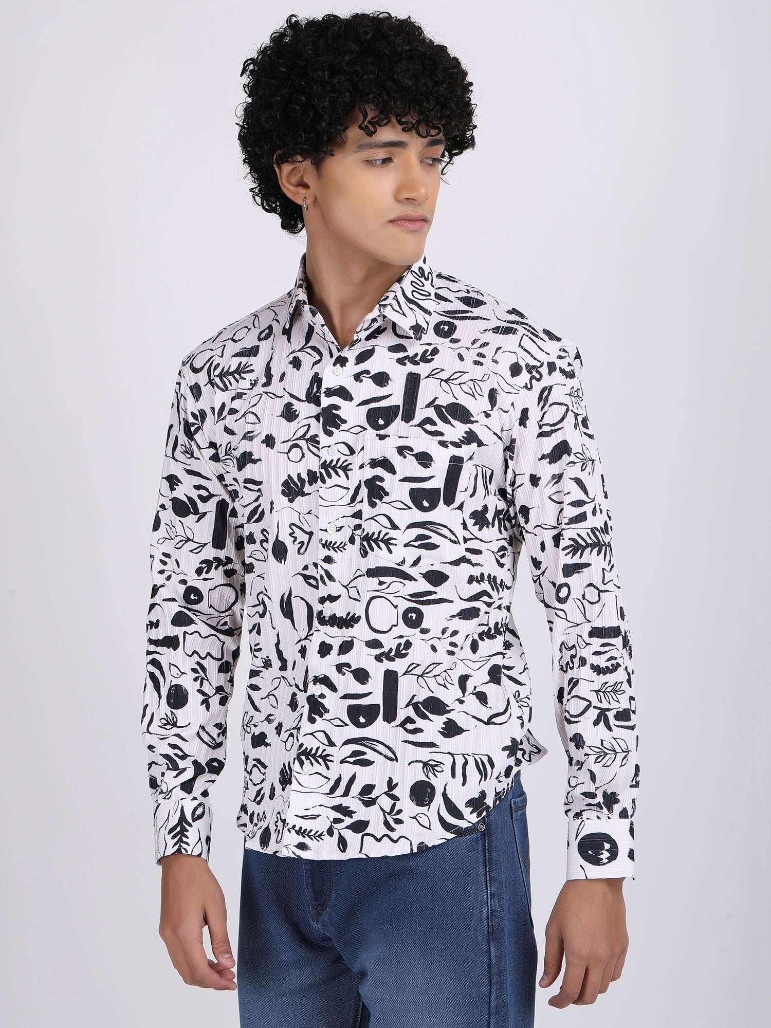 Introducing The Aeromesh White With Black Shirt, A Must-have For Your Summer Wardrobe. With Full Sleeves And A Textured Fabric, This Shirt Offers Both Comfort And Style. The Curve Hem Adds A Touch Of Sophistication. Perfect For Any Summer Occasion.