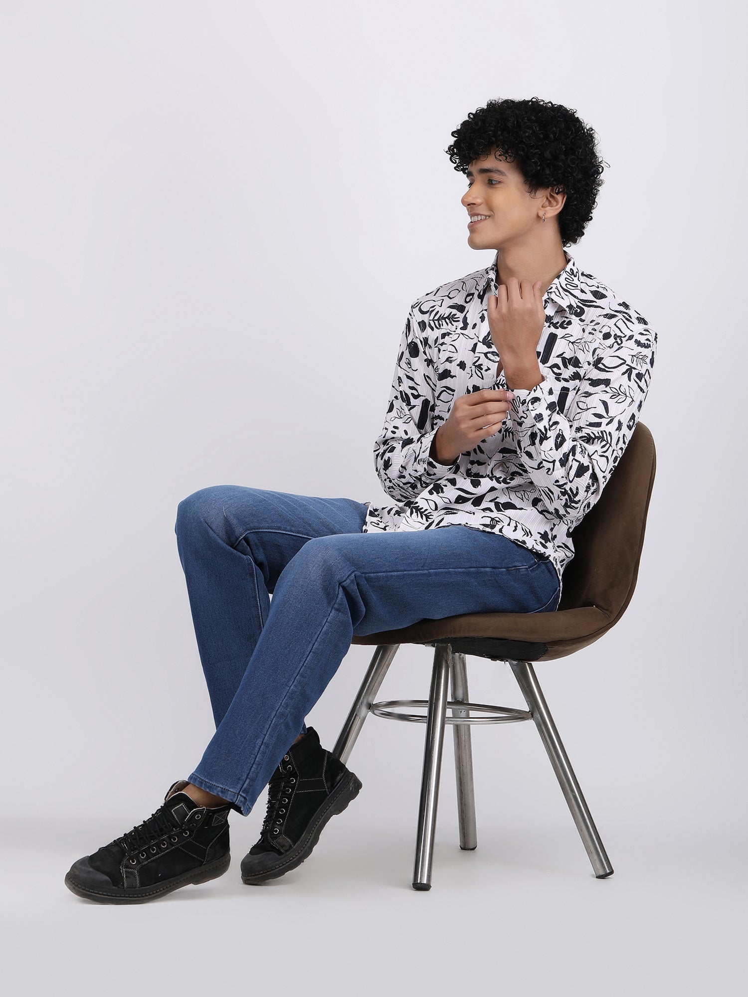 Dark White Popcorn Print Premium Full Sleeves Shirt