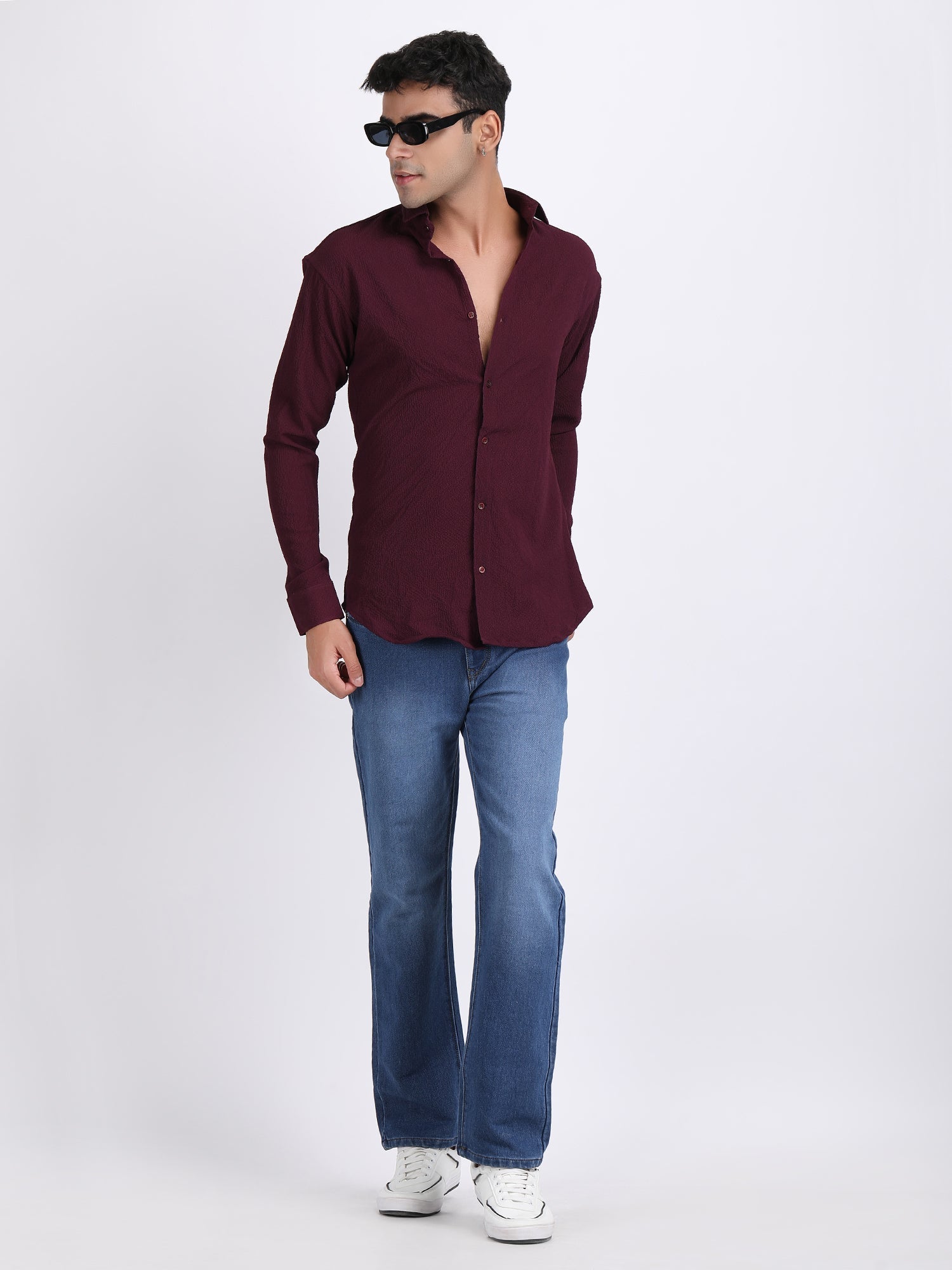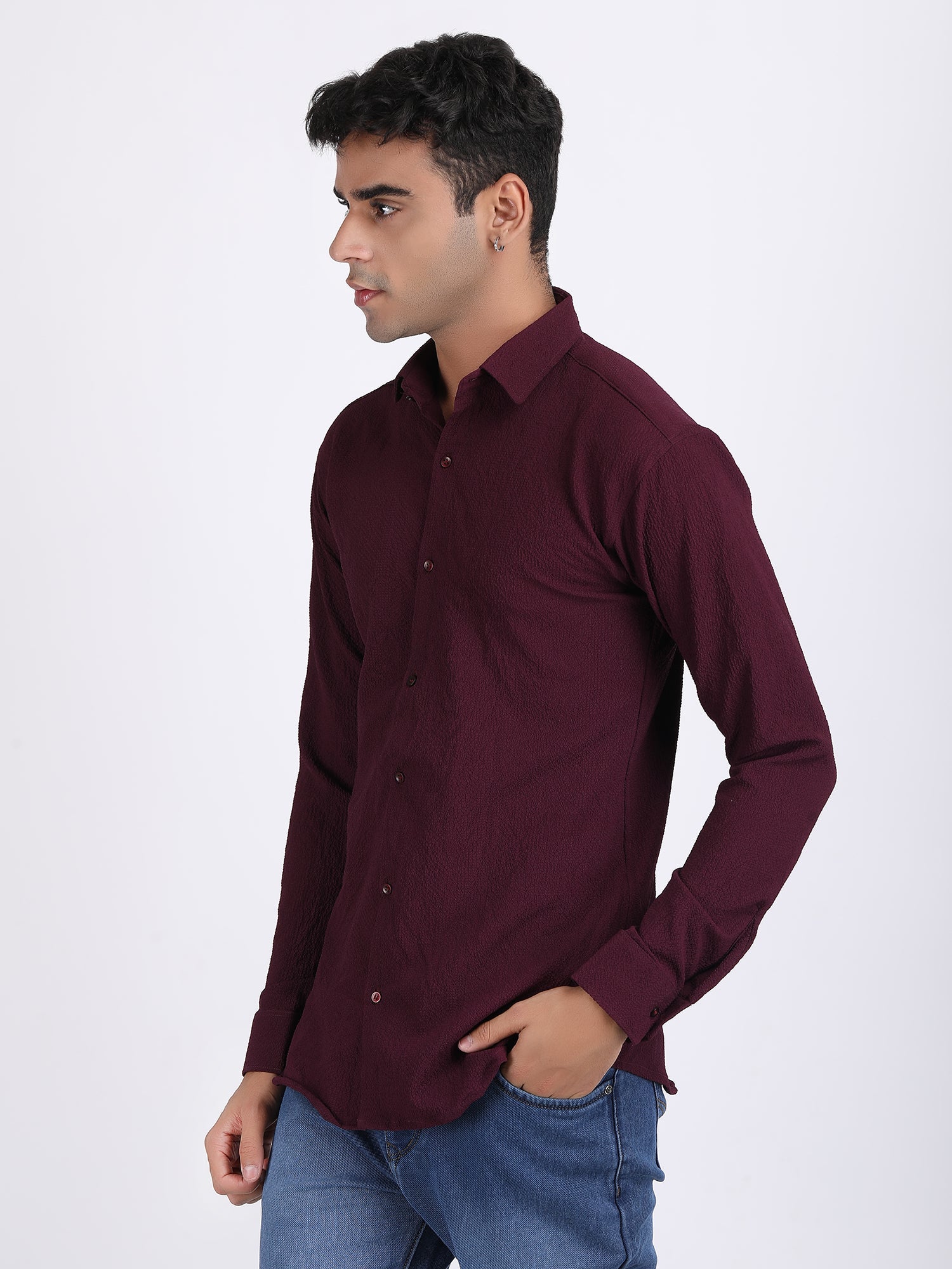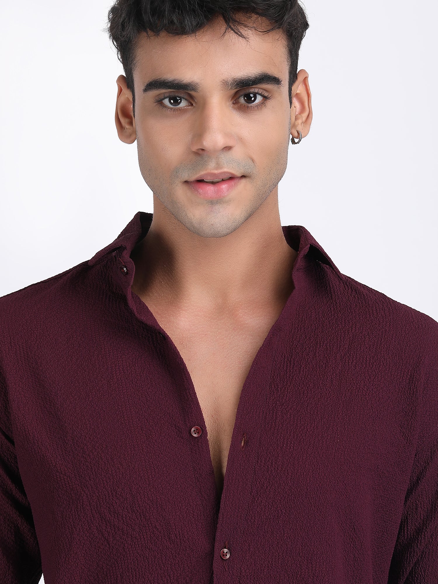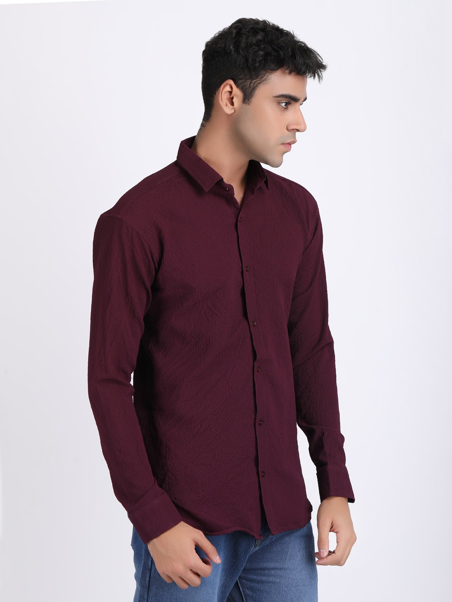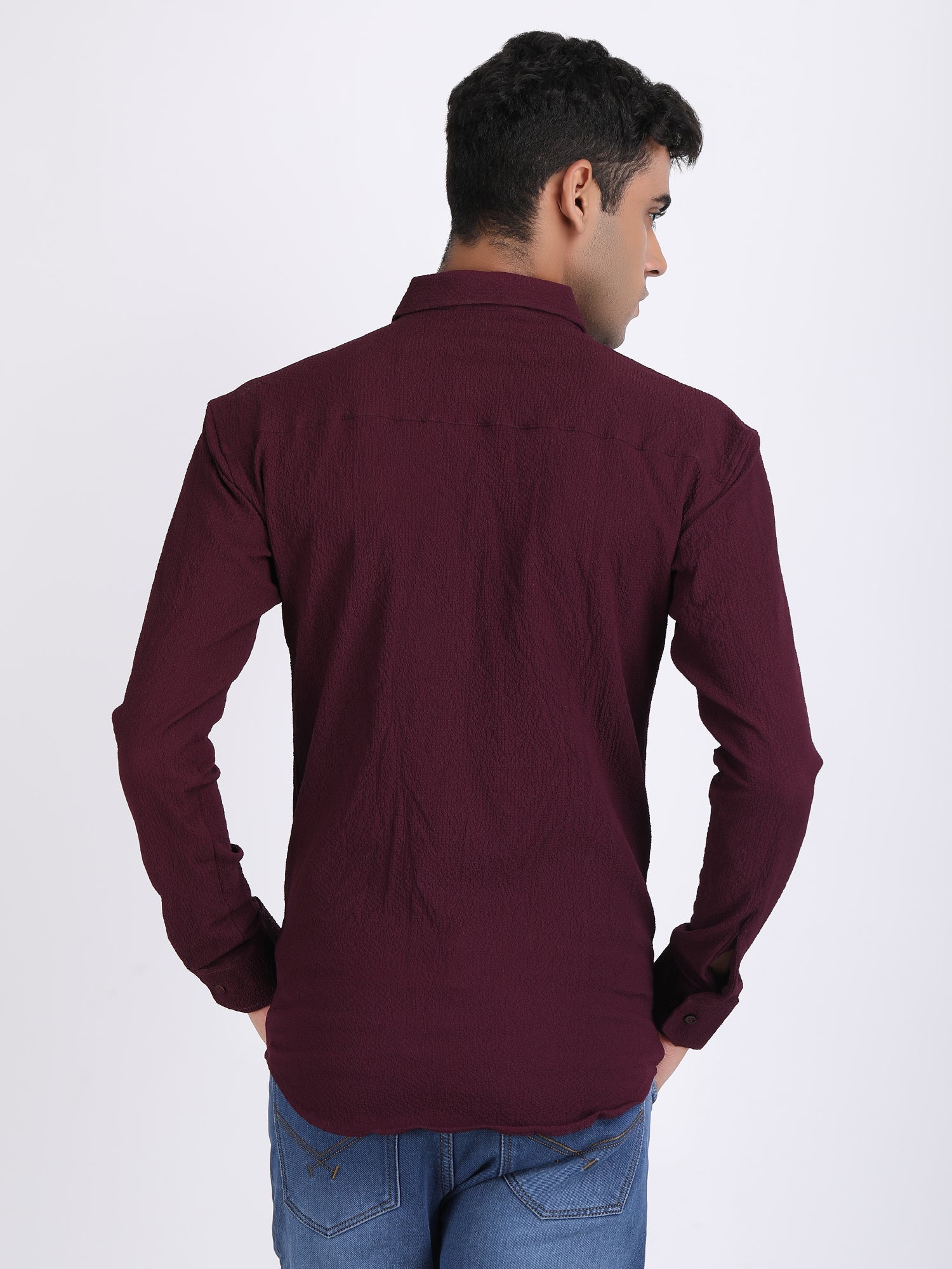 Dark Wine Popcorn Texture Full Sleeves Shirt