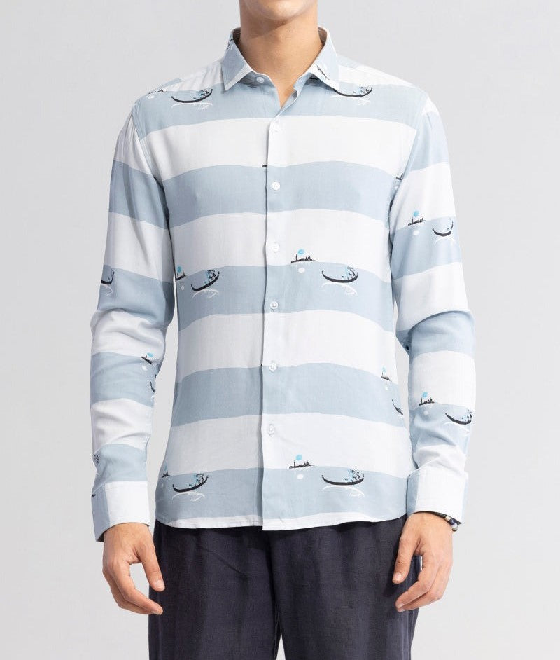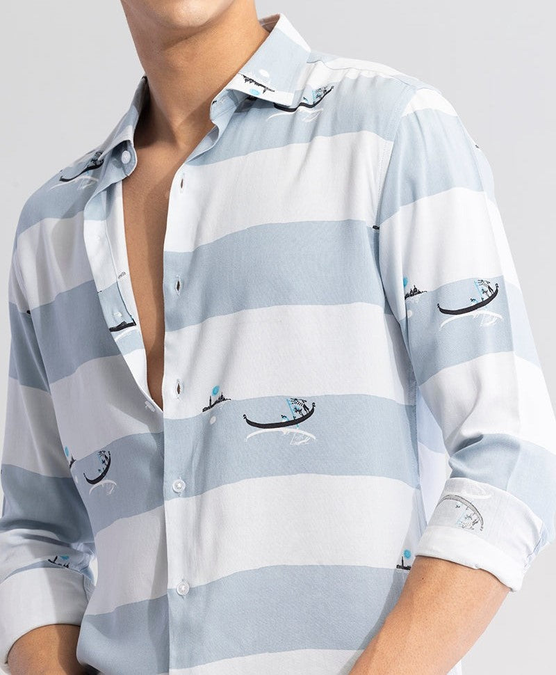 Give your everyday wardrobe an effortless appeal with this classy greyish blue 100% rayon shirt. Designed in a Slim Fit, this shirt is known for its endless versatility. A look that bridges dressy and casual, with full sleeve and spread, it is perfect to wear alone or as an outer layer.