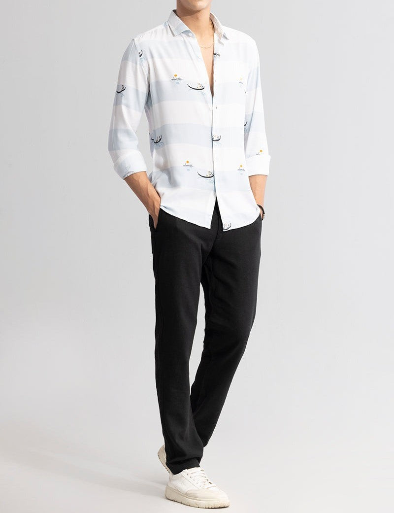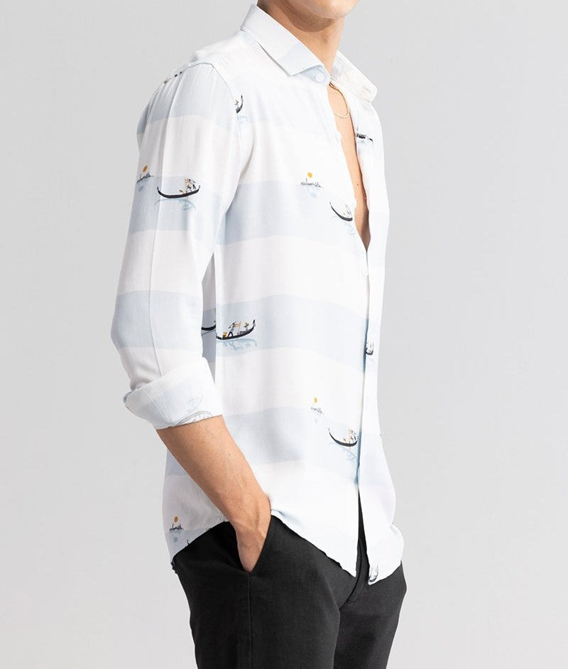 Give your everyday wardrobe an effortless appeal with this classy greyish light blue 100% rayon shirt. Designed in a Slim Fit, this shirt is known for its endless versatility. A look that bridges dressy and casual, with full sleeve and spread, it is perfect to wear alone or as an outer layer.