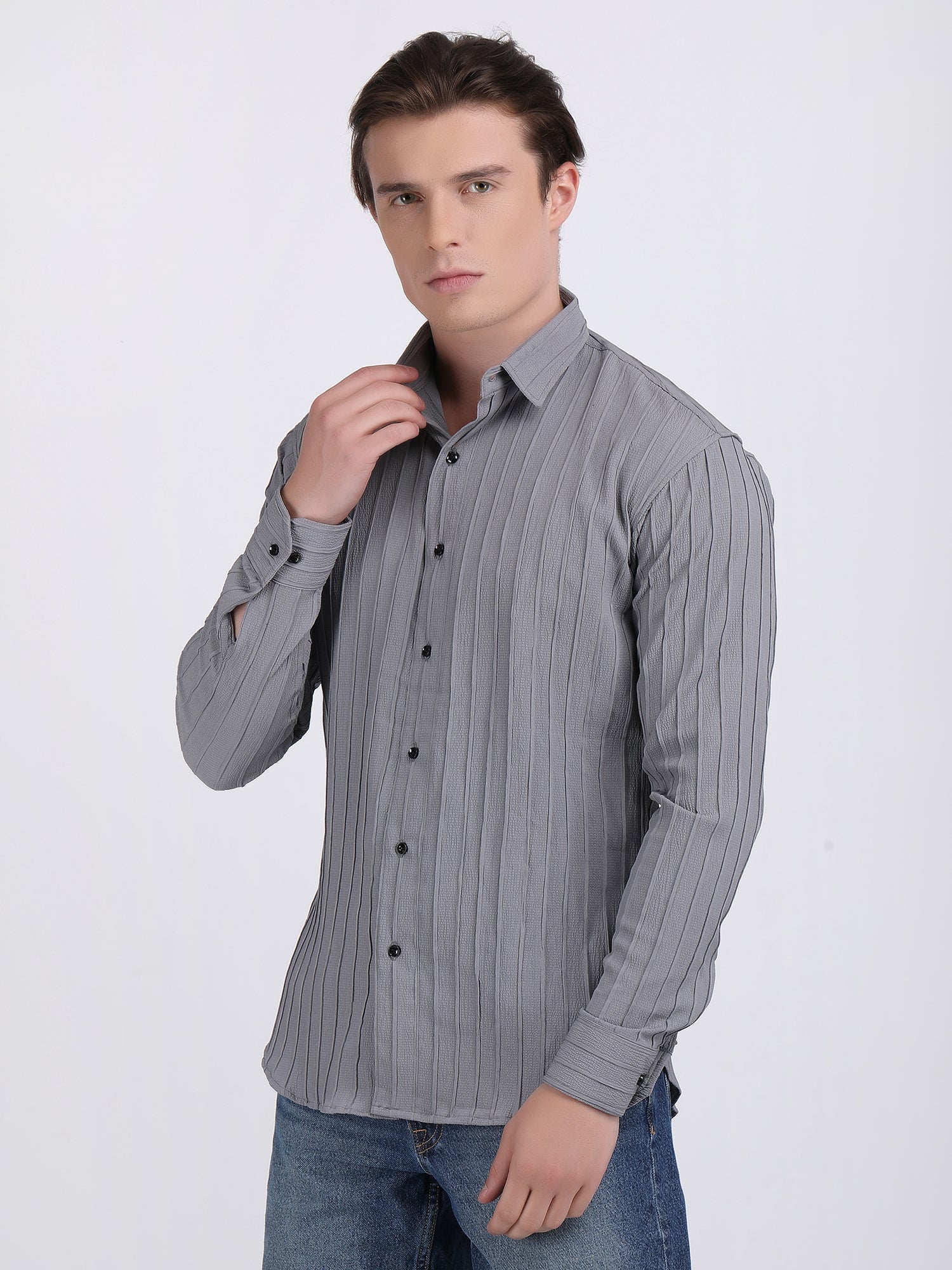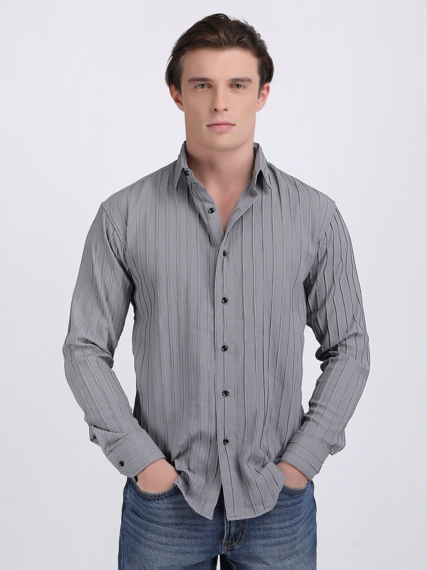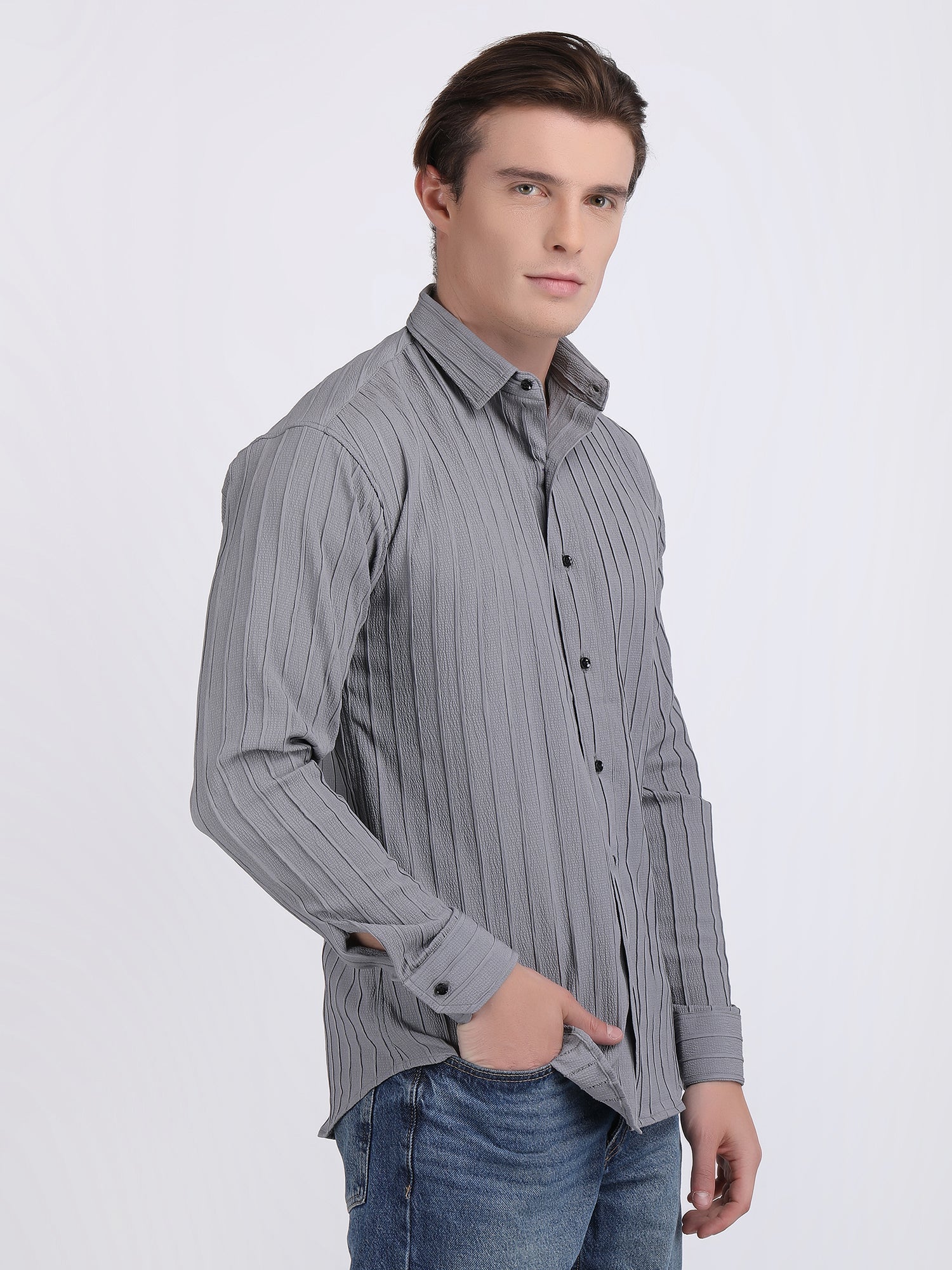 Grey Popcorn Texture Full Sleeves Shirt