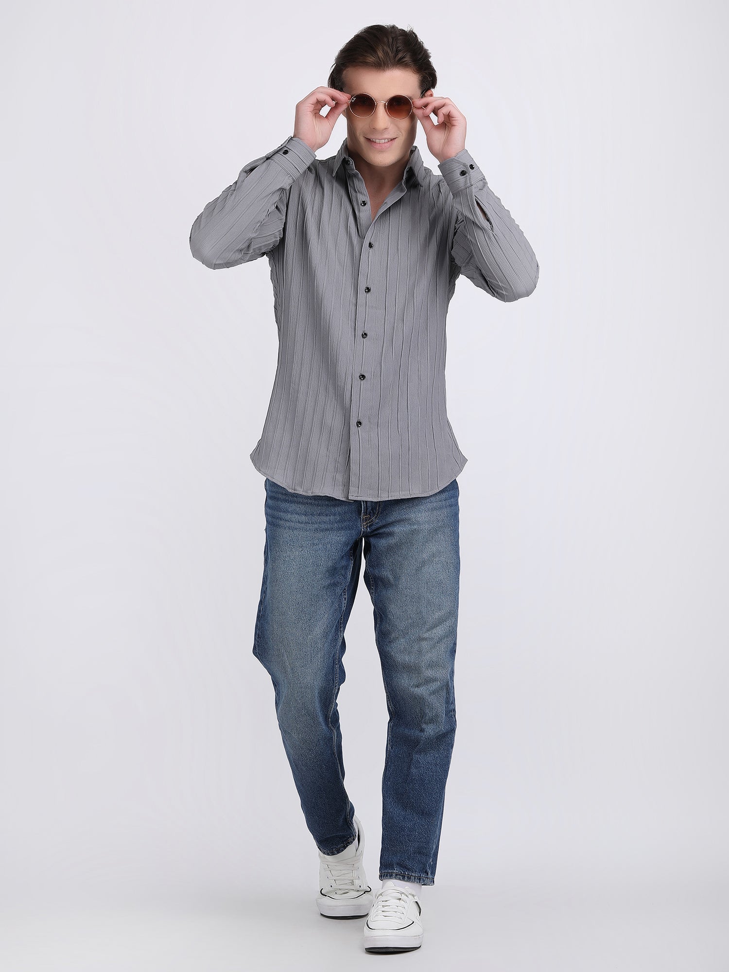 Introducing The Aeromesh Grey Shirt, A Must-have For Your Summer Wardrobe. With Full Sleeves And A Textured Fabric, This Shirt Offers Both Comfort And Style. The Curve Hem Adds A Touch Of Sophistication. Perfect For Any Summer Occasion.