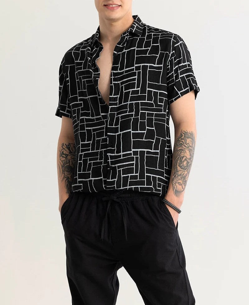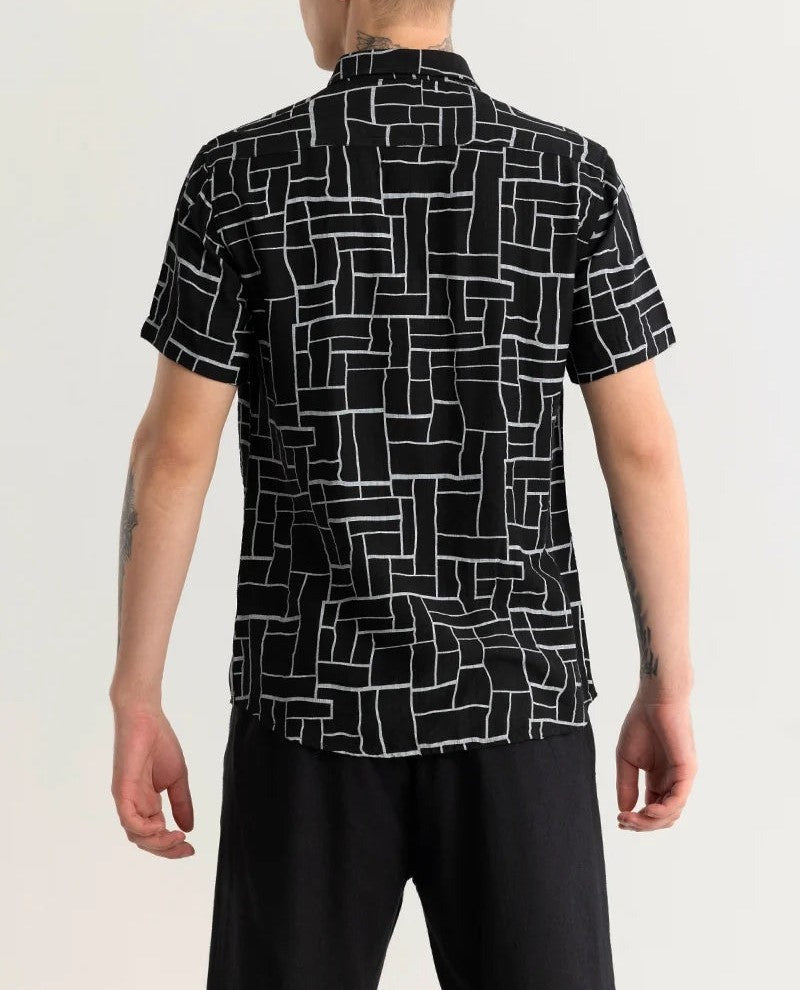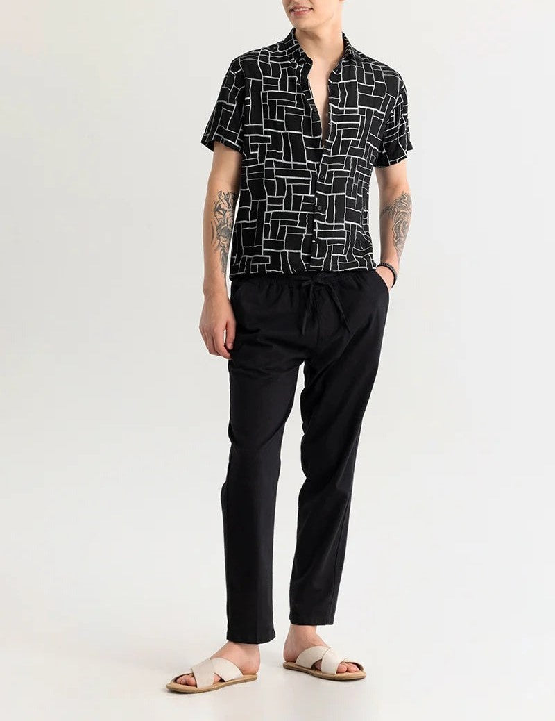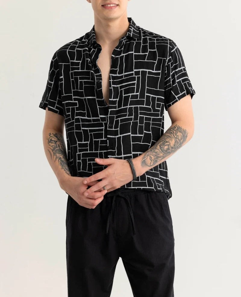 Give your everyday wardrobe an effortless appeal with this classy black viscose rayon shirt. Designed in a slim fit fit, this shirt is known for its endless versatility. A look that bridges dressy and casual, with half sleeves and spread collar, it is perfect to wear alone or as an outer layer.