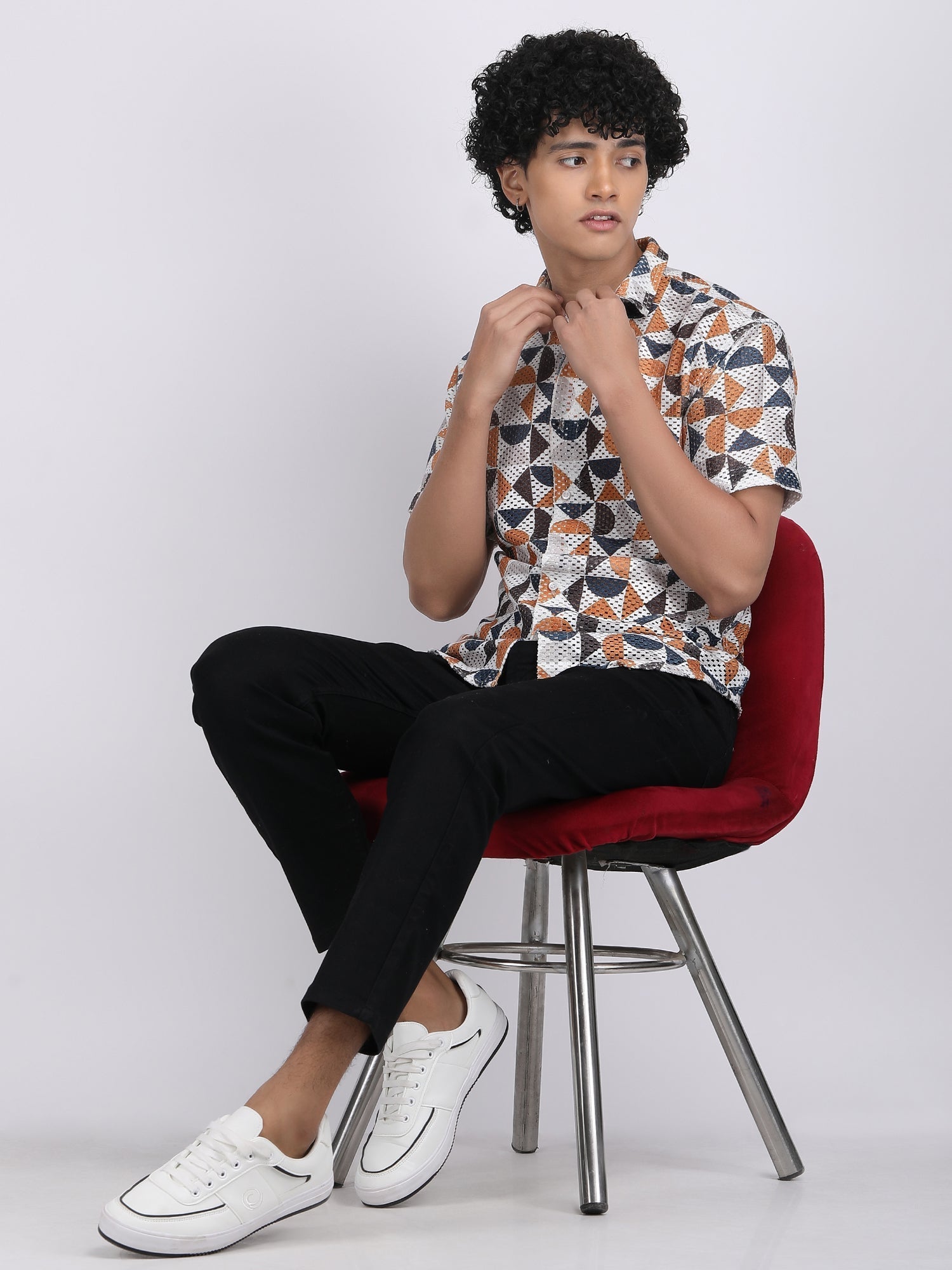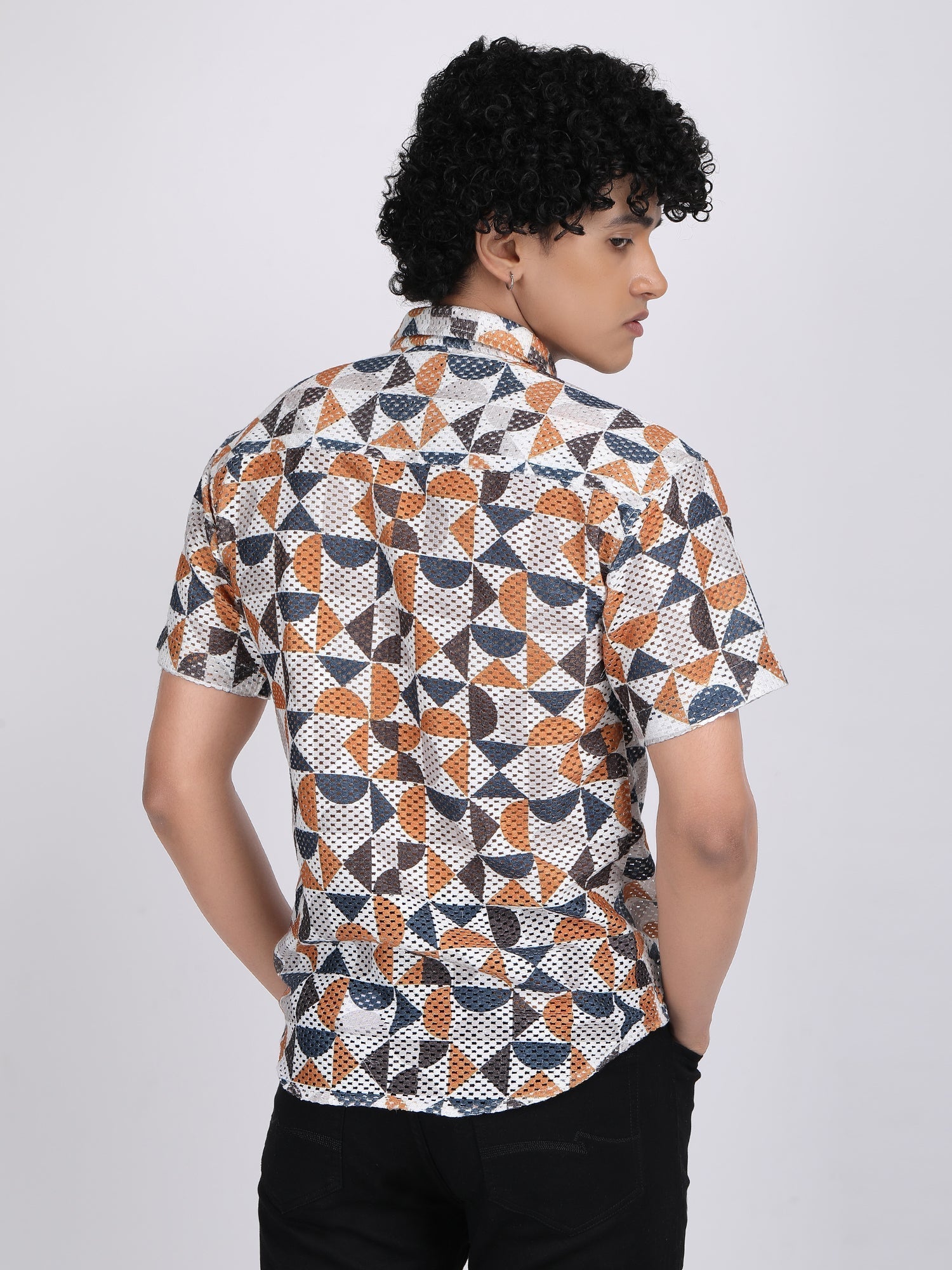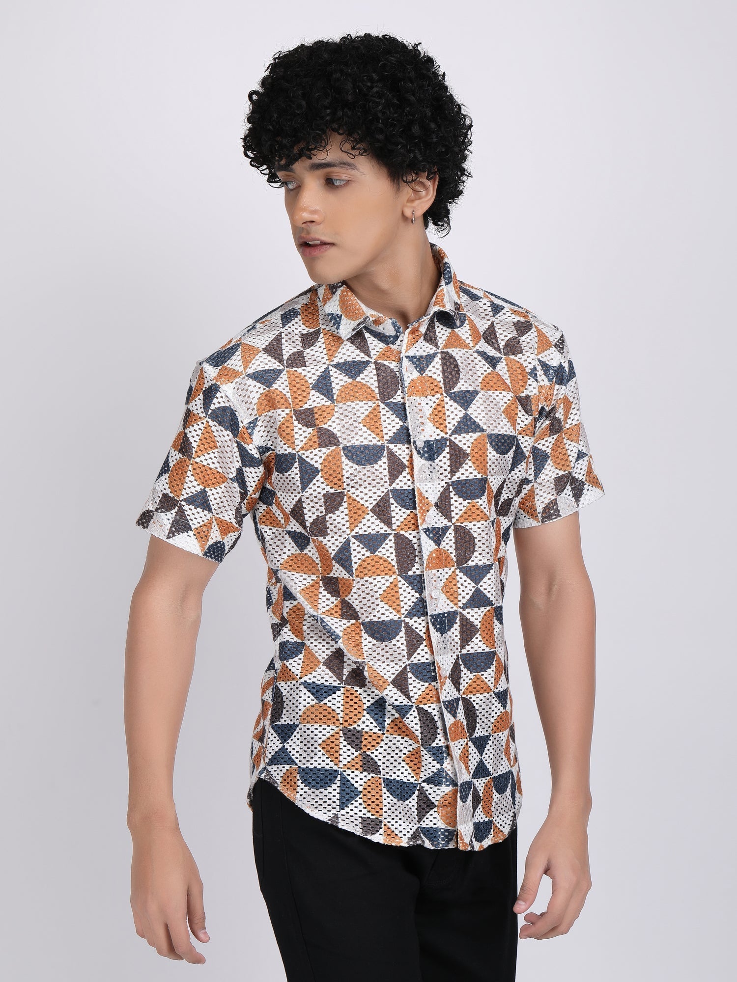 This Dual Fusion Light Brown Crochet Shirt Features A Unique Self Design That Adds A Touch Of Elegance To Your Wardrobe. The Box Fit Style Offers A Comfortable And Flattering Fit, Perfect For Any Party Or Special Occasion. Upgrade Your Look With This Sophisticated And Fashionable Shirt.