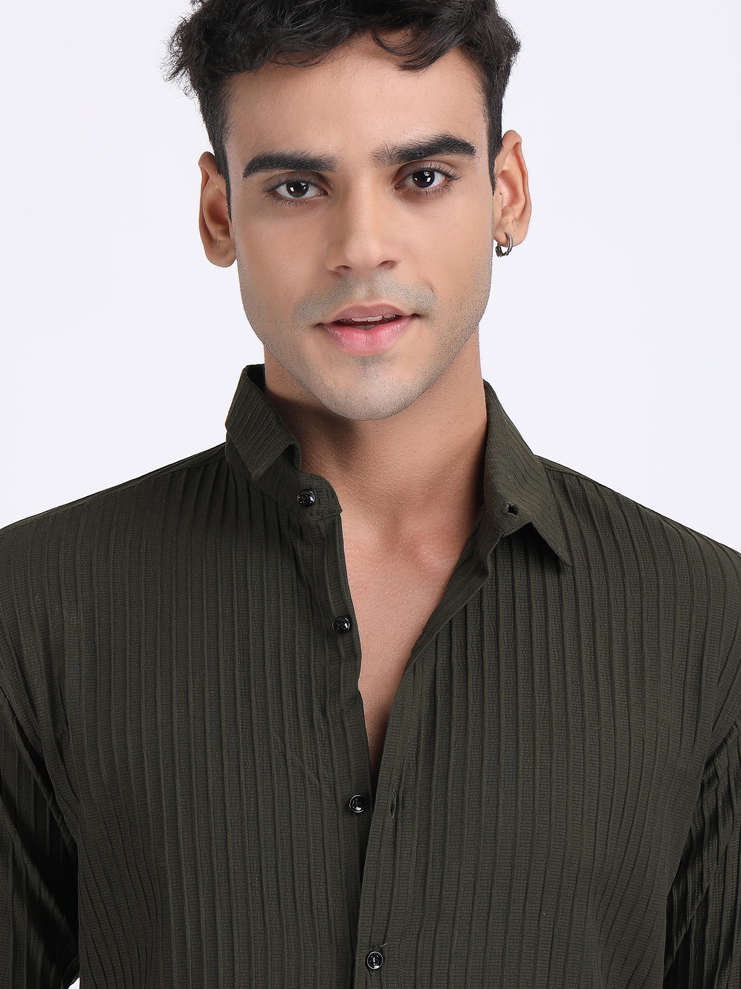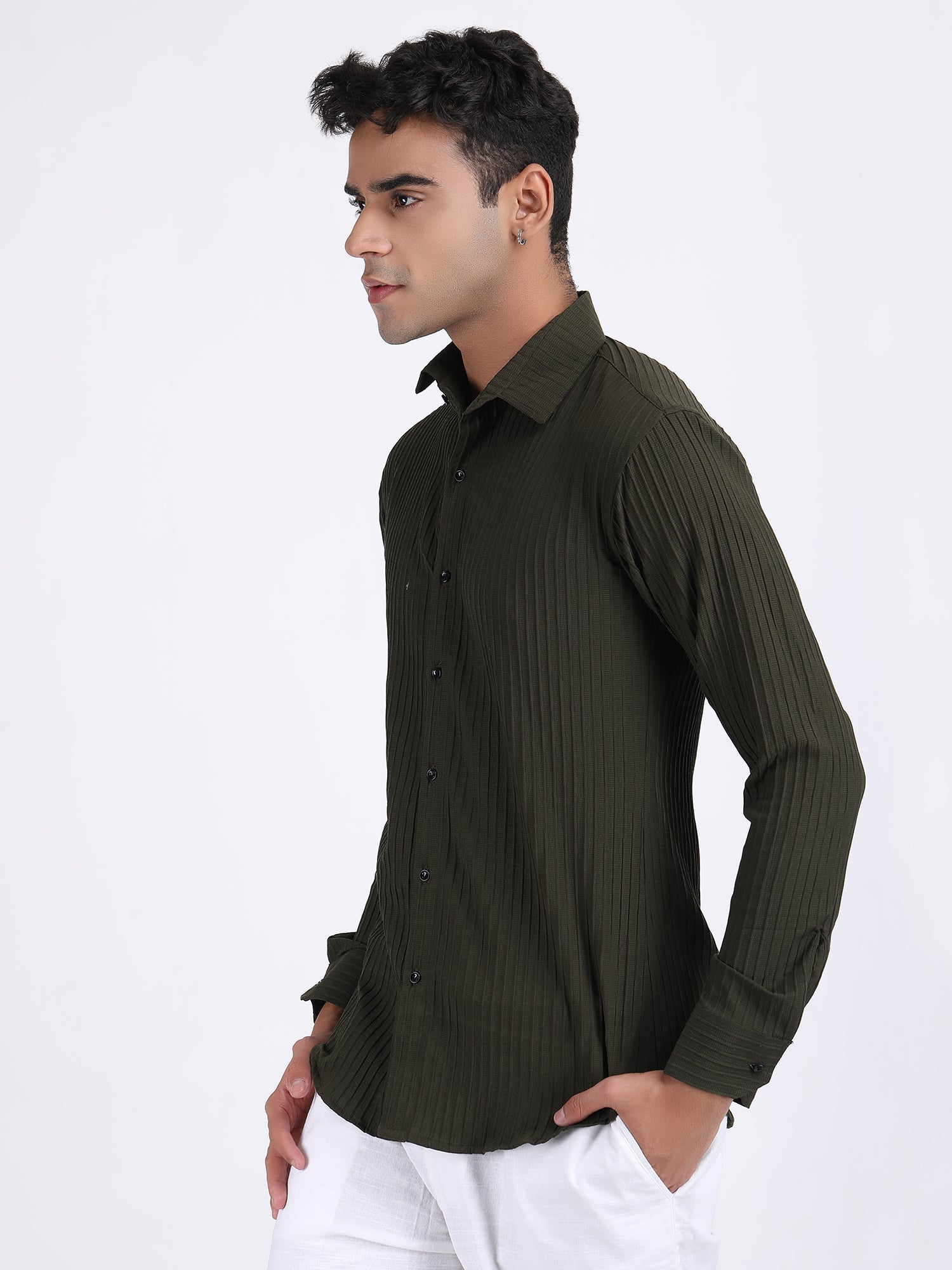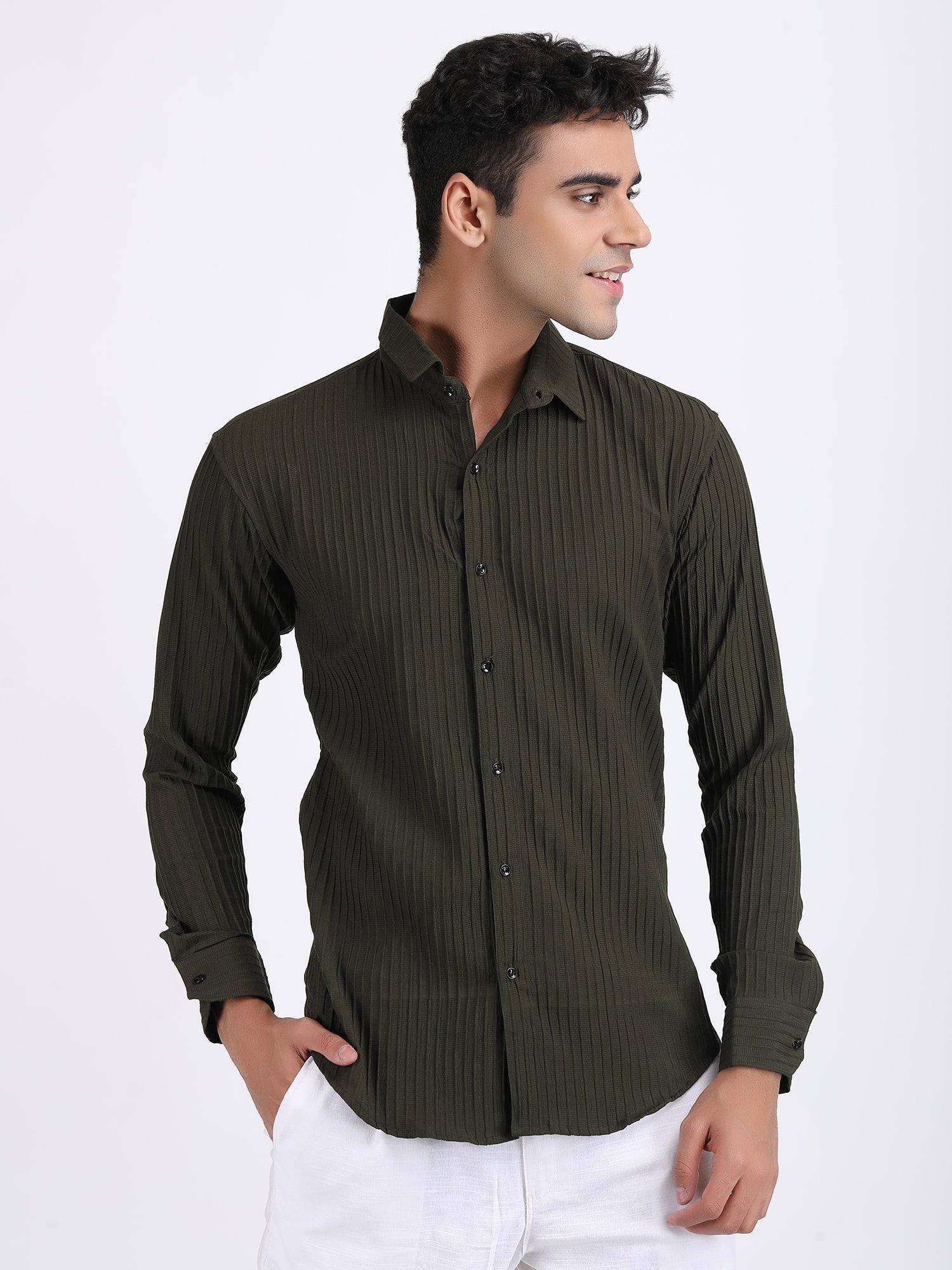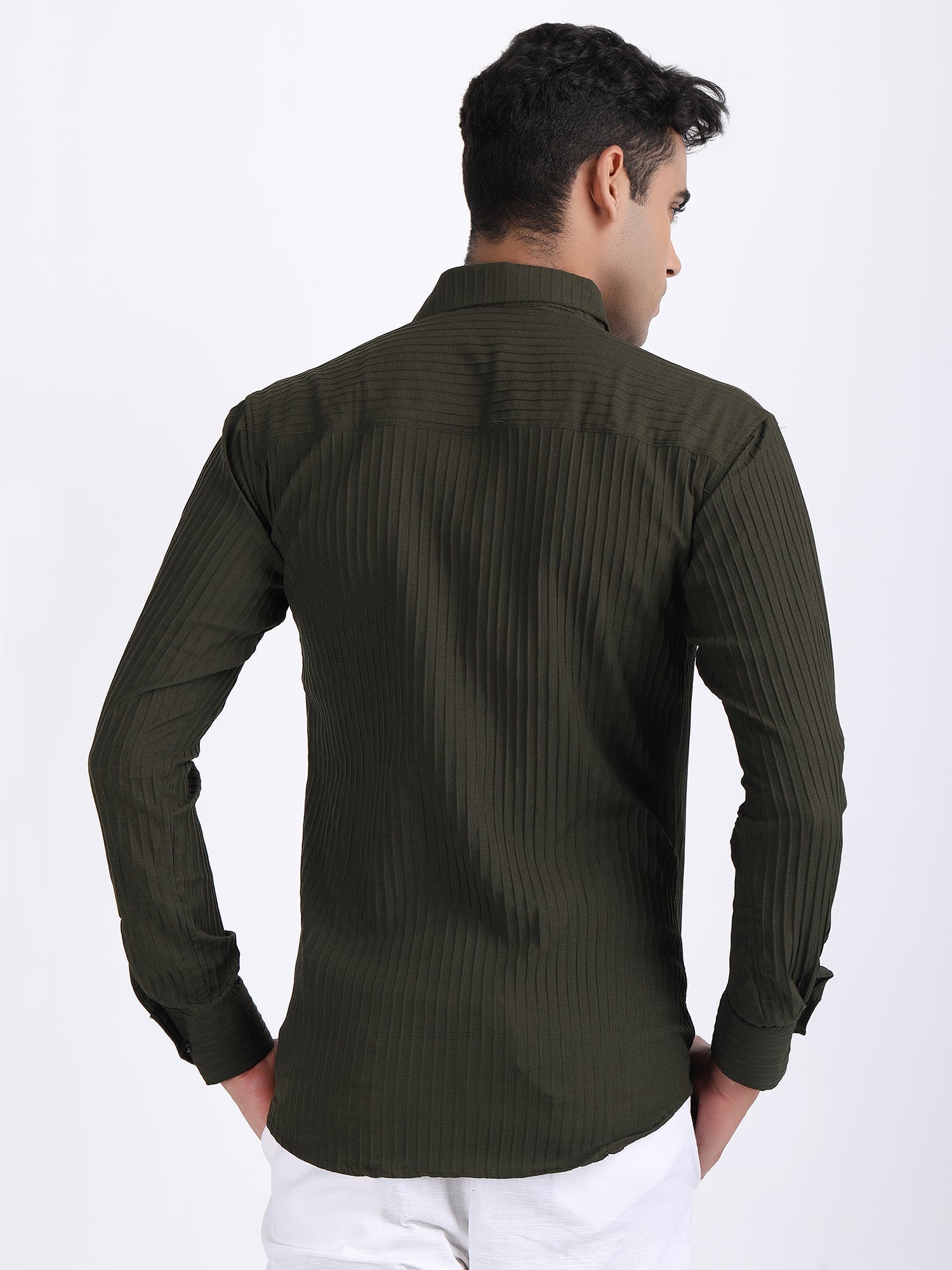 Mehendi Green Popcorn Texture Full Sleeves Shirt