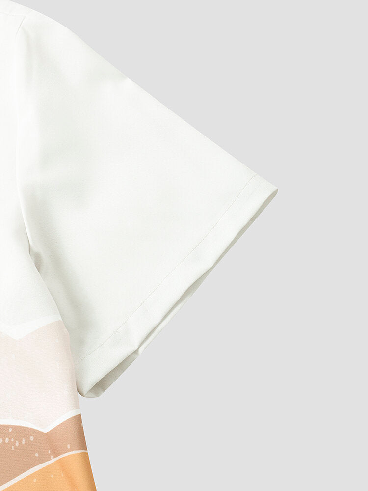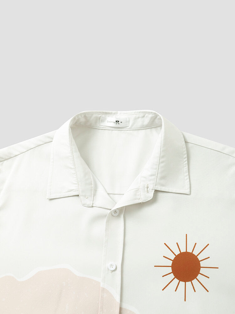 Mens Cactus Desert Scenery Print Holiday Short Sleeve Shirts