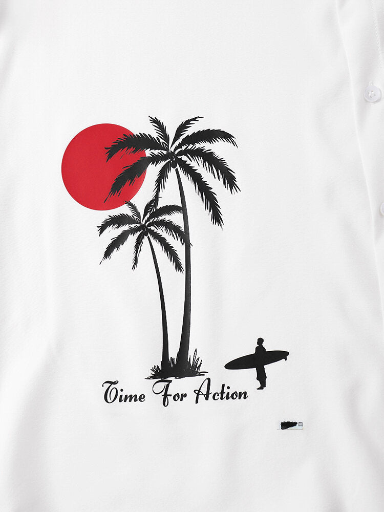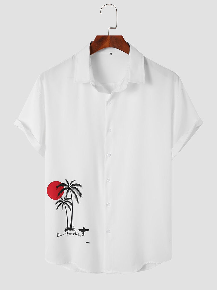 Mens Coconut Tree Figure Print Holiday Short Sleeve Shirts