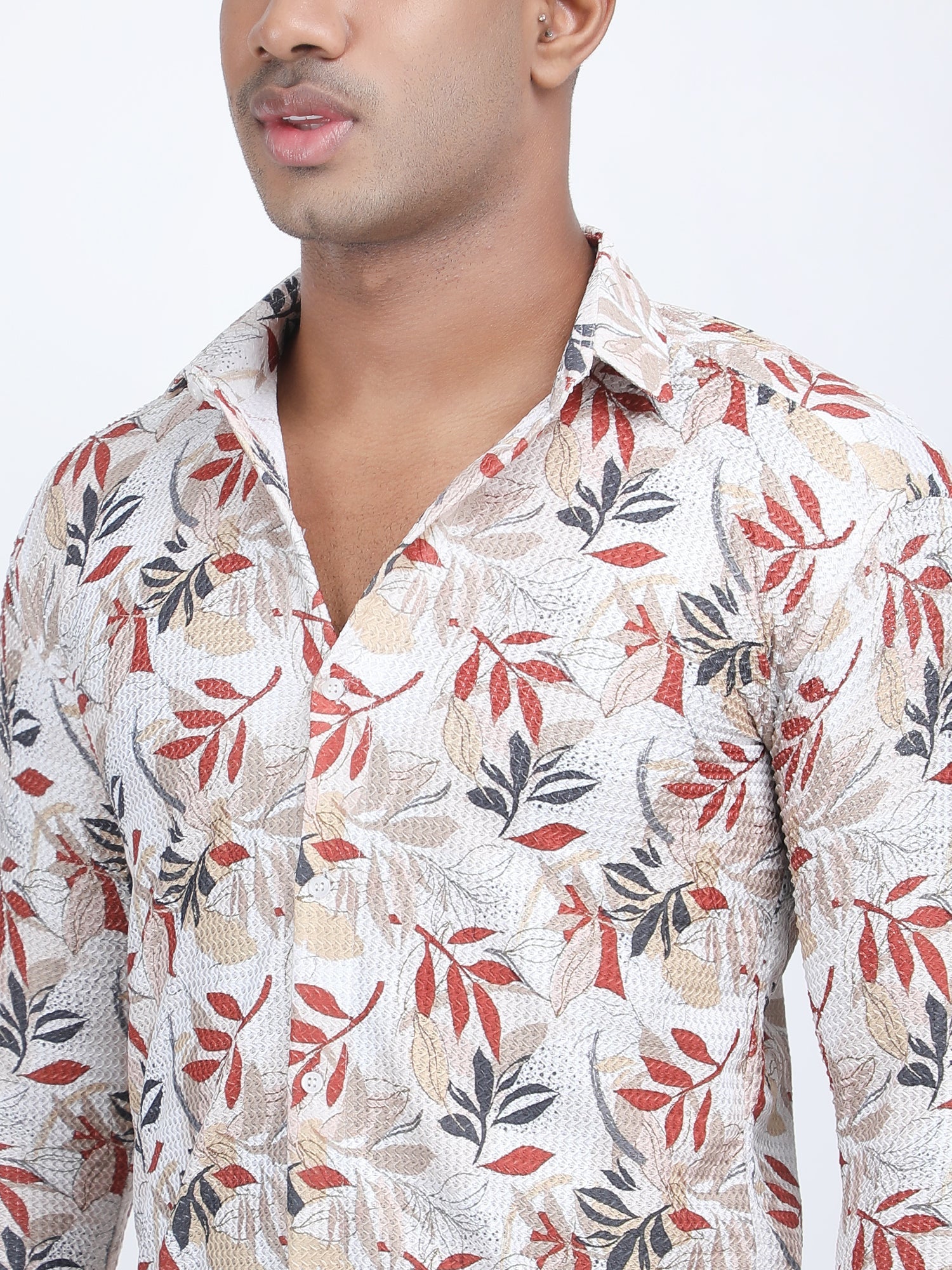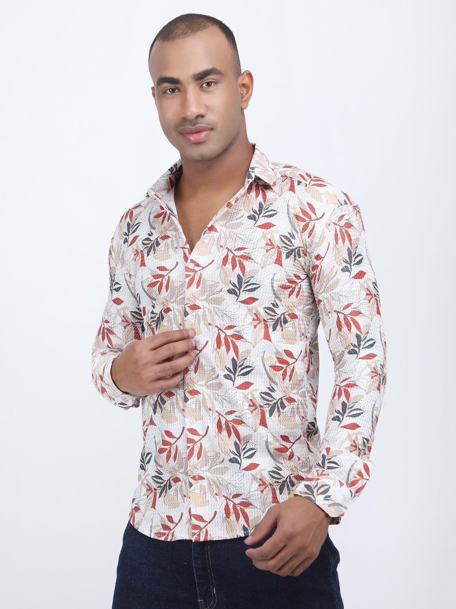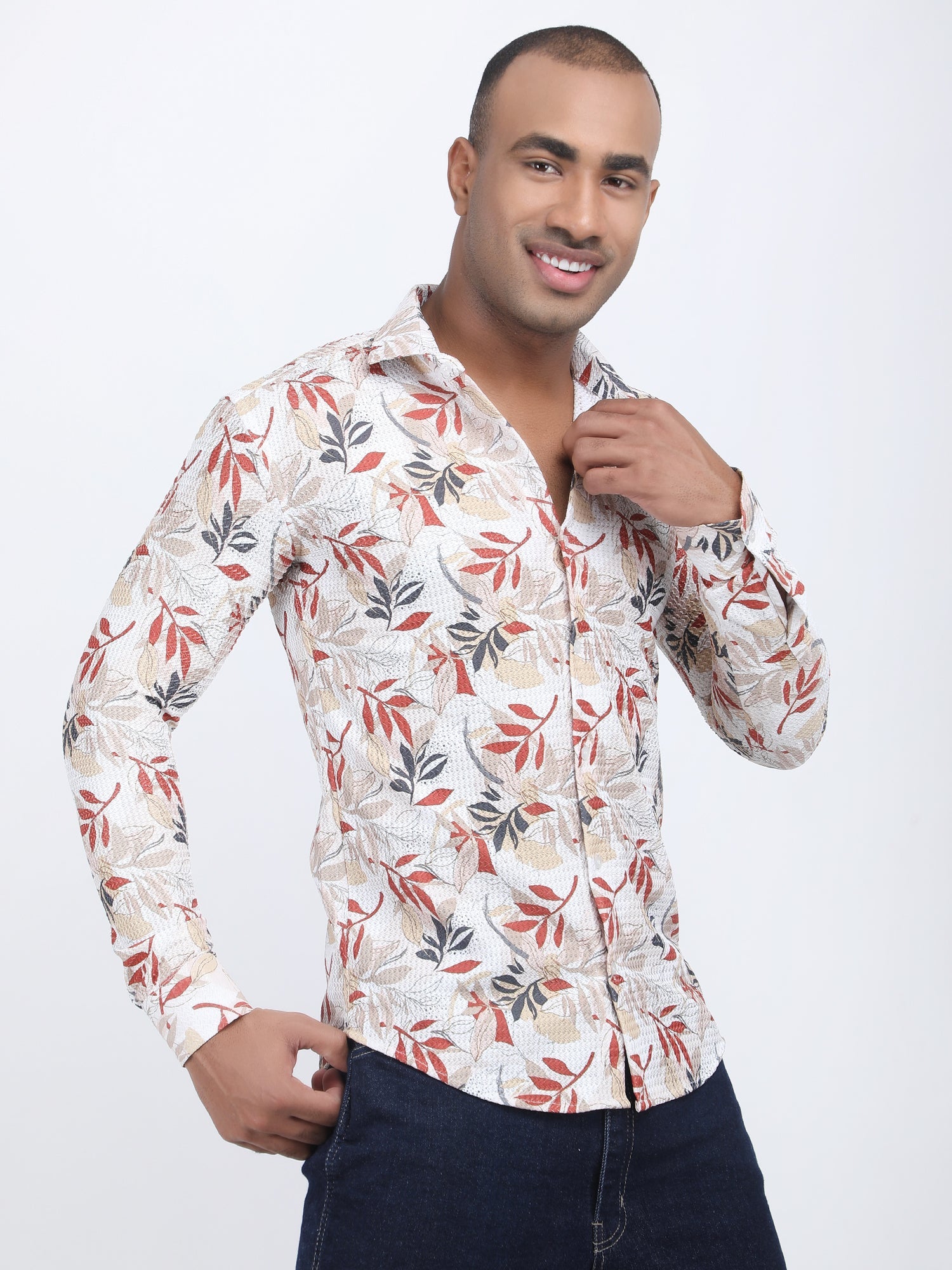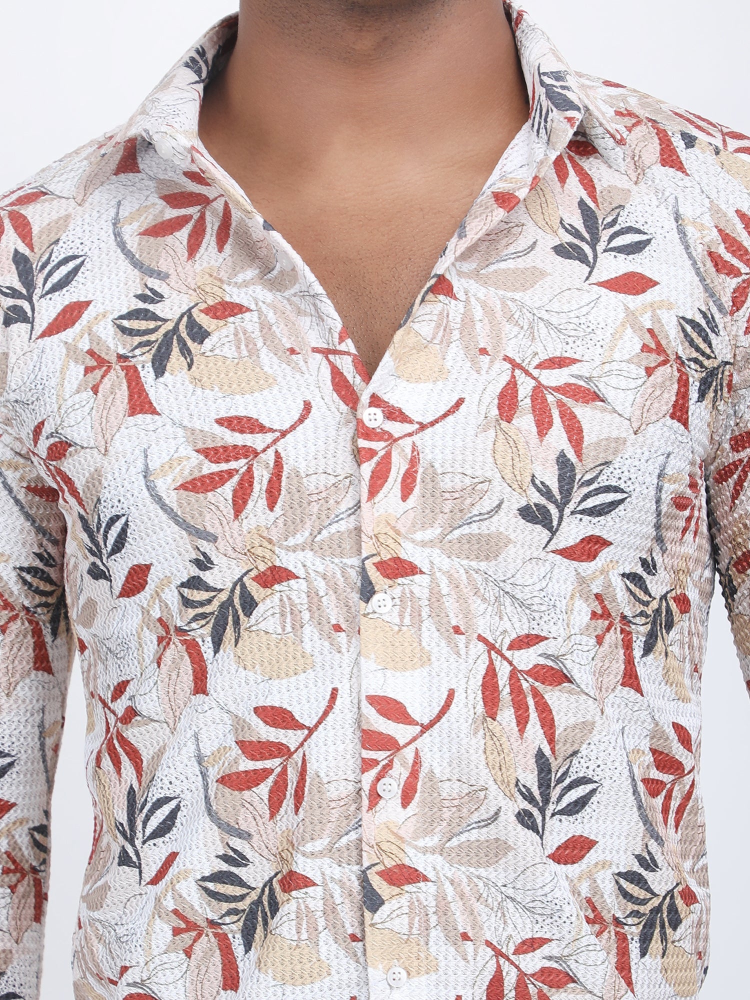 About Product - Channel serene elegance in this White Color Floral print shirt, offering a unique aesthetic twist. Fresh and vibrant, this floral printed Turkish weave shirt brightens any wardrobe. Adorned with delicate floral patterns on a crisp white fabric, it offers a fresh and sophisticated look