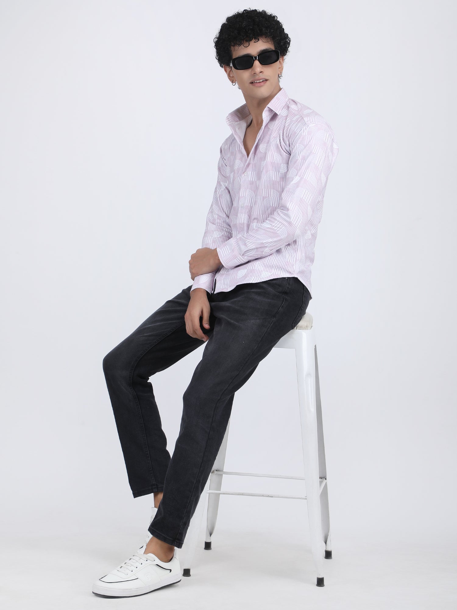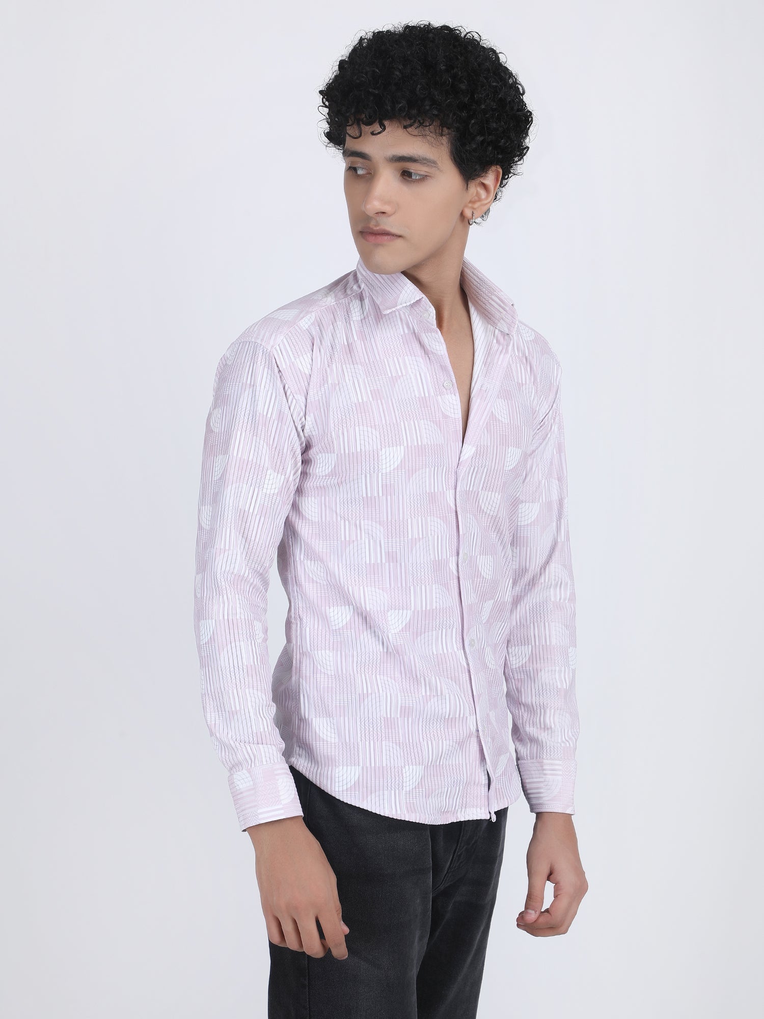 About Product -Channel serene elegance in this Lavender Turkish Weave shirt, offering a unique aesthetic twist. Fresh and vibrant, this printed Turkish weave shirt brightens any wardrobe. Featuring intricate prints on crisp white fabric, it exudes sophistication and versatility, perfect for various occasions and styling options.