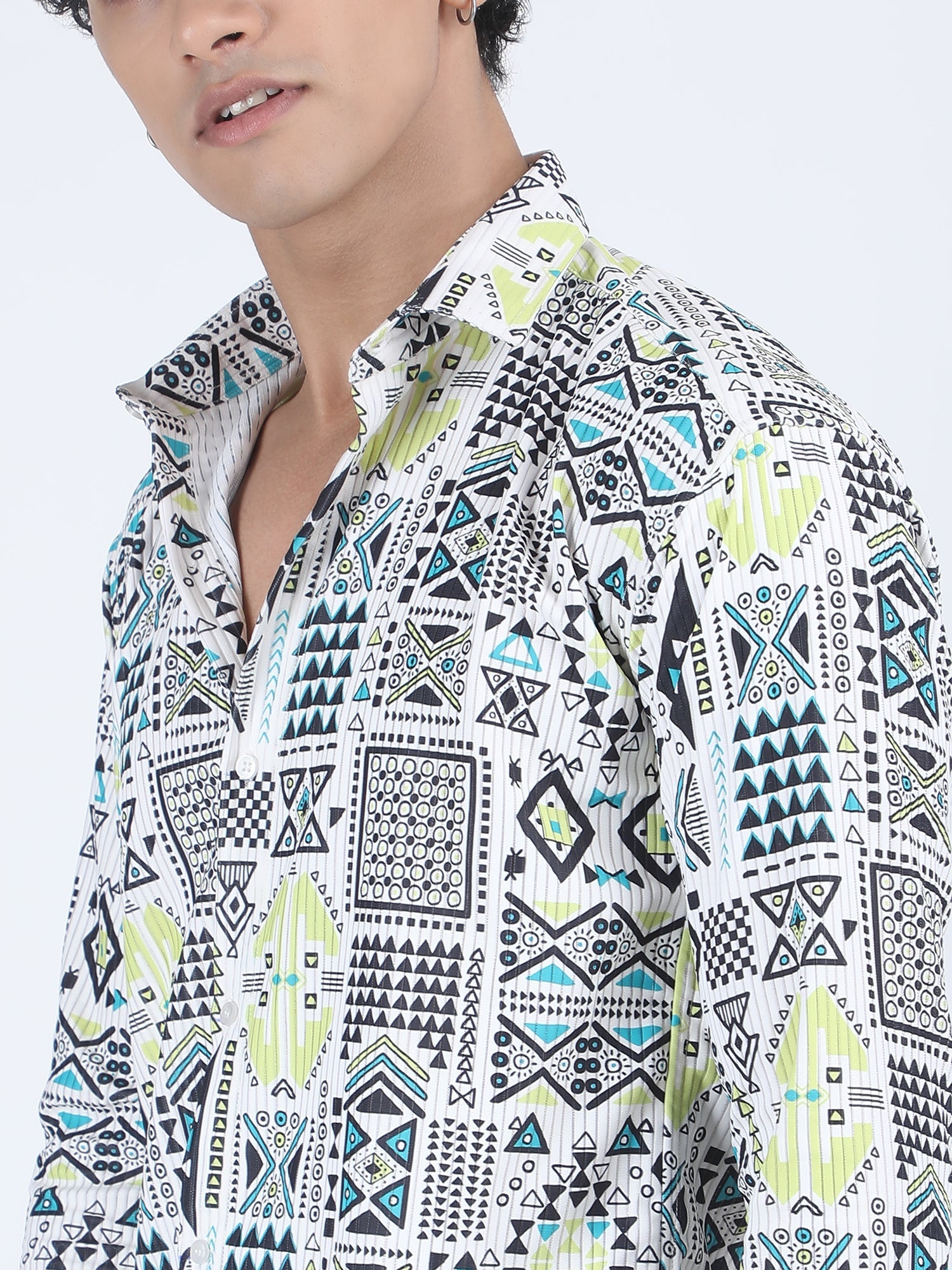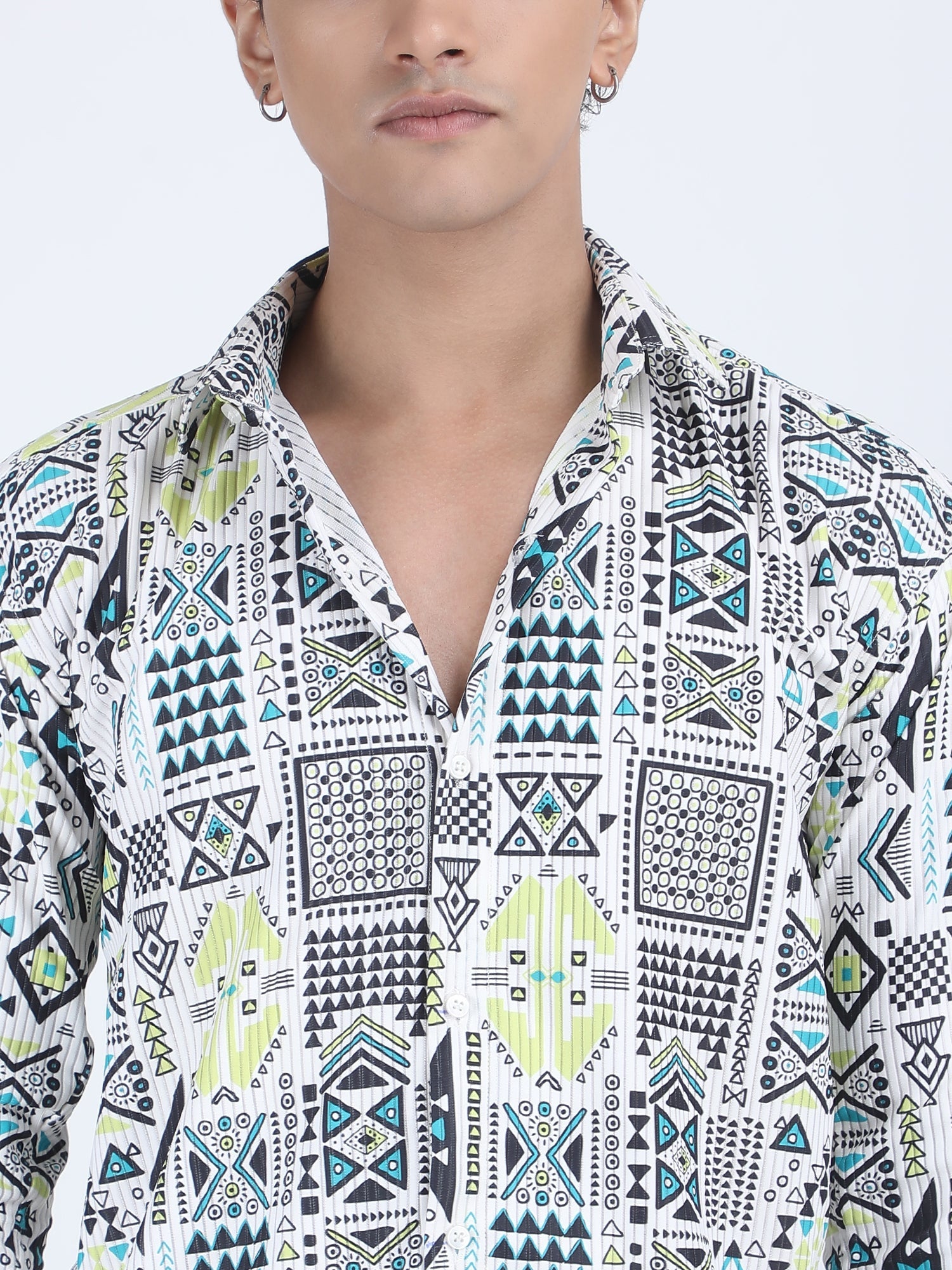 About Product -Channel serene elegance in this White Attractive Design Turkish Weave shirt, offering a unique aesthetic twist. Fresh and vibrant, this printed Turkish weave shirt brightens any wardrobe. Featuring intricate prints on crisp white fabric, it exudes sophistication and versatility, perfect for various occasions and styling options.