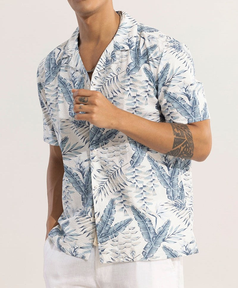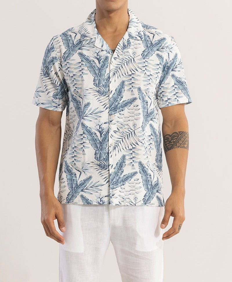 Give a majestic lift to your look with this blue printed pattern shirt. The shirt is crafted from fine 100% cotton. It is a versatile staple and great for teaming with jeans for a more casual look or smartening up with a classic pair of chinos..