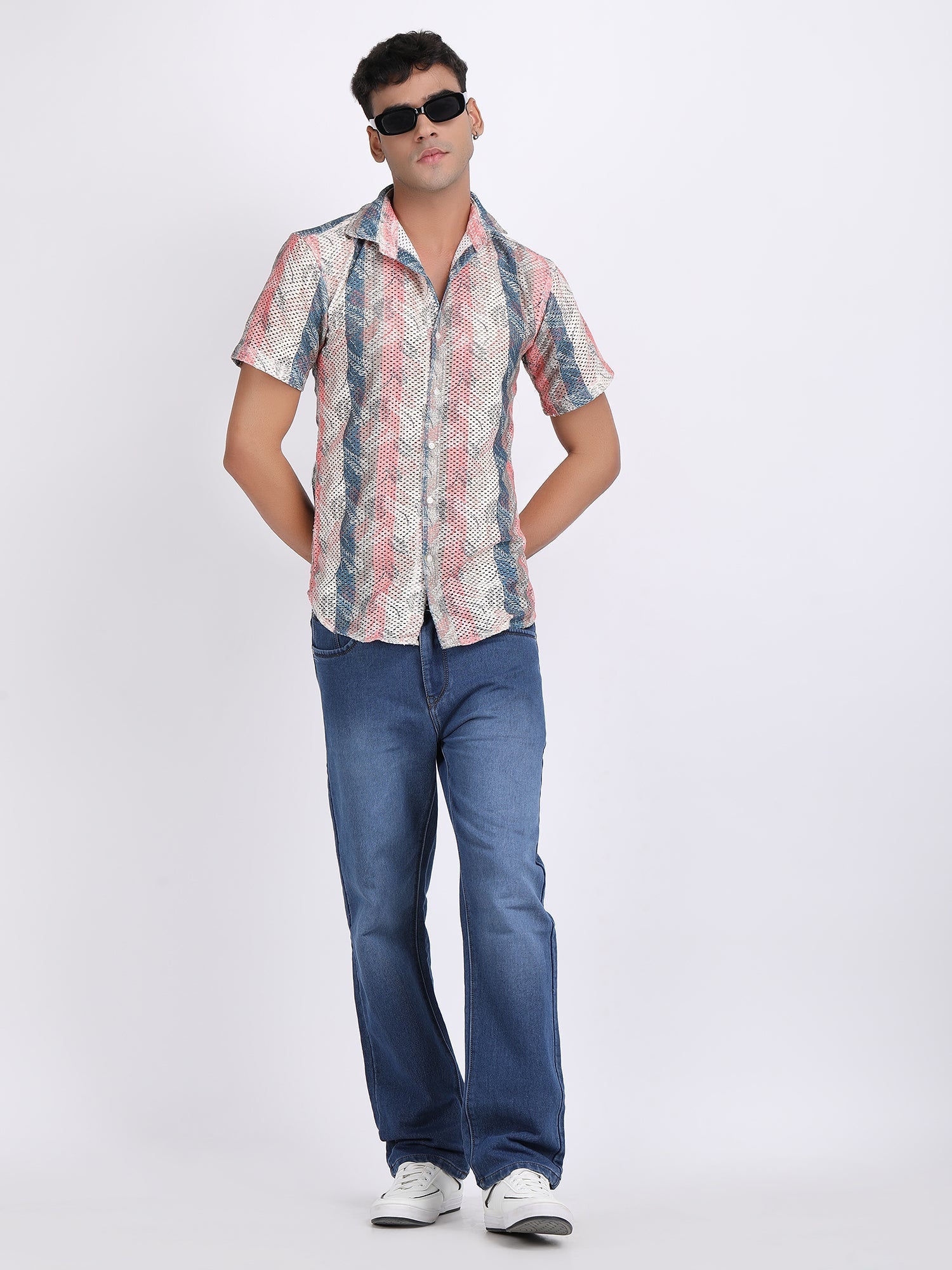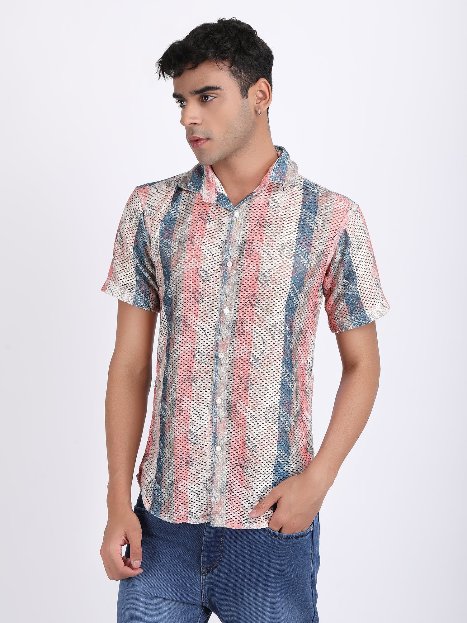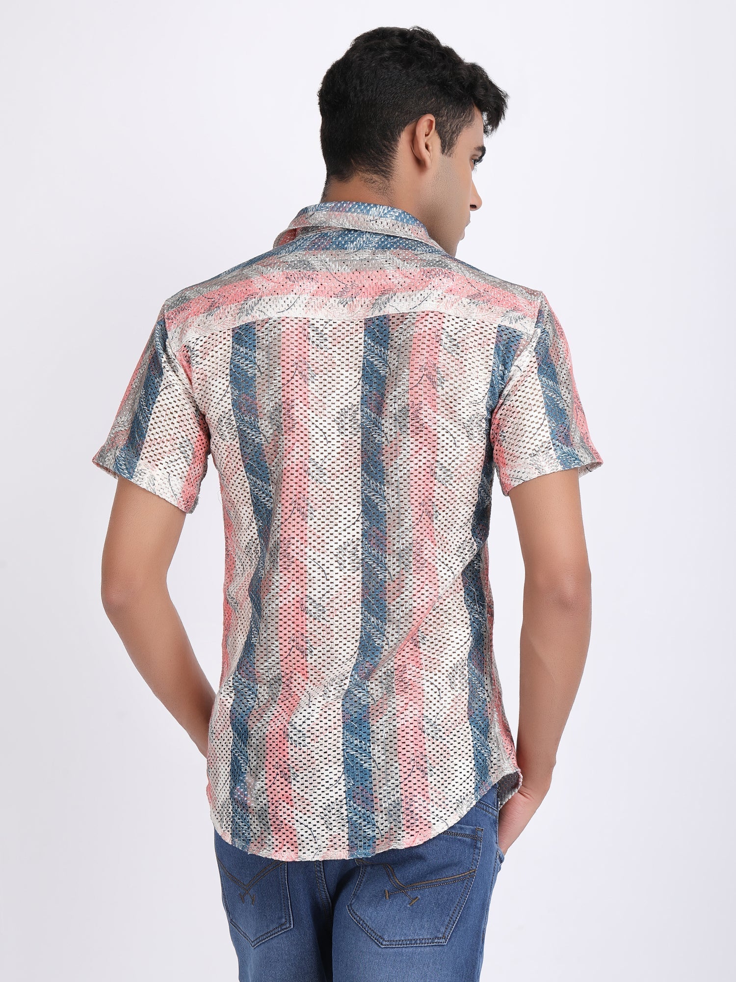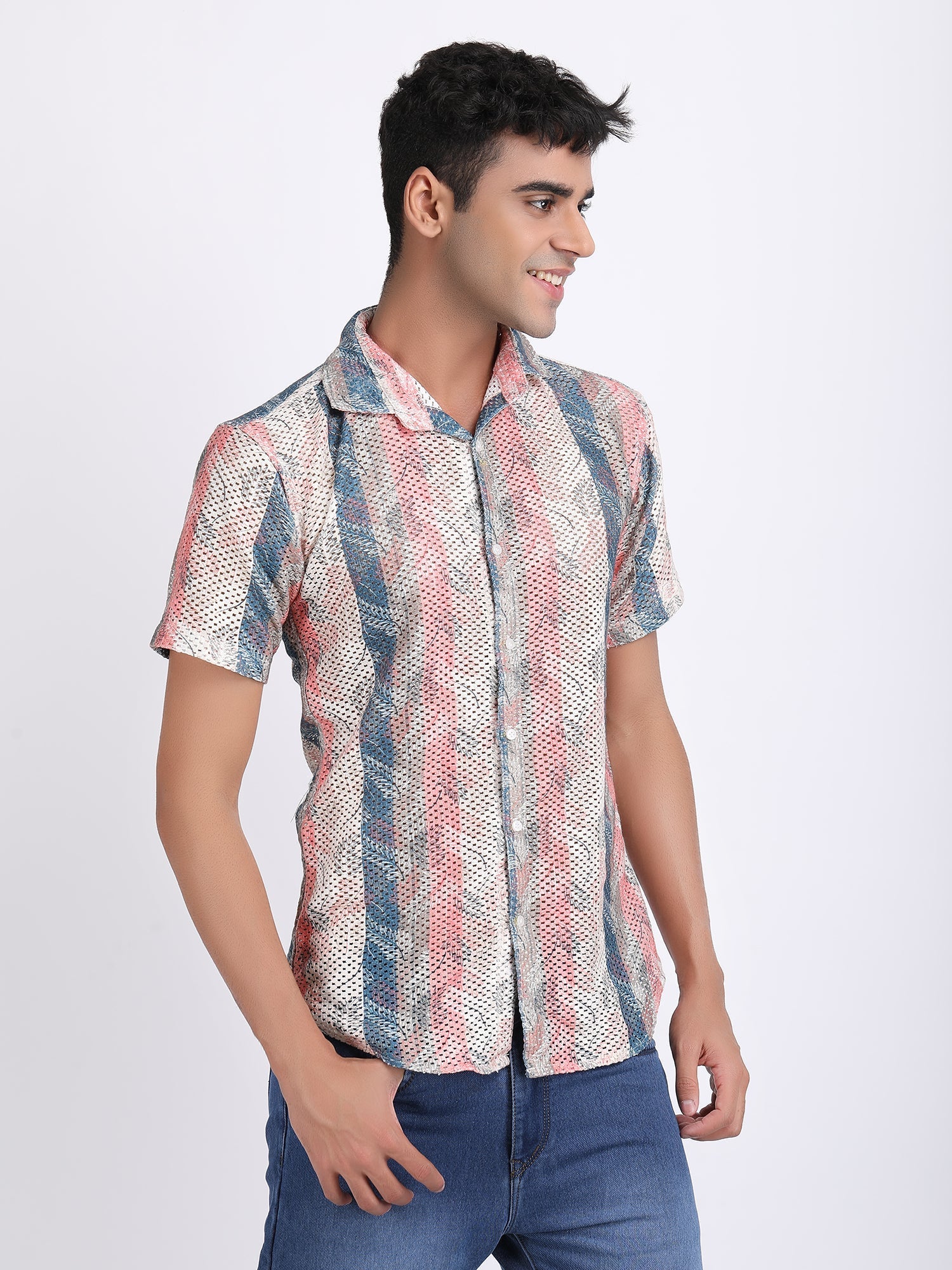 This Dual Fusion Rose Pink Crochet Shirt Features A Unique Self Design That Adds A Touch Of Elegance To Your Wardrobe. The Box Fit Style Offers A Comfortable And Flattering Fit, Perfect For Any Party Or Special Occasion. Upgrade Your Look With This Sophisticated And Fashionable Shirt.