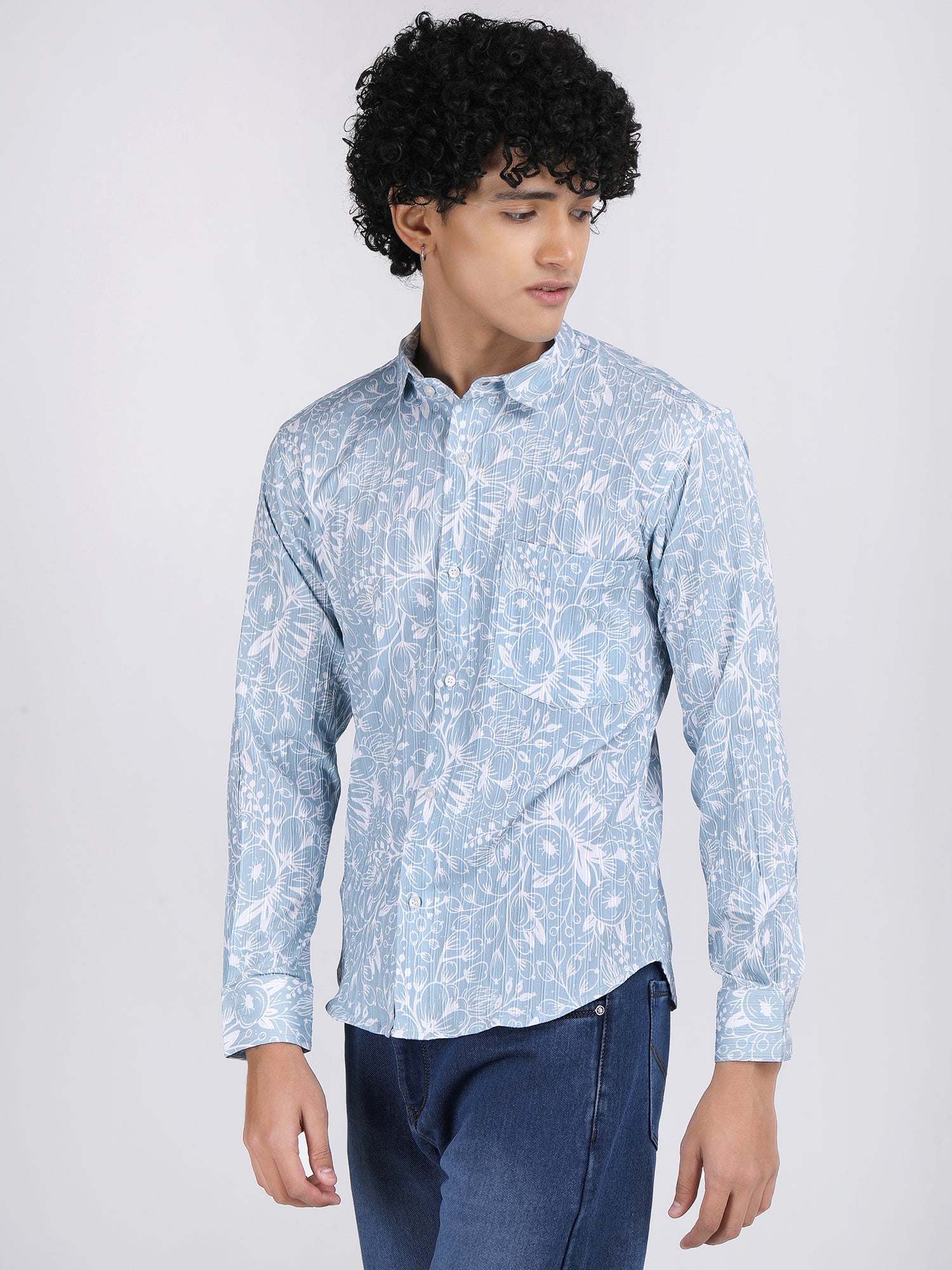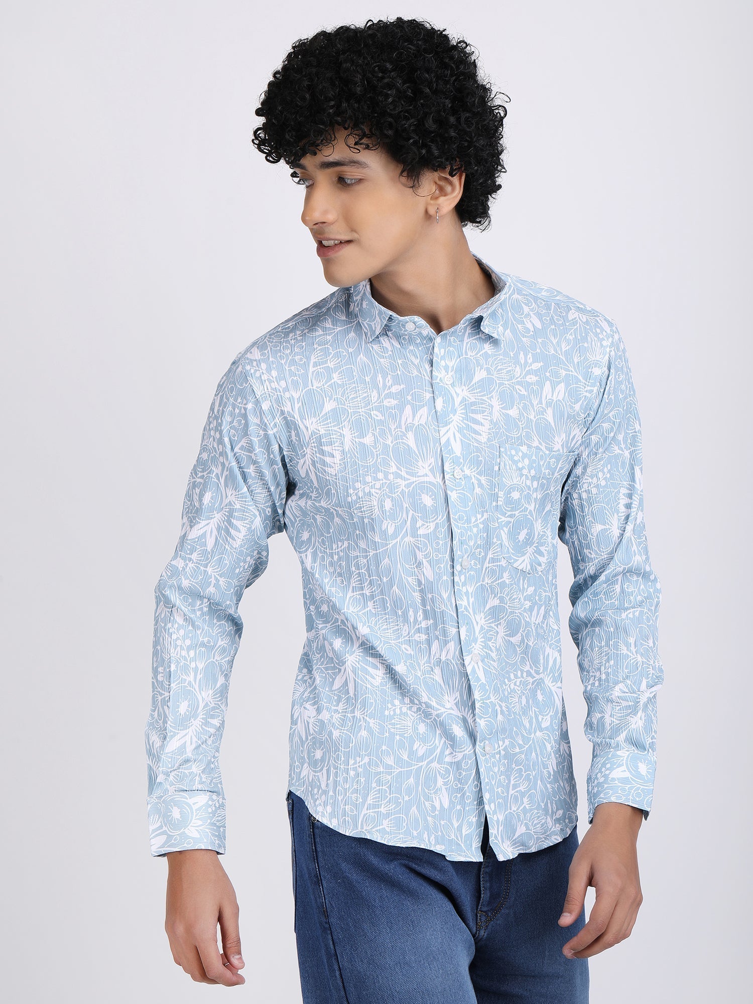 Introducing The Aeromesh Sky Blue Shirt, A Must-have For Your Summer Wardrobe. With Full Sleeves And A Textured Fabric, This Shirt Offers Both Comfort And Style. The Curve Hem Adds A Touch Of Sophistication. Perfect For Any Summer Occasion.