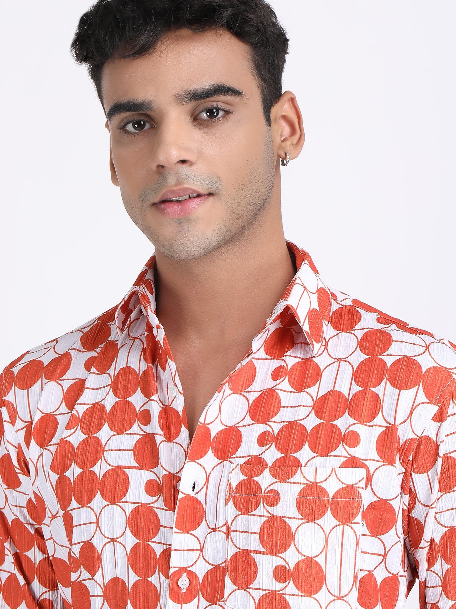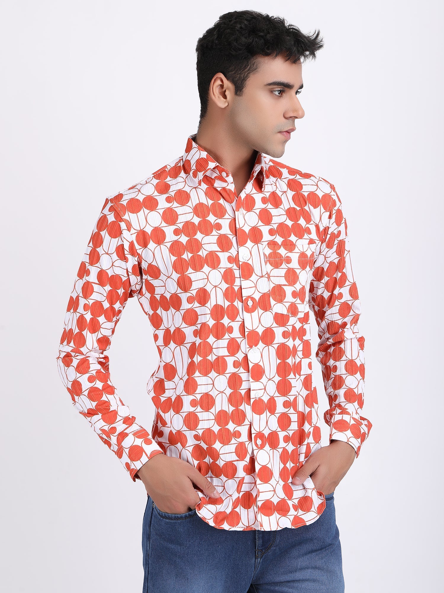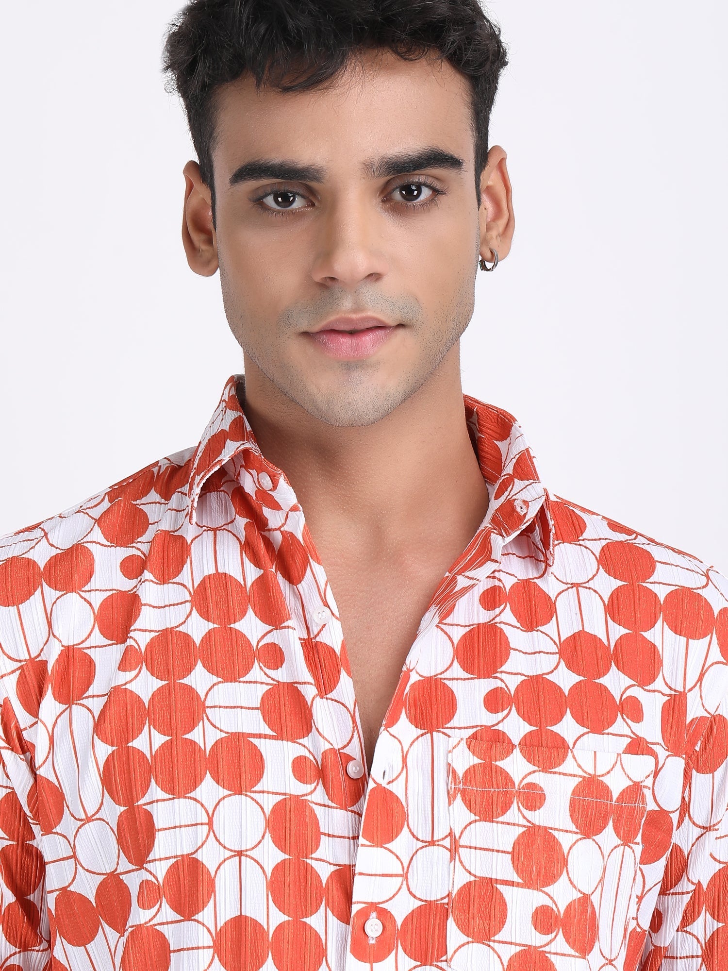 Introducing The Aeromesh White with Orange Shirt, A Must-have For Your Summer Wardrobe. With Full Sleeves And A Textured Fabric, This Shirt Offers Both Comfort And Style. The Curve Hem Adds A Touch Of Sophistication. Perfect For Any Summer Occasion.