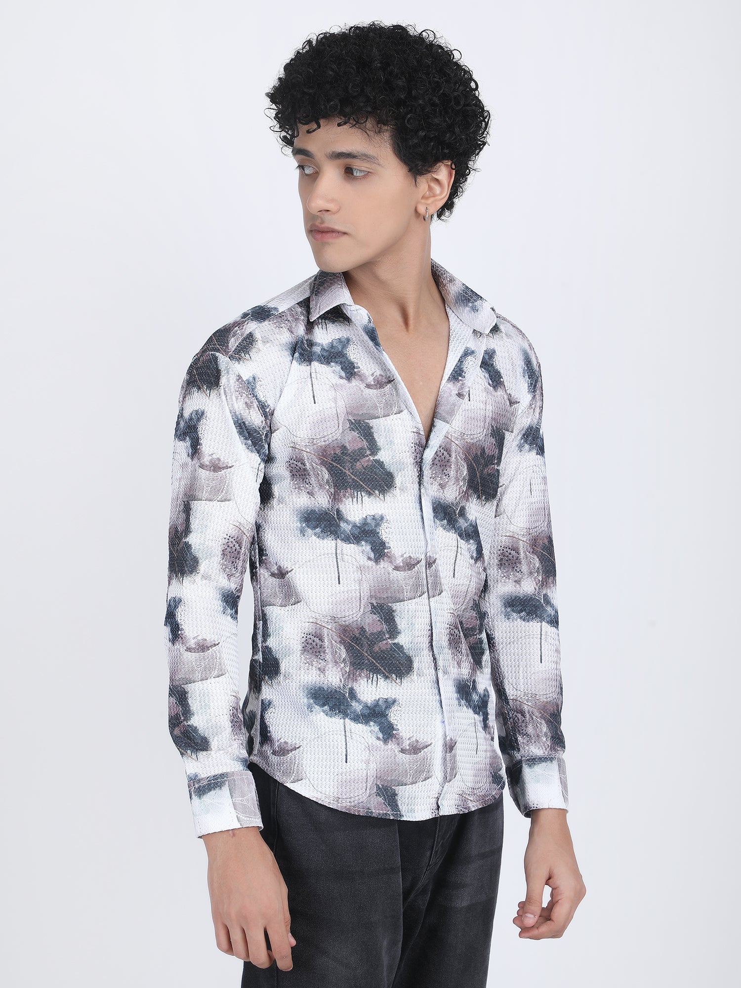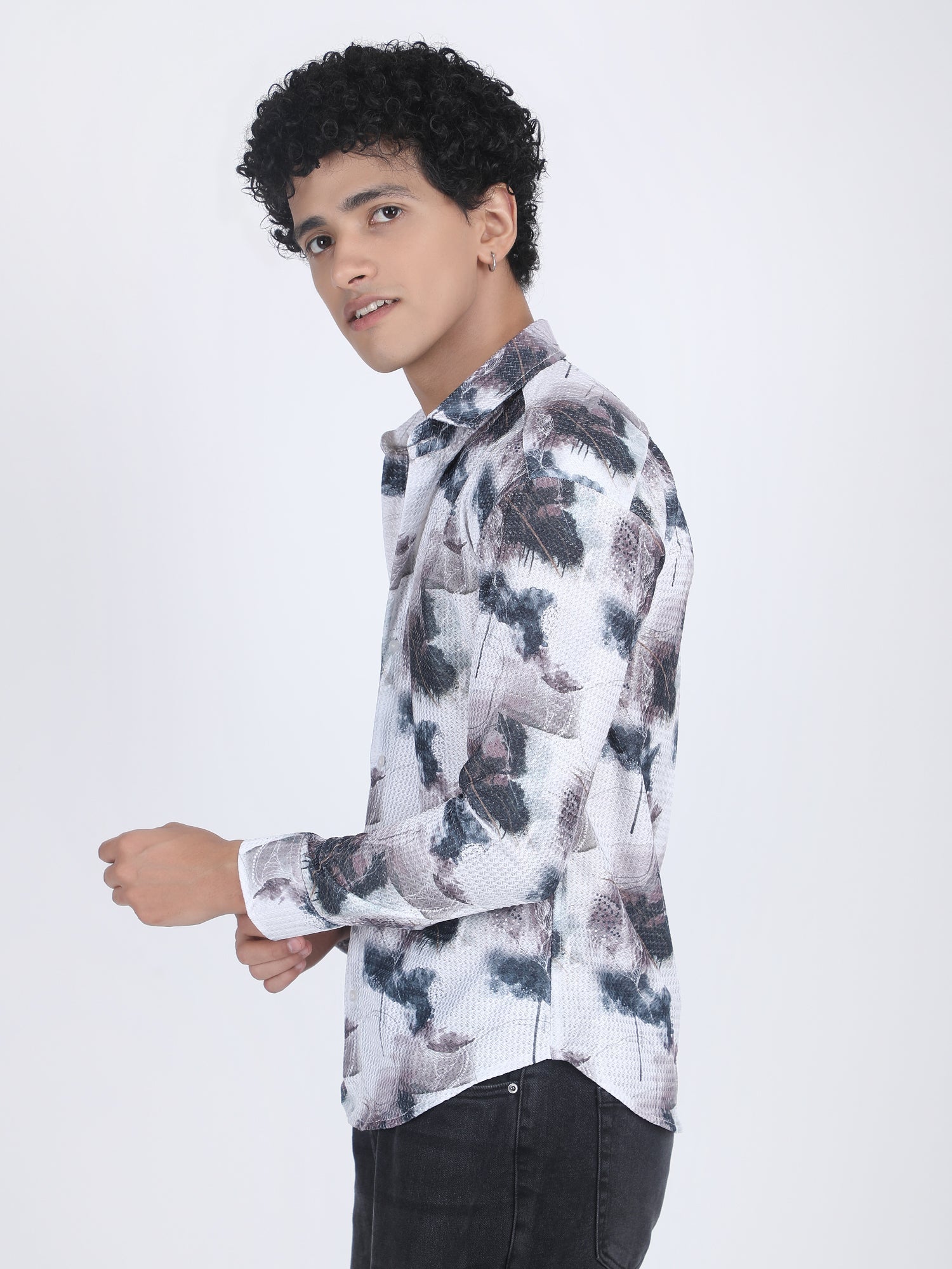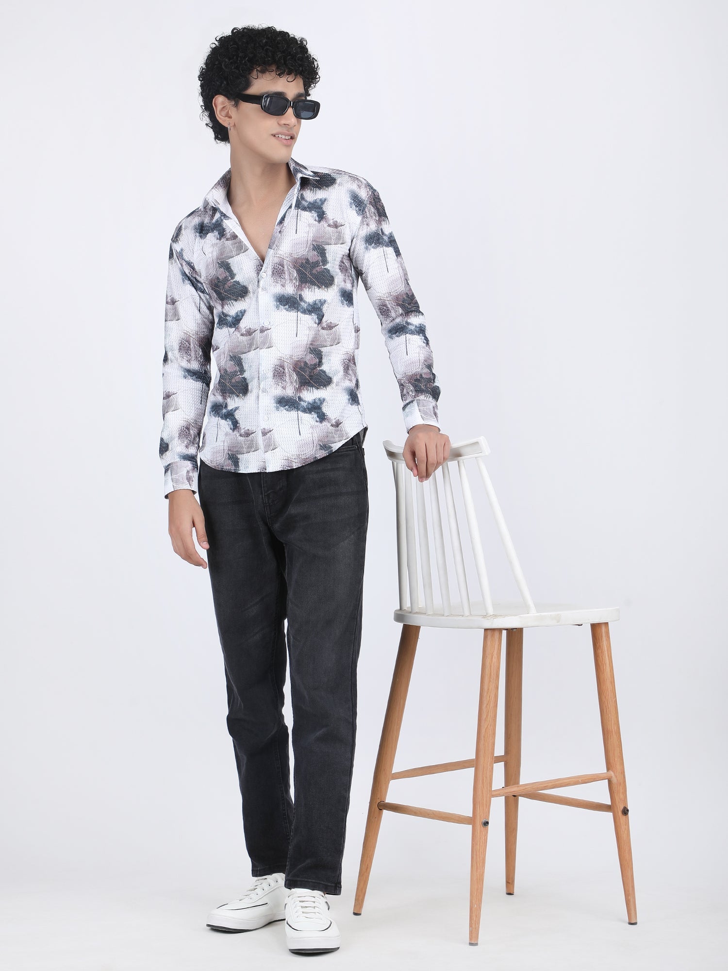About Product -Channel serene elegance in this White Grey Printed Turkish Weave shirt, offering a unique aesthetic twist. Fresh and vibrant, this printed Turkish weave shirt brightens any wardrobe. Featuring intricate prints on crisp white fabric, it exudes sophistication and versatility, perfect for various occasions and styling options.