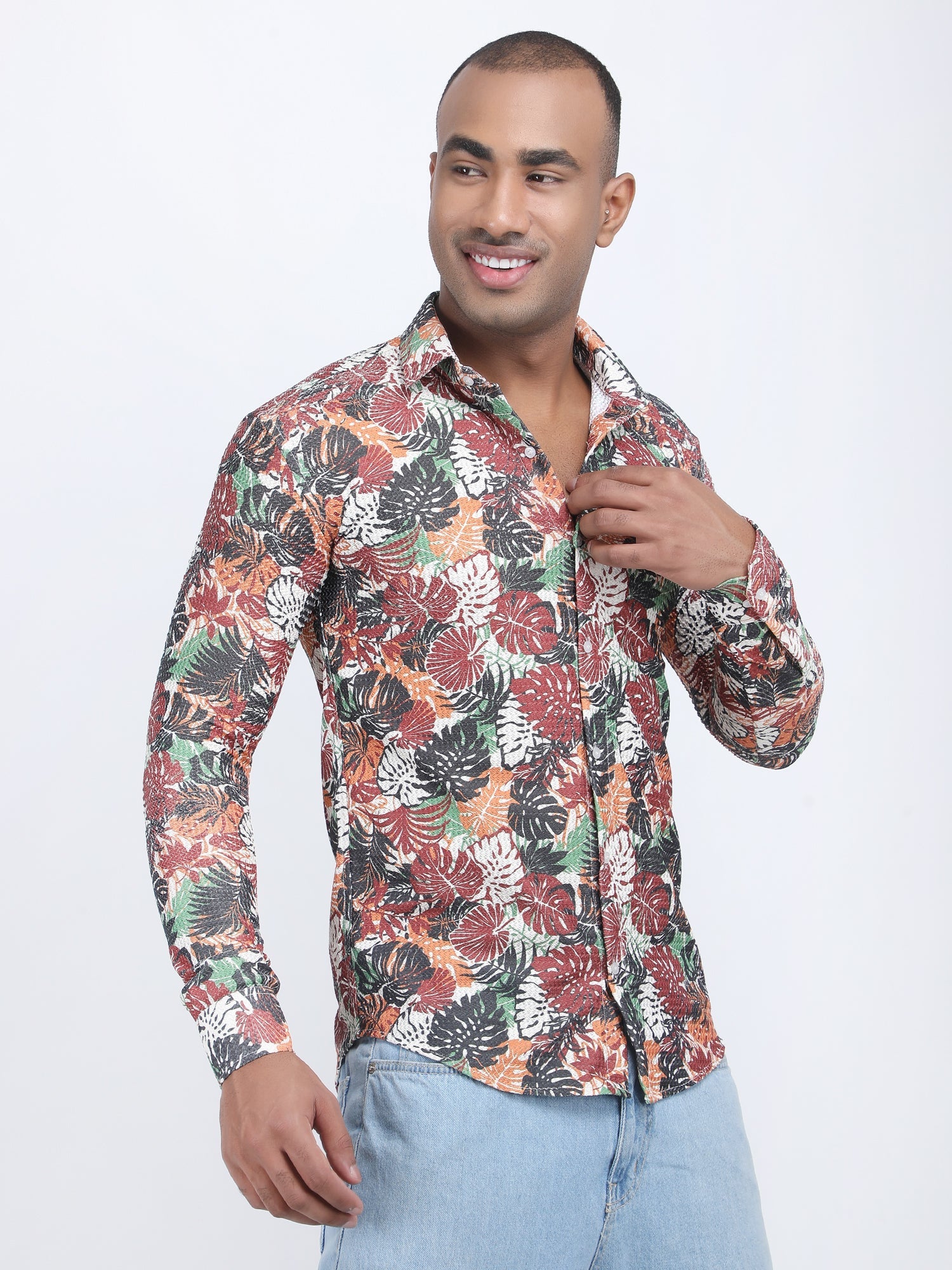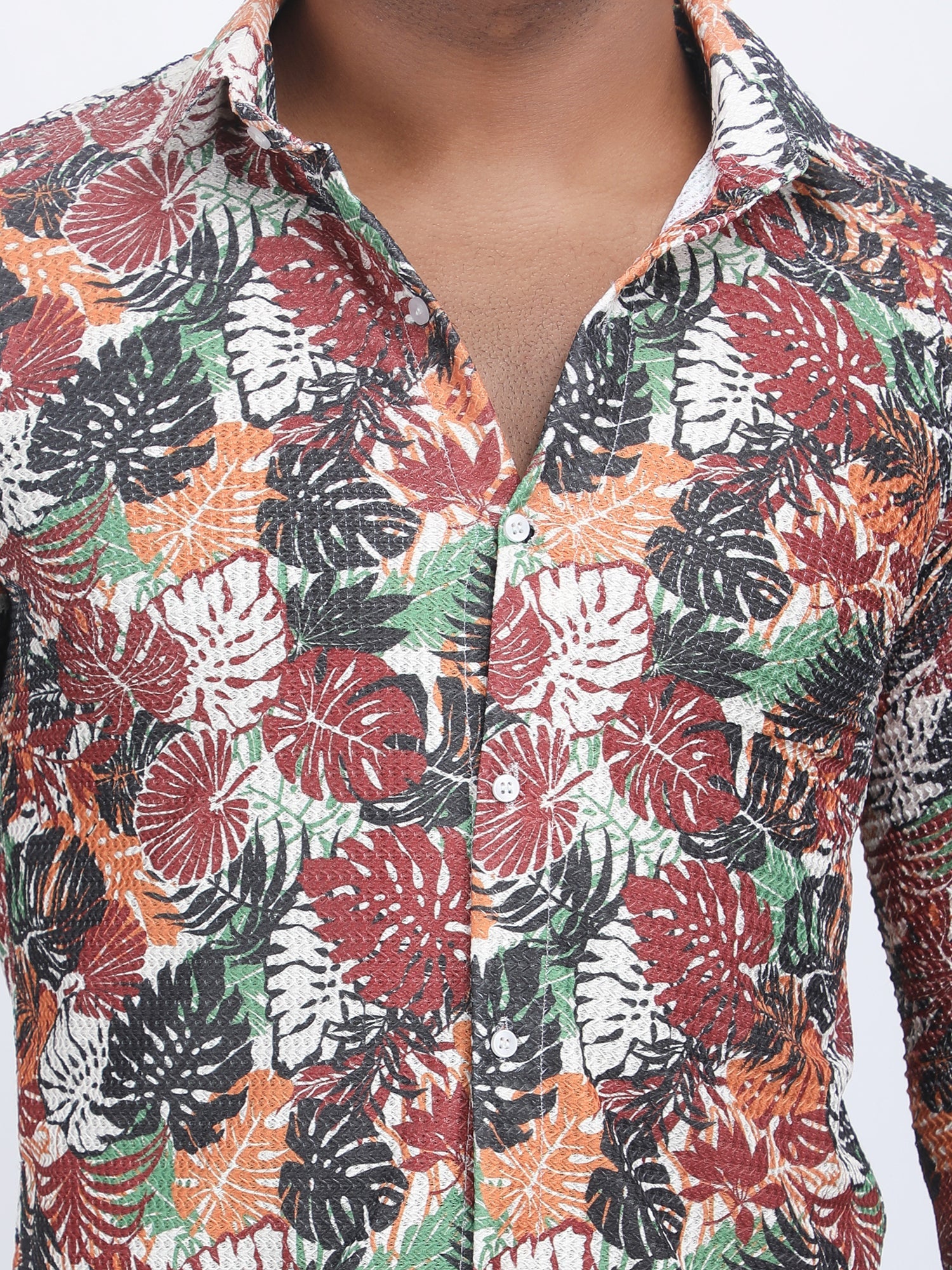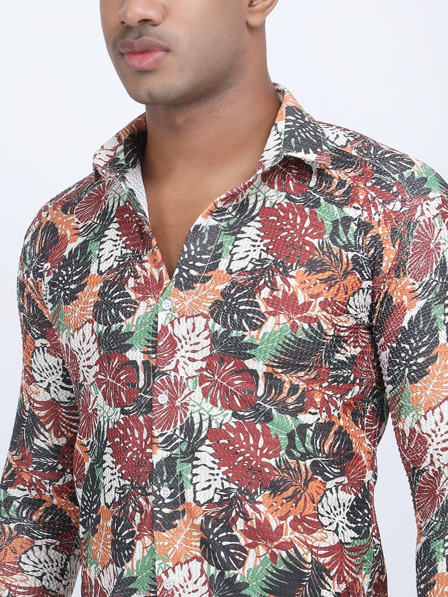 About Product - Channel serene elegance in this Multi Color Floral print shirt, offering a unique aesthetic twist. Fresh and vibrant, this floral printed Turkish weave shirt brightens any wardrobe. Adorned with delicate floral patterns on a crisp white fabric, it offers a fresh and sophisticated look