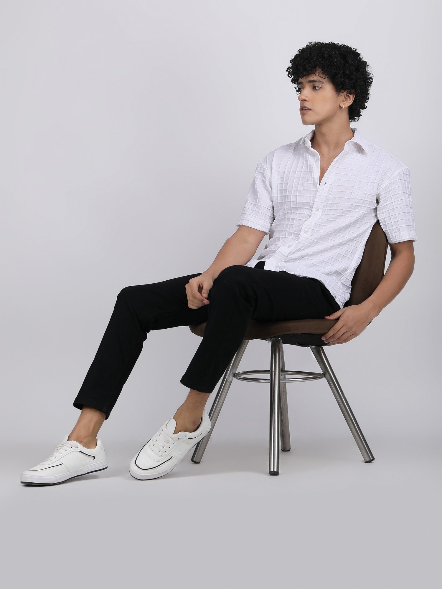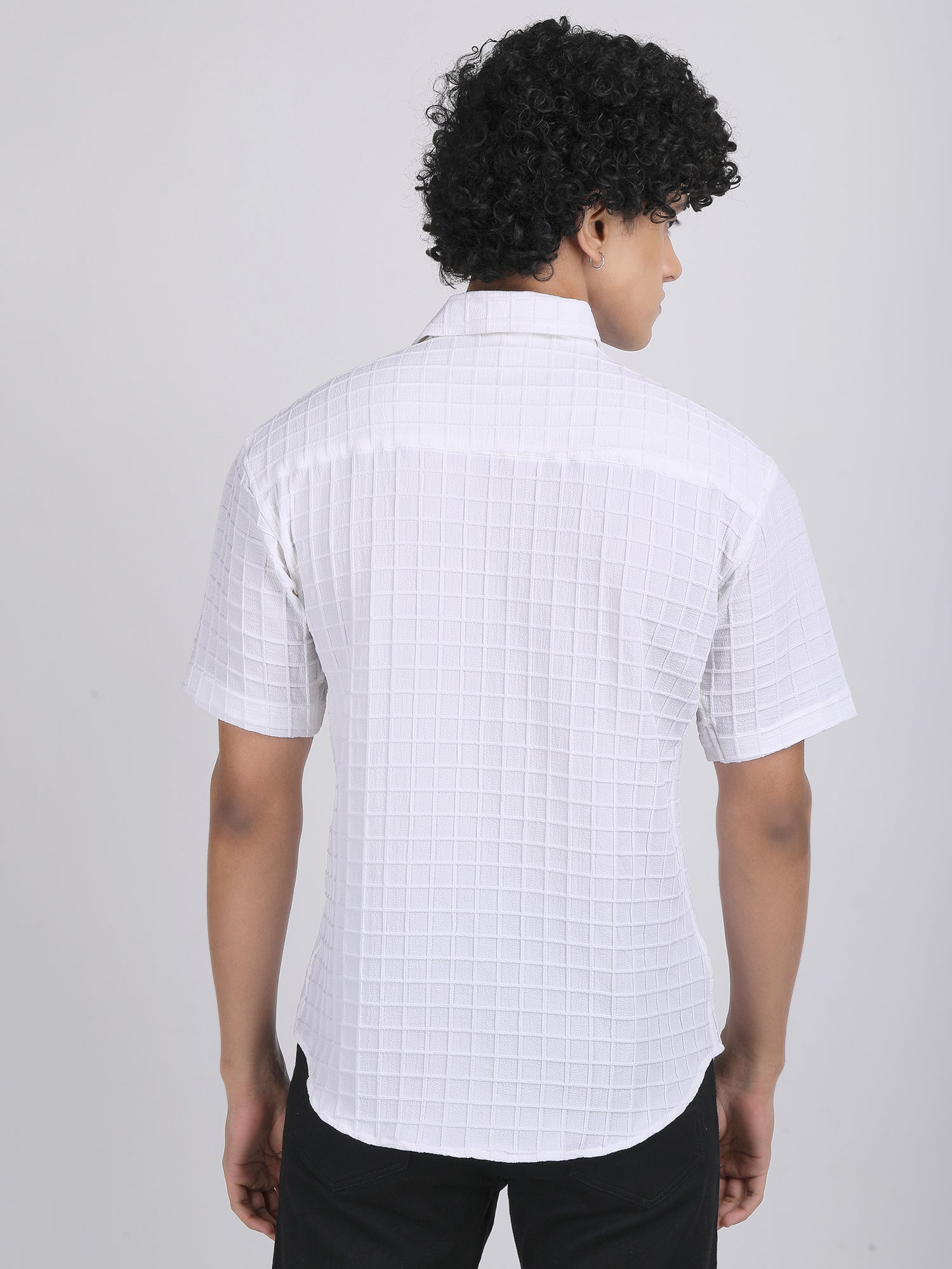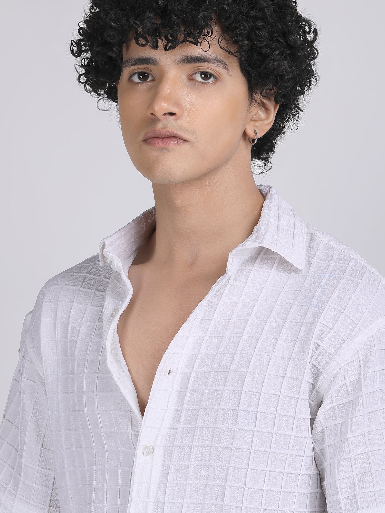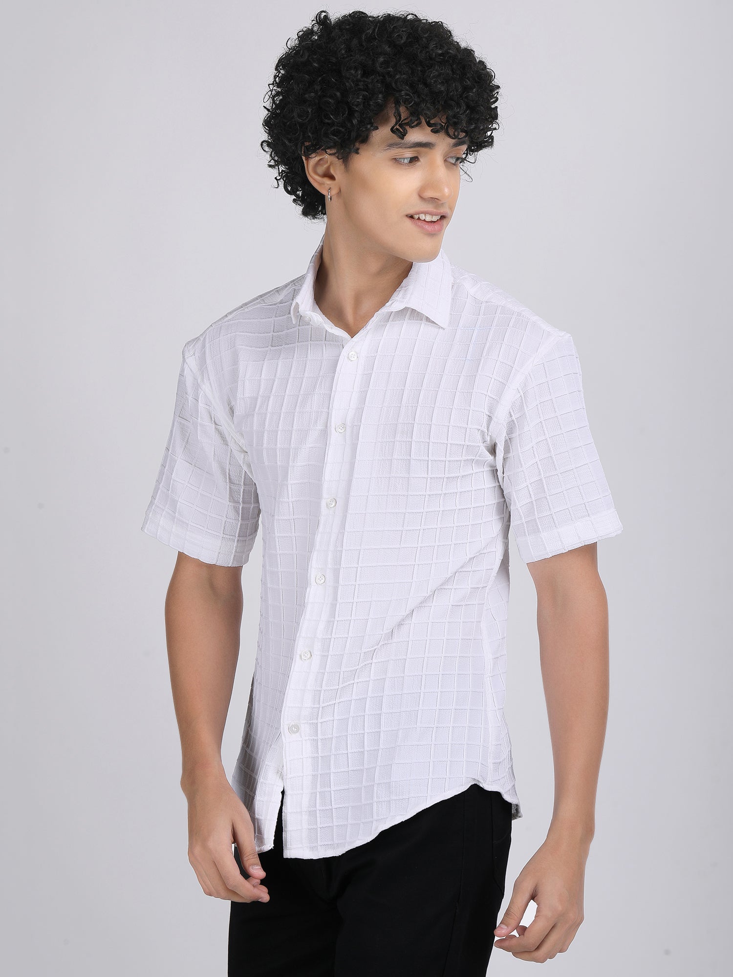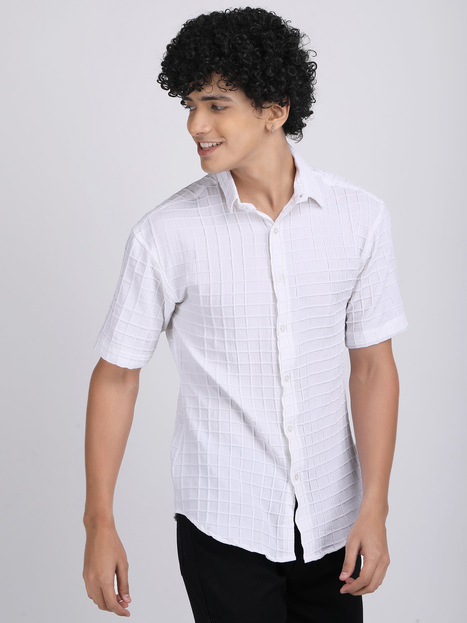 Introducing The Aeromesh White Shirt, A Must-have For Your Summer Wardrobe. With Half Sleeves And A Textured Fabric, This Shirt Offers Both Comfort And Style. The Curve Hem Adds A Touch Of Sophistication. Perfect For Any Summer Occasion.