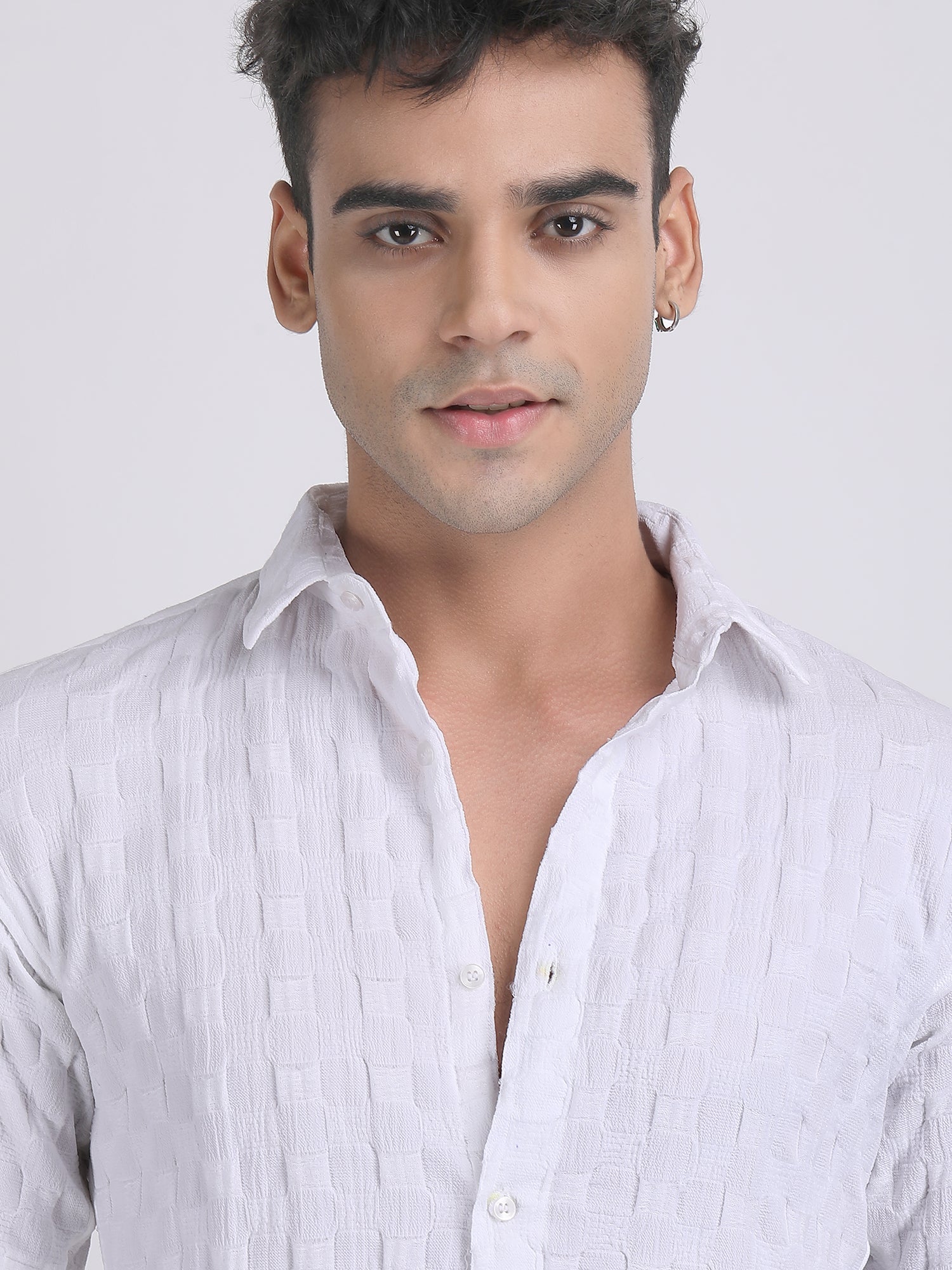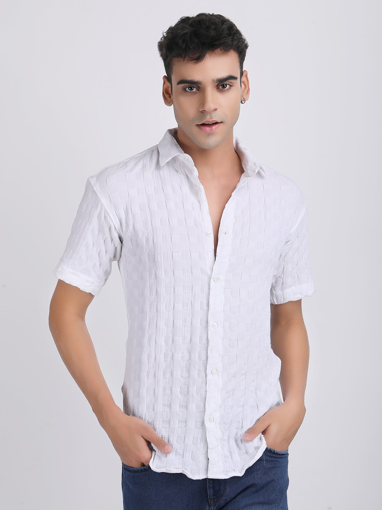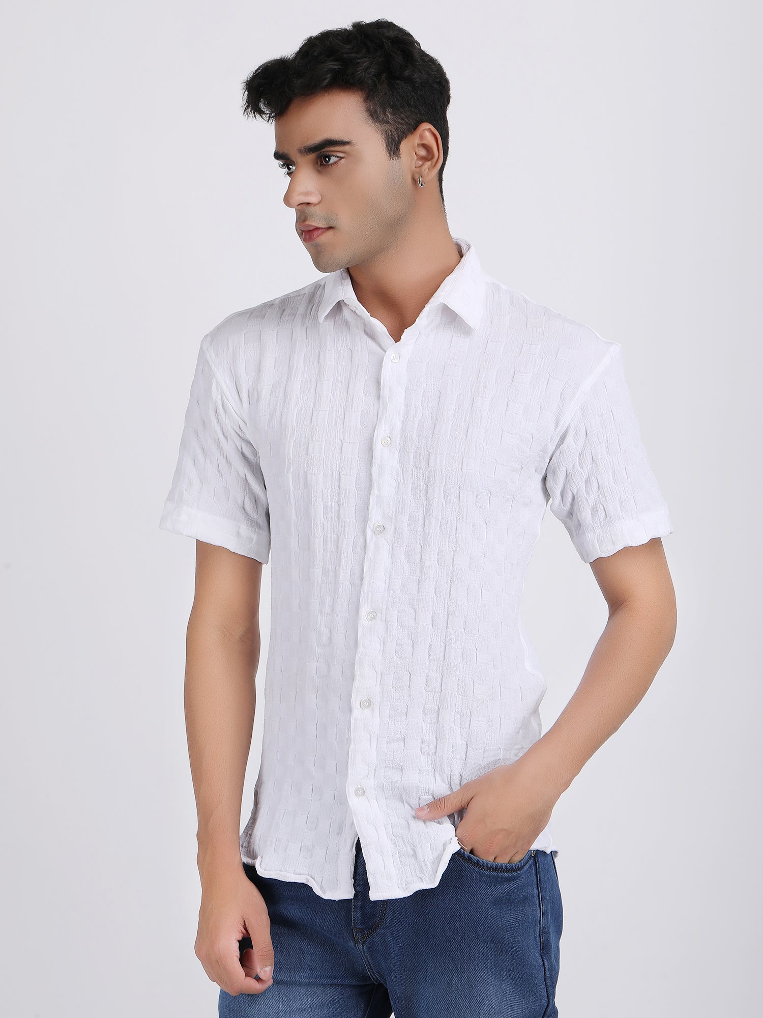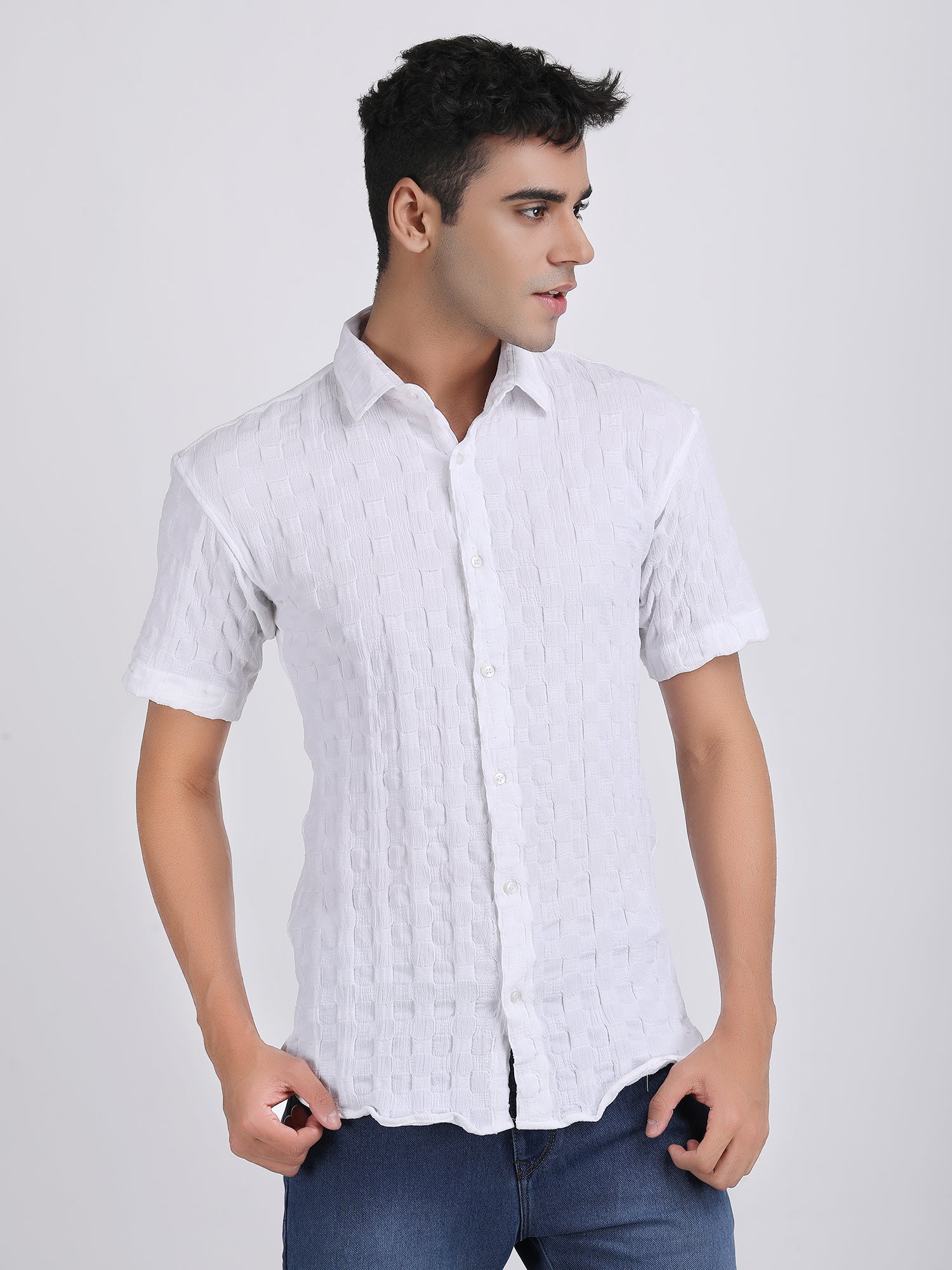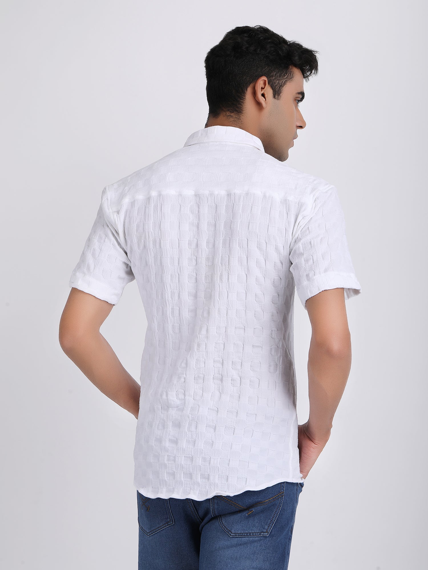 White Popcorn Texture Half Sleeves Shirt