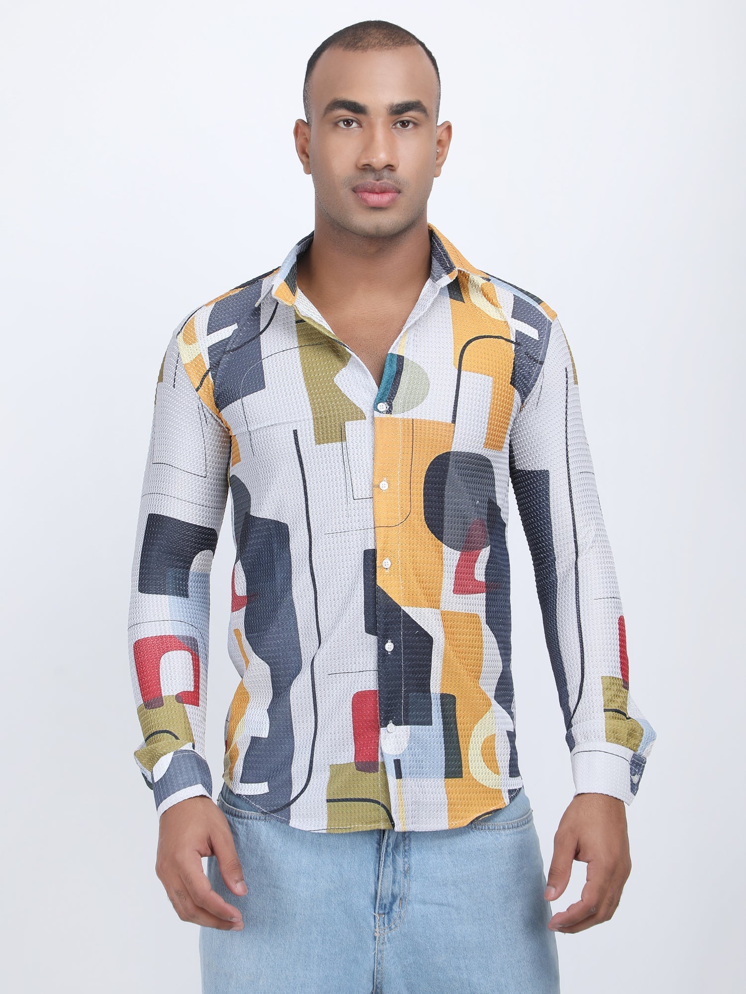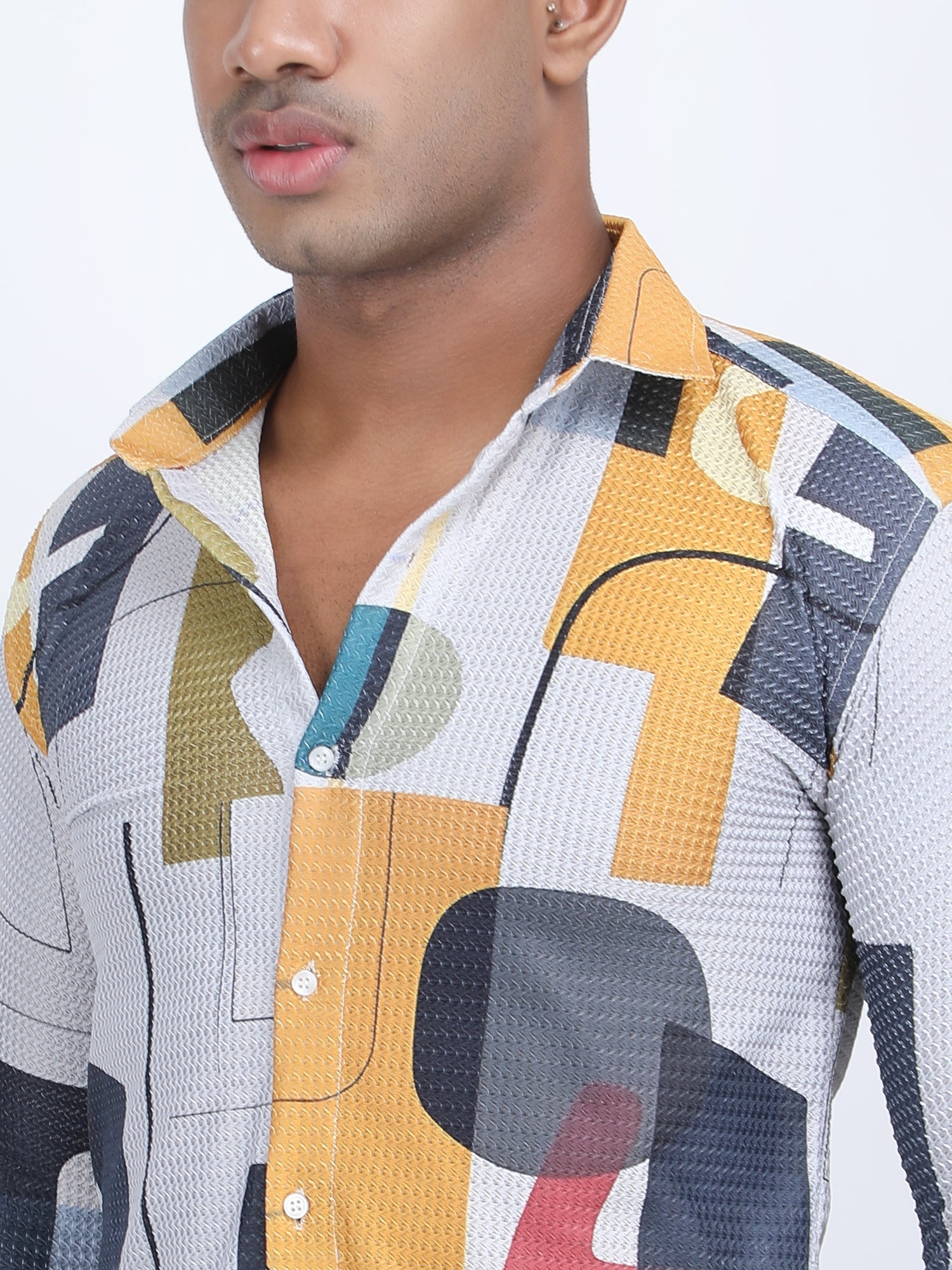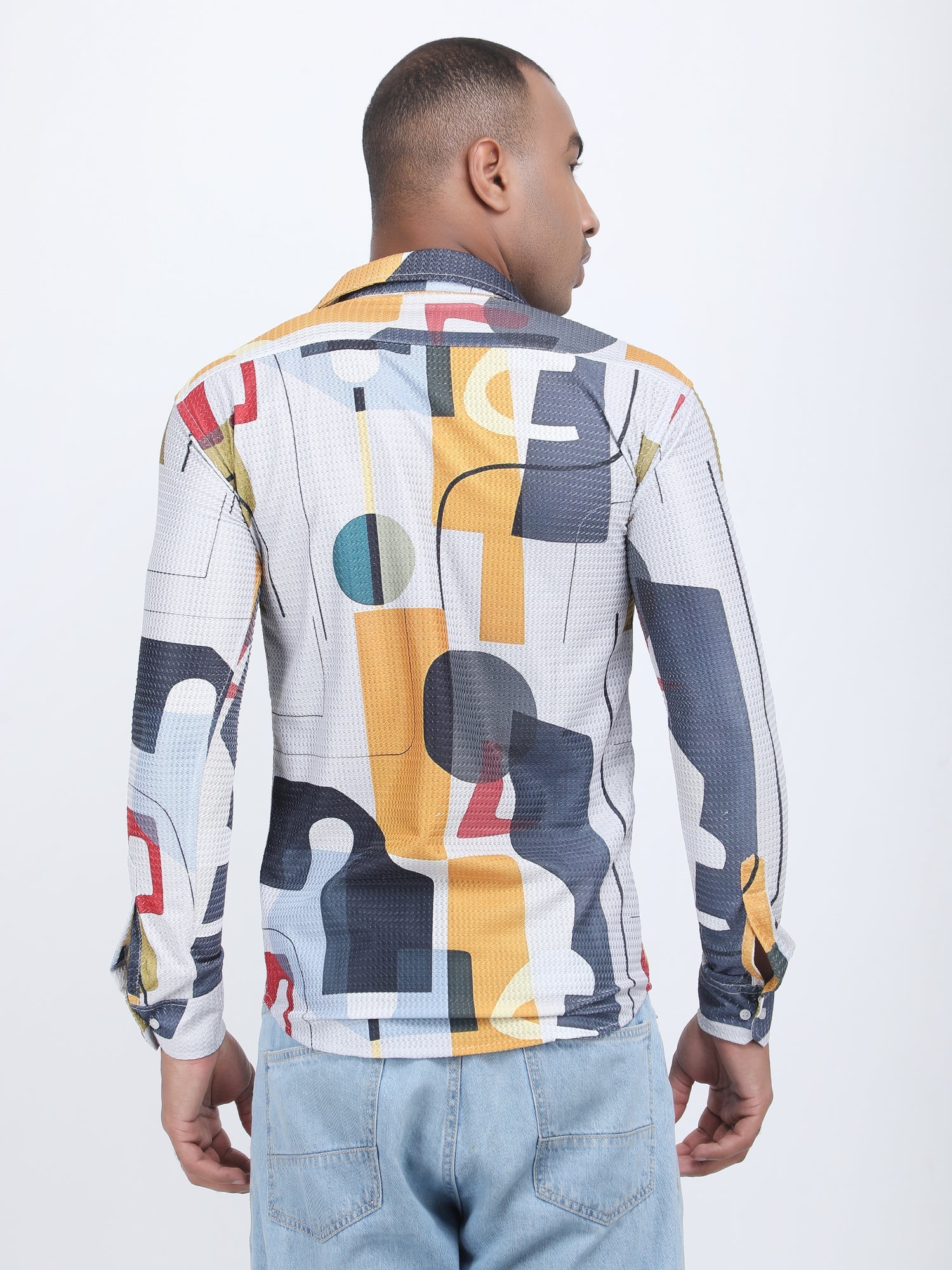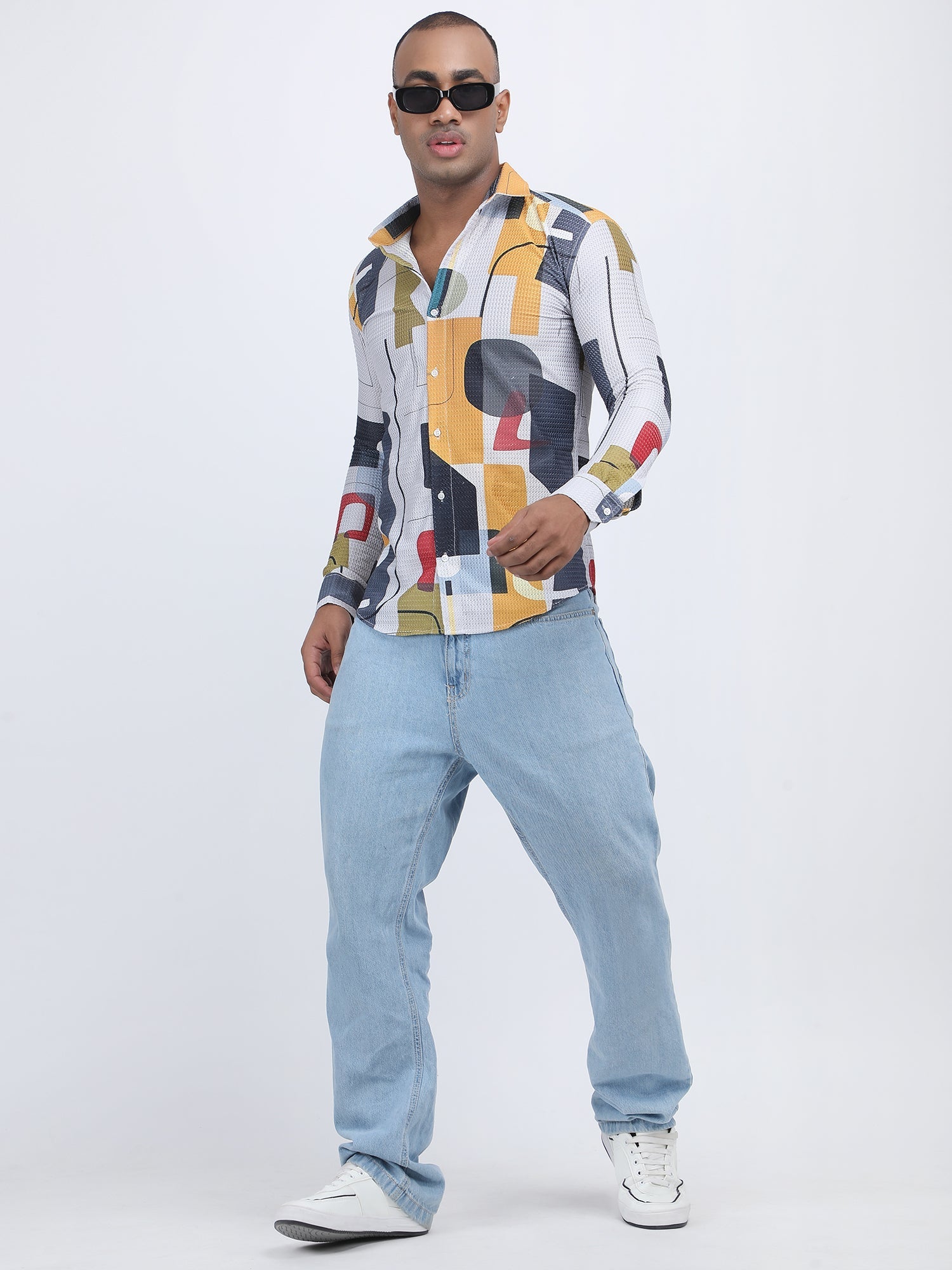 About Product - Channel serene elegance in this Abstract Printed shirt, offering a unique aesthetic twist. Fresh and vibrant, this floral printed Turkish weave shirt brightens any wardrobe. Featuring intricate prints on crisp white fabric, it exudes sophistication and versatility, perfect for various occasions and styling options.