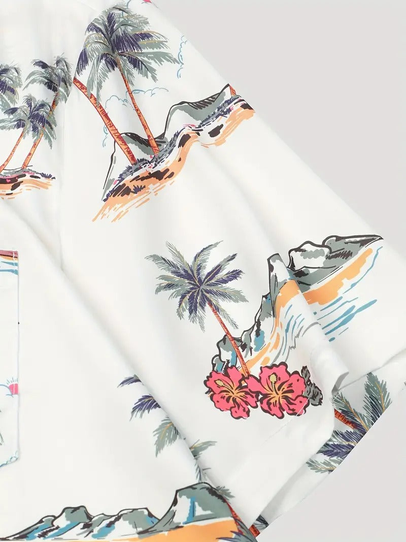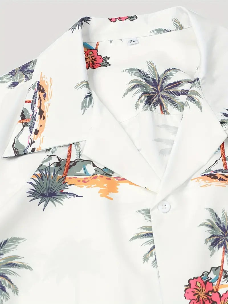 White Palm Tree Printed Daily Wear Shirt
